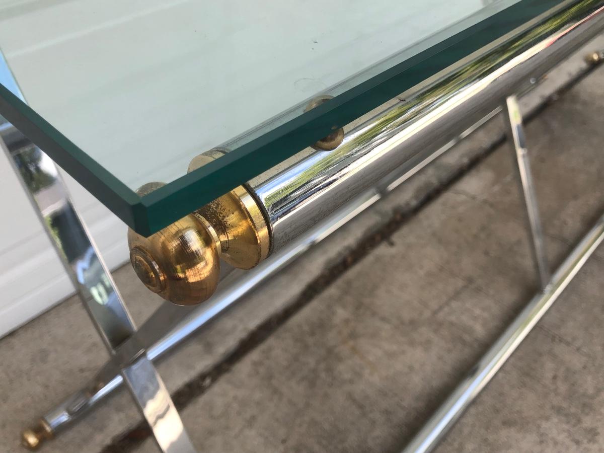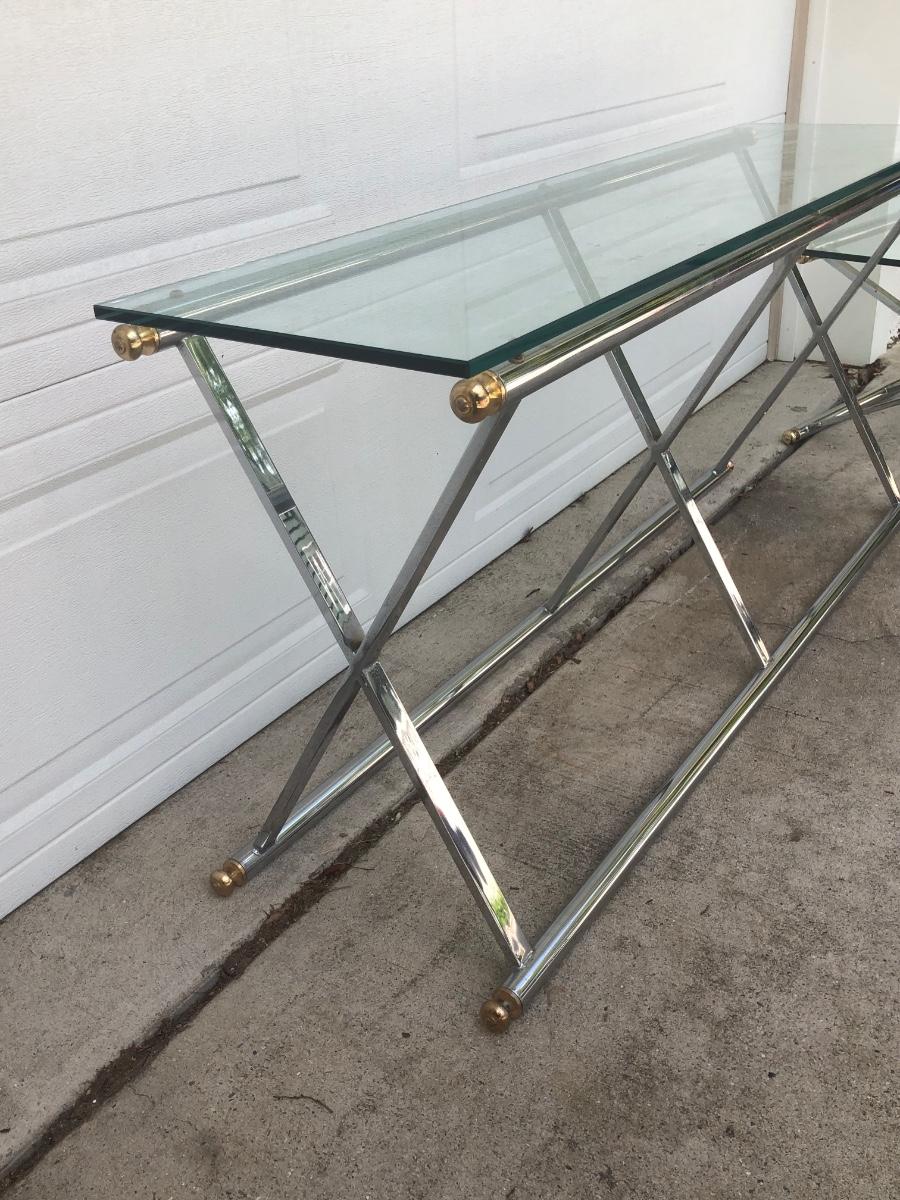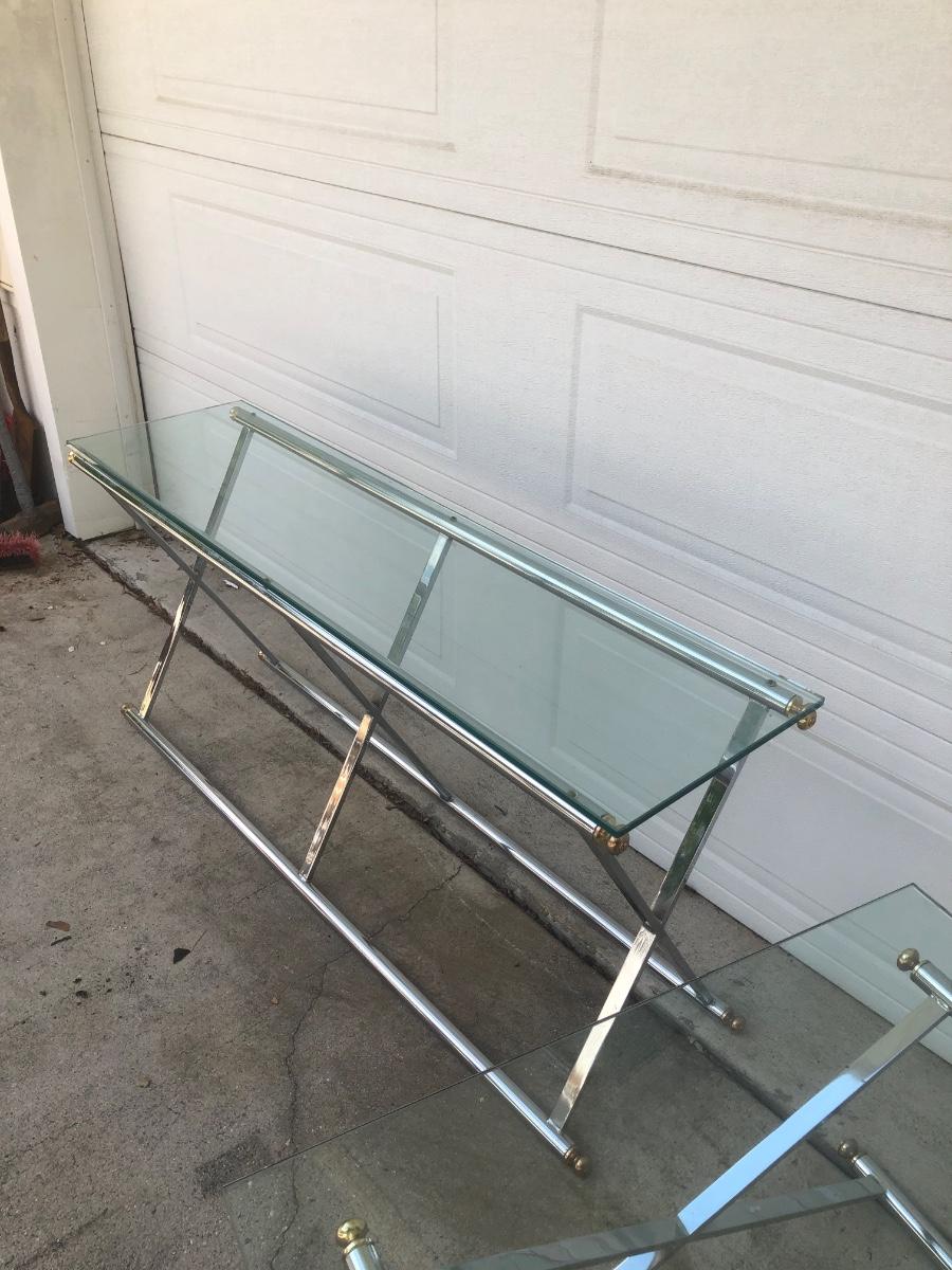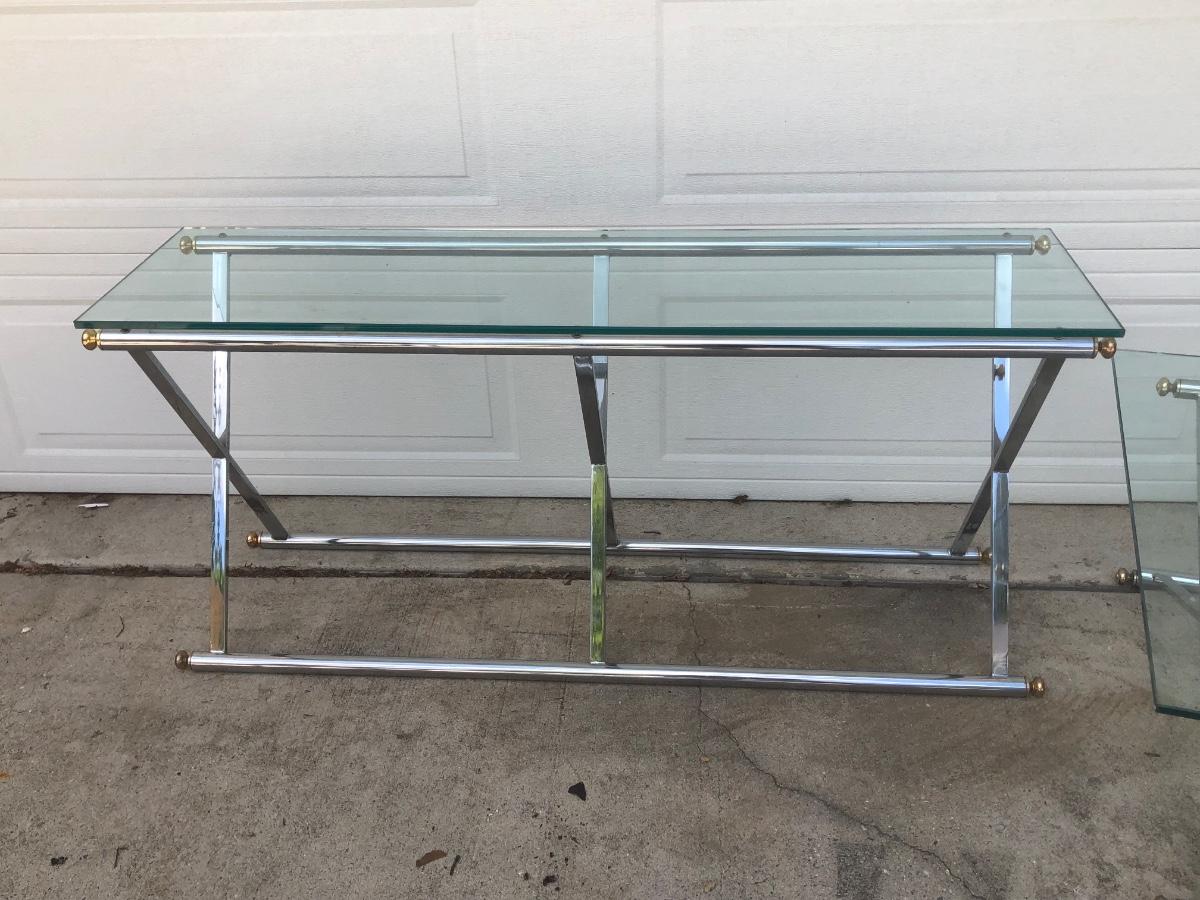 LOT 21G: Modern Glass Top Tables w/ Metal Bases