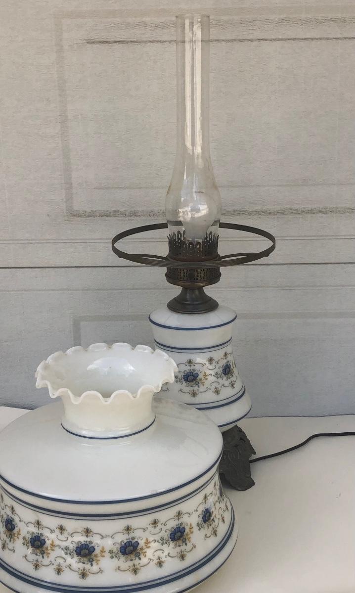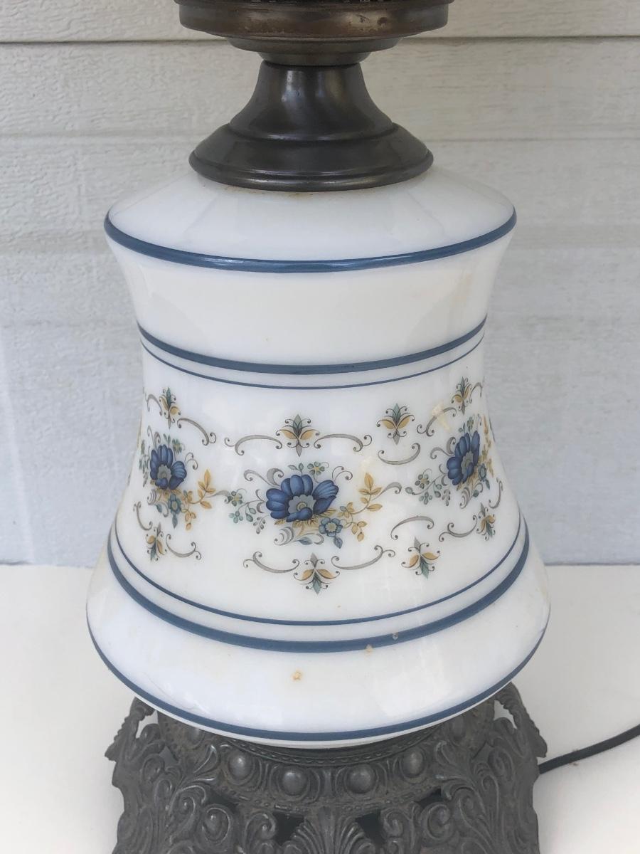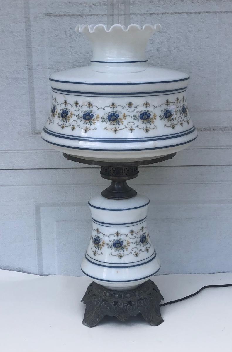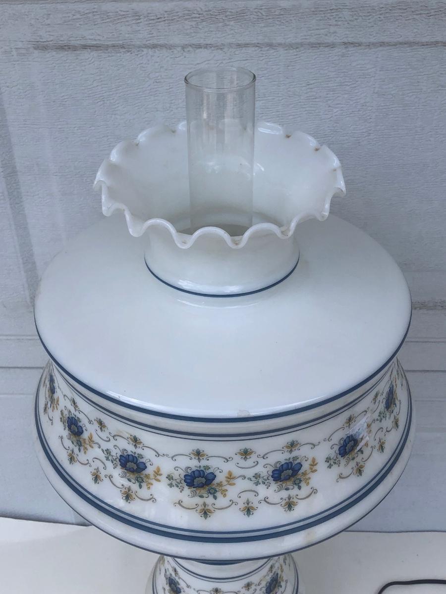 LOT 22G: Vintage Quoizel Abigail Adams Blue Floral Hurricane Lamp