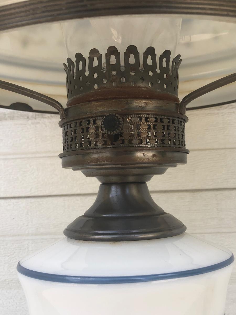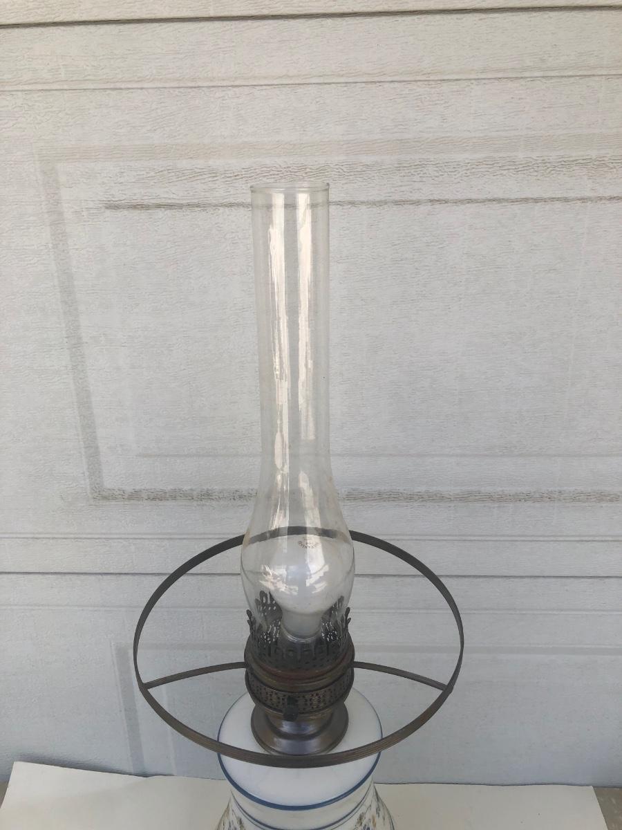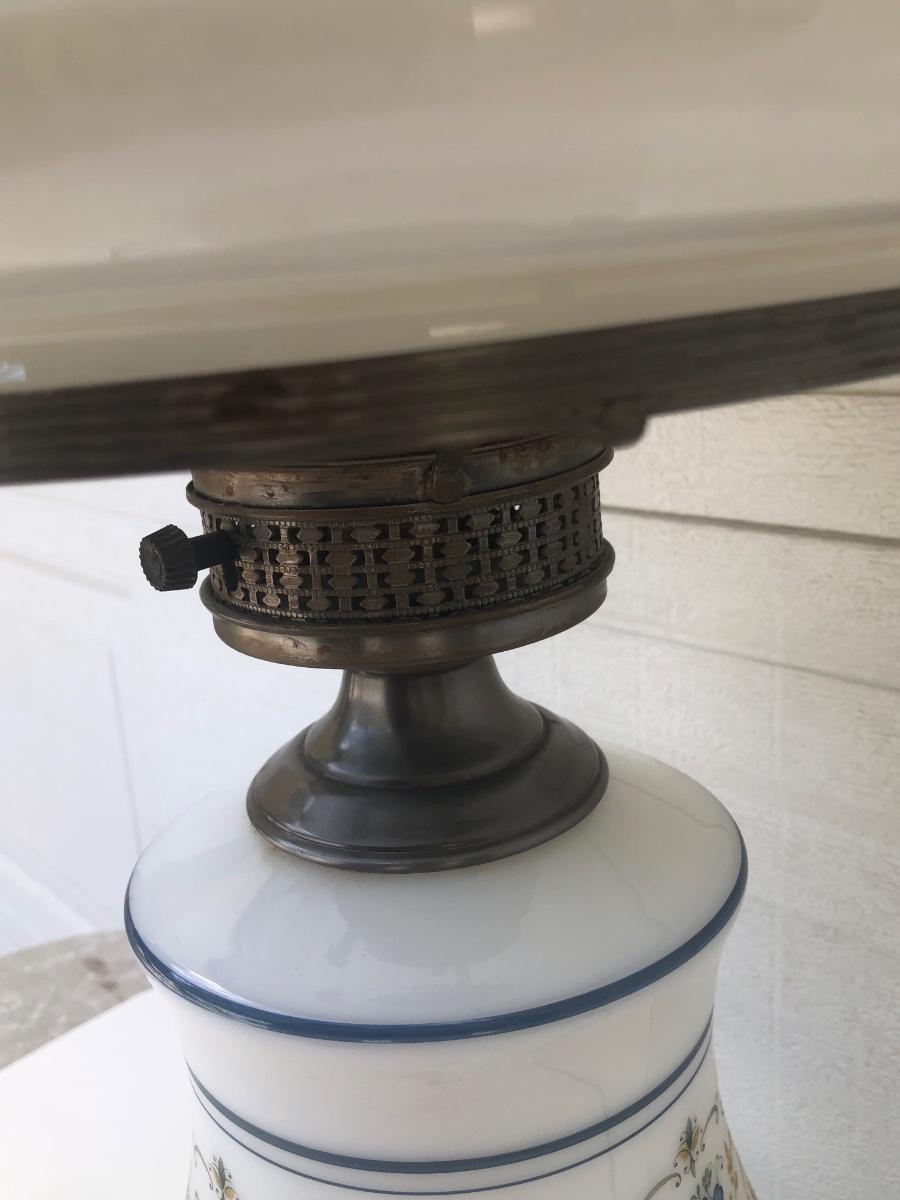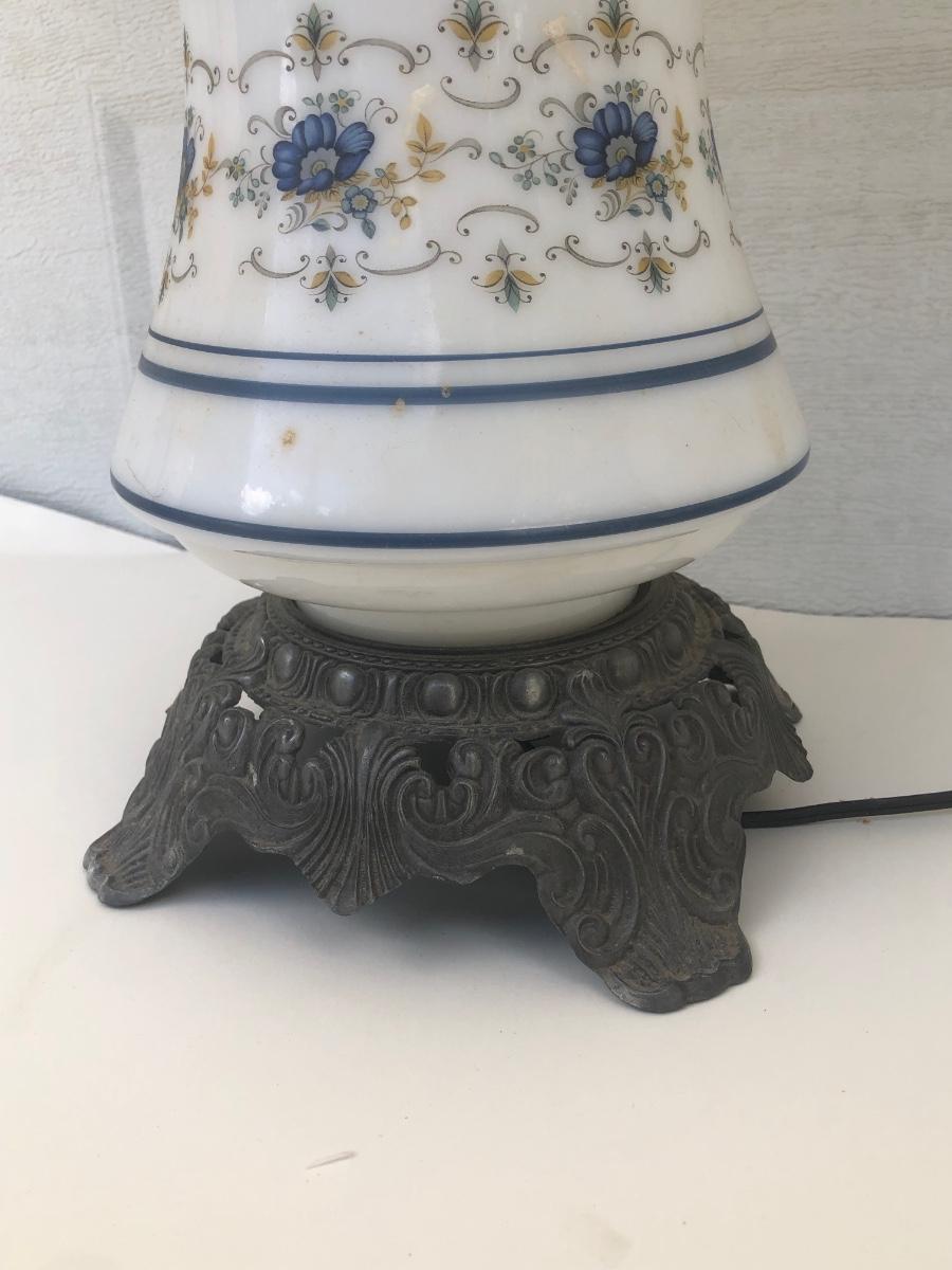 LOT 22G: Vintage Quoizel Abigail Adams Blue Floral Hurricane Lamp