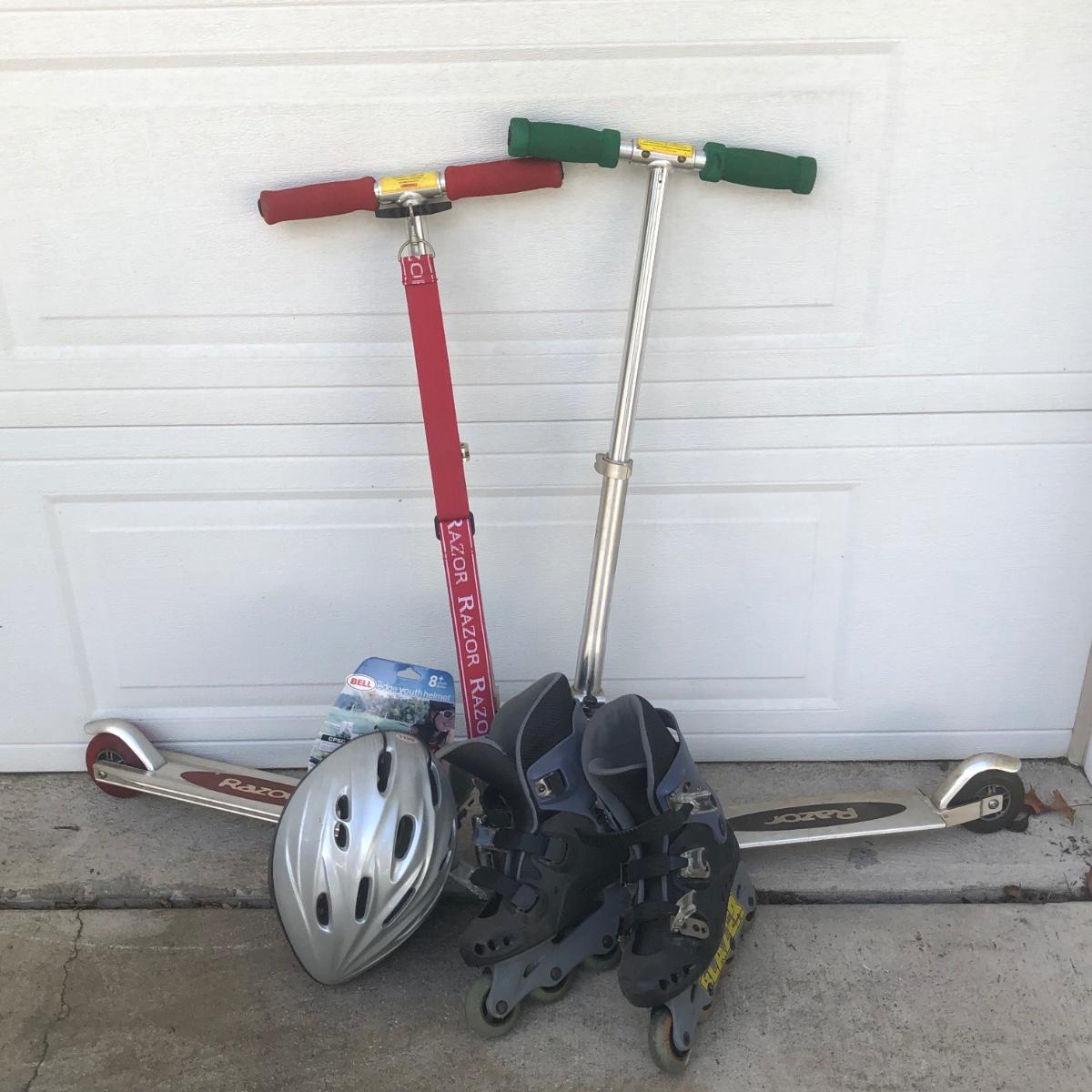LOT 26G: Two Razor Scooters, Blazer Roller Blades & More