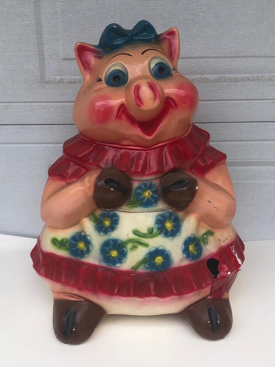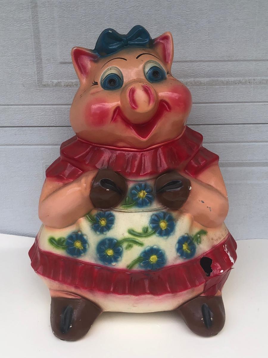 LOT 28G: Large Vintage Hand Painted Piggy Bank - 21.5"