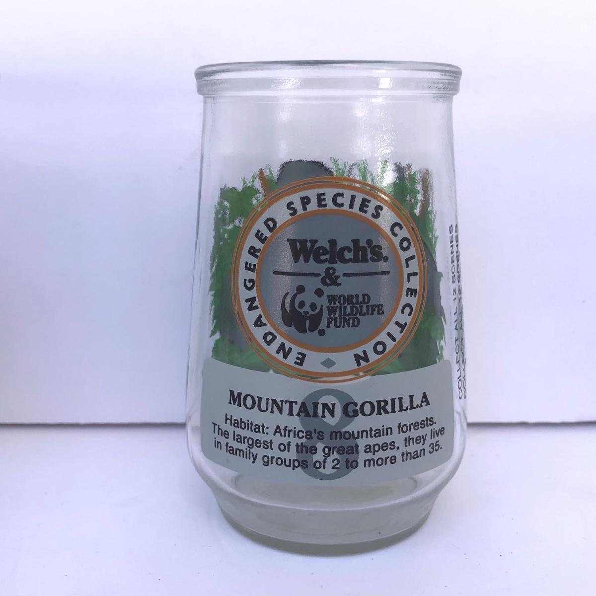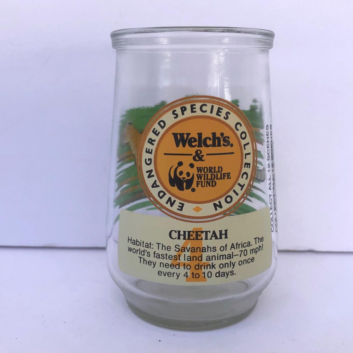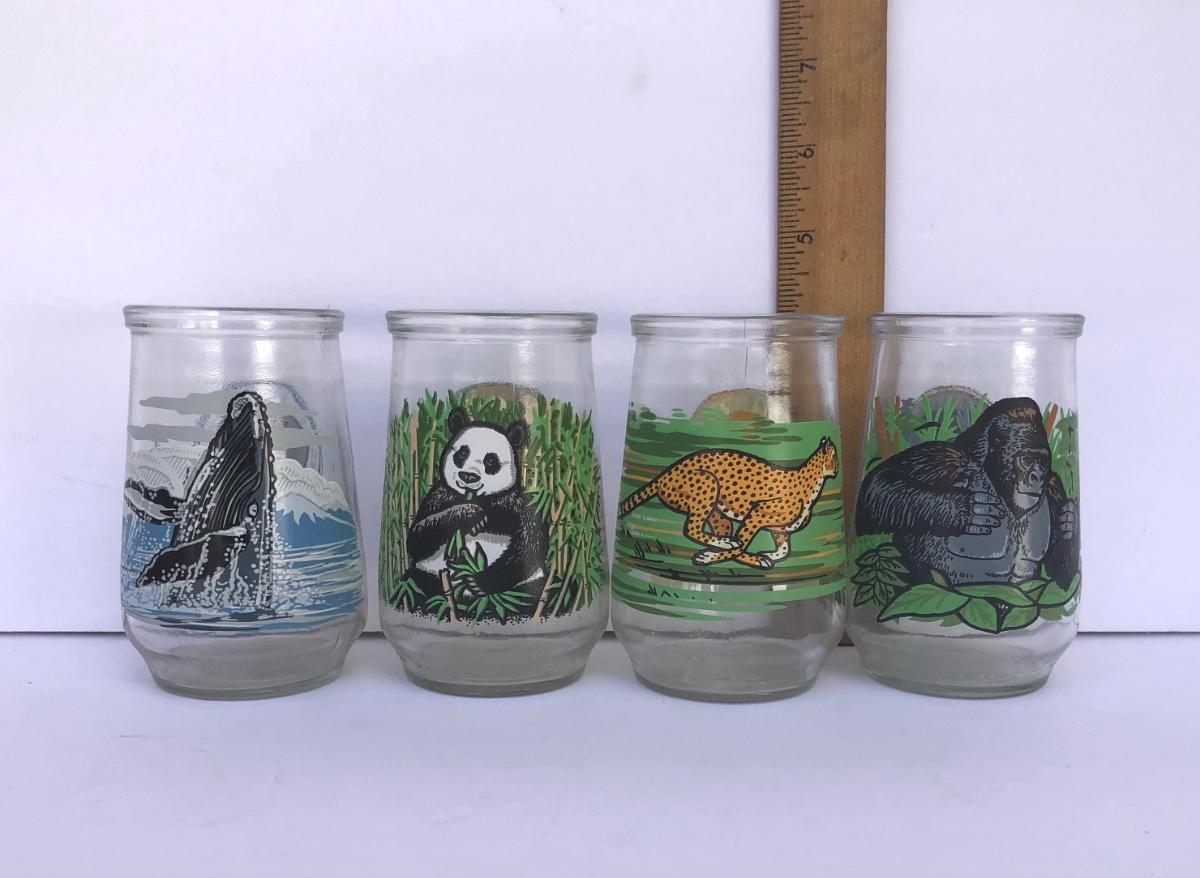 LOT 35G: Welch's World Wildlife Foundation WWF Endangered Species Collection Jelly Jar Glasses - #1 Giant Panda, #4 Cheetah, #6 Humpback Whale & #8 Mountain Gorilla