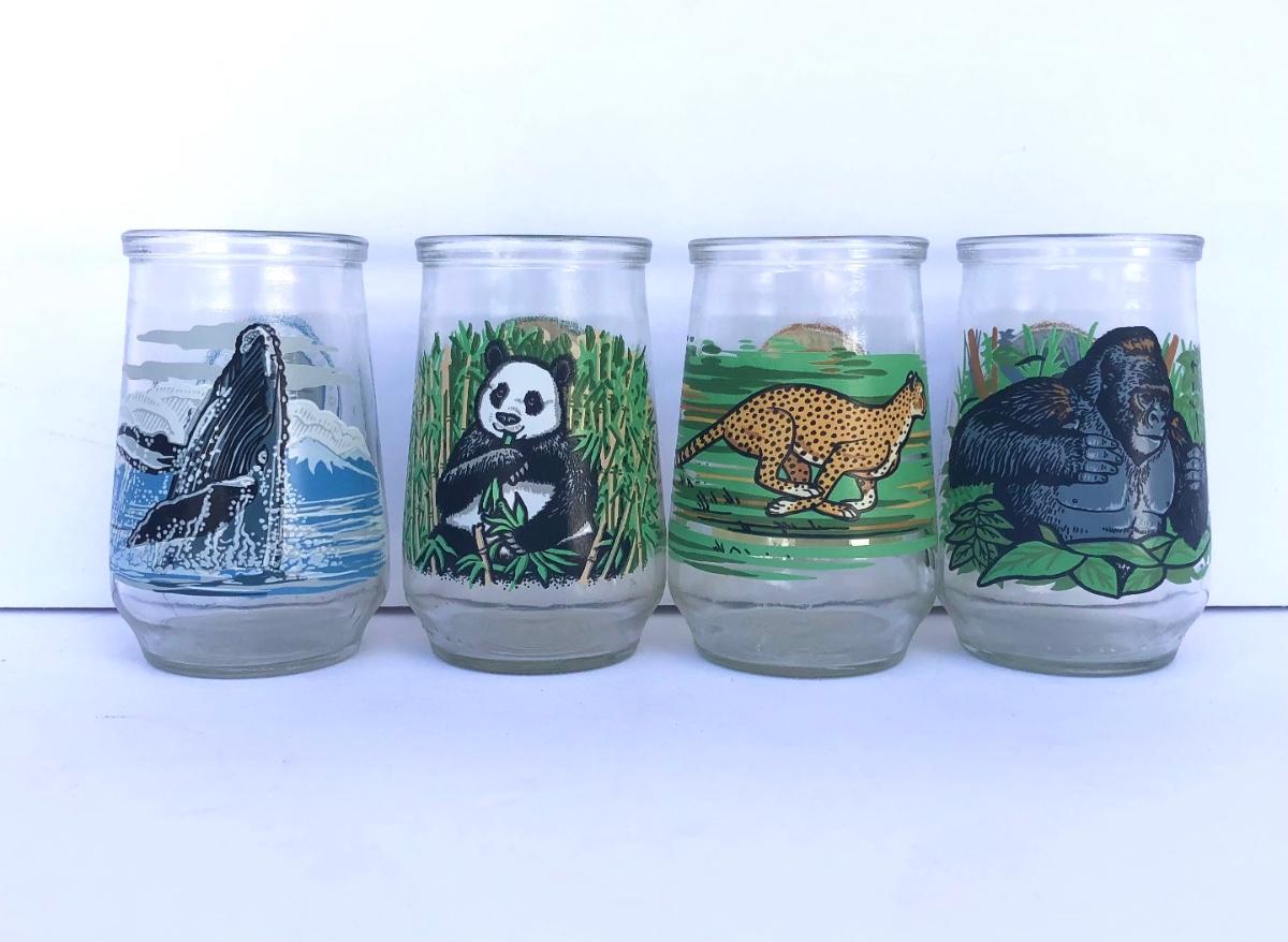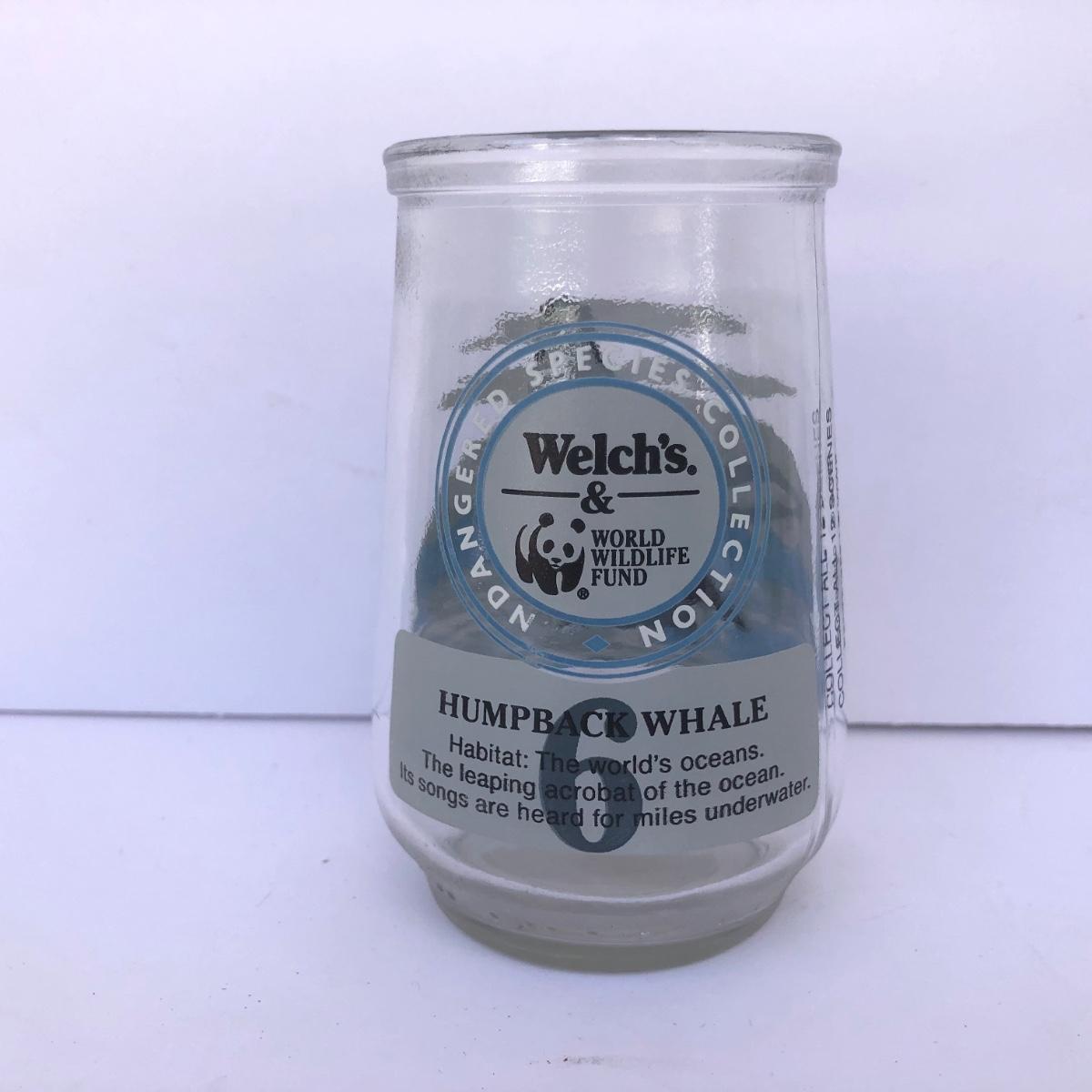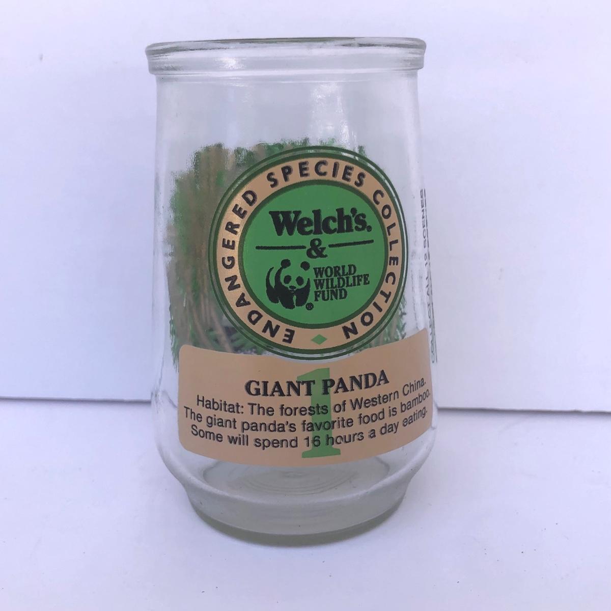 LOT 35G: Welch's World Wildlife Foundation WWF Endangered Species Collection Jelly Jar Glasses - #1 Giant Panda, #4 Cheetah, #6 Humpback Whale & #8 Mountain Gorilla