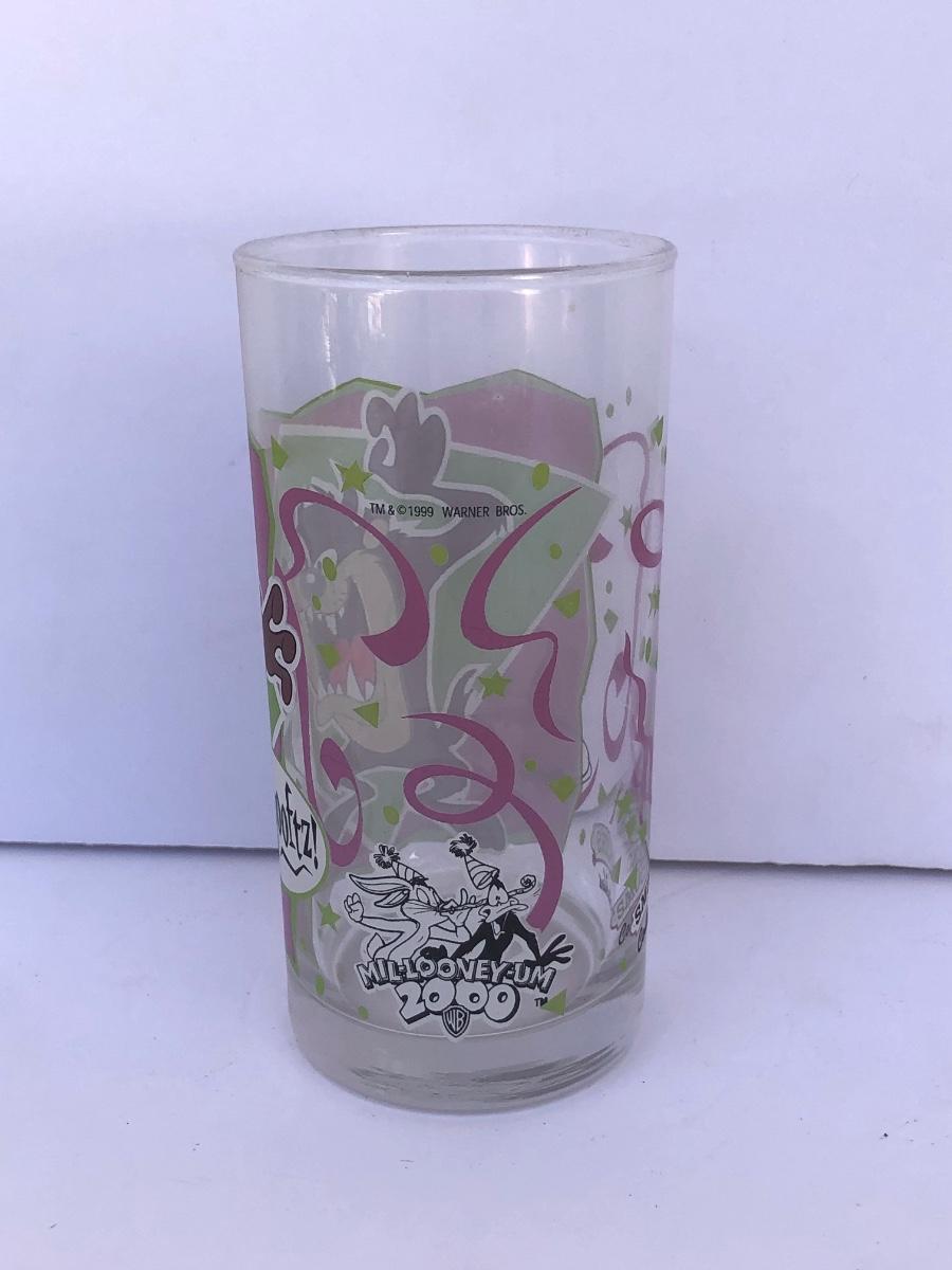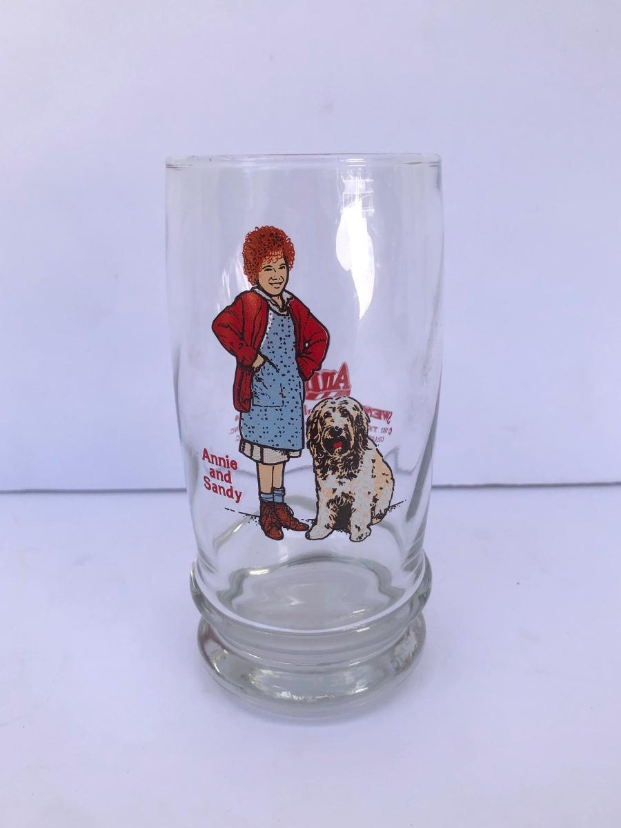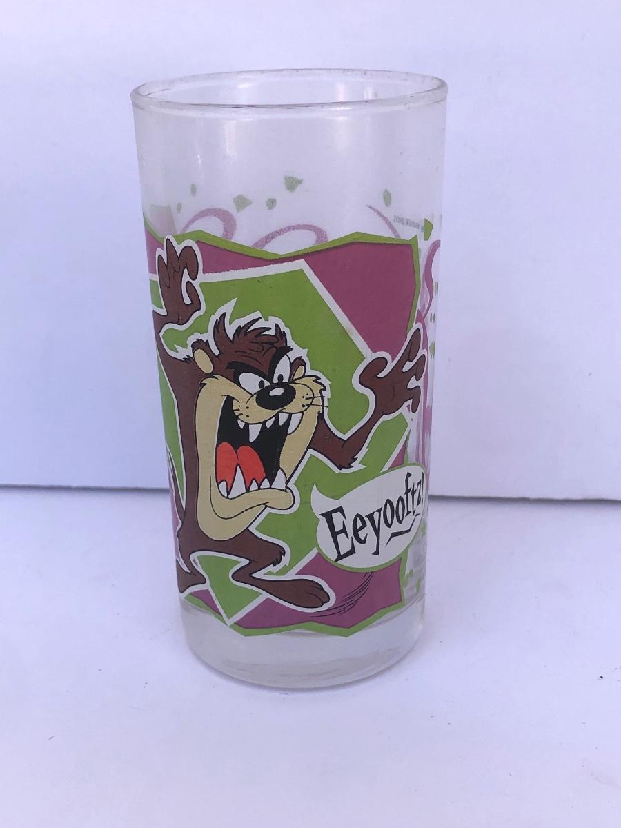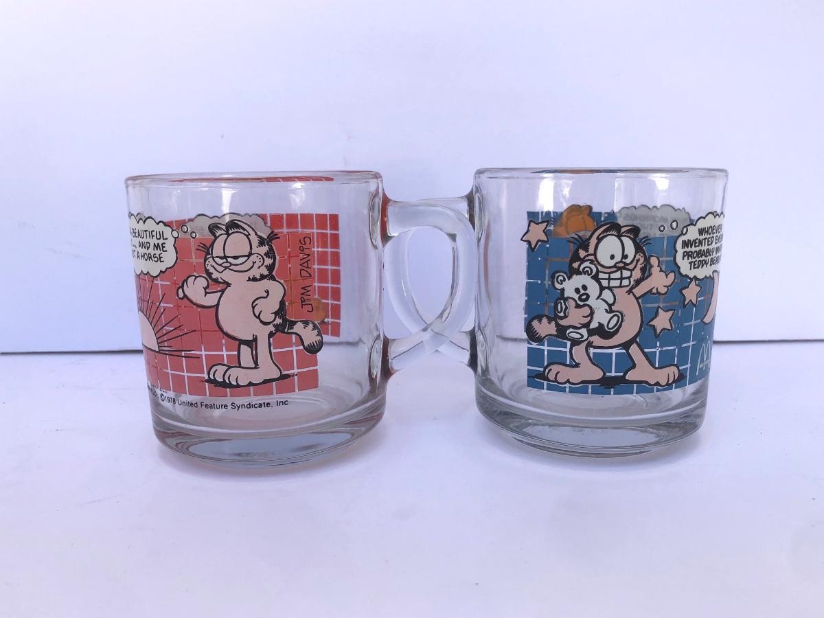 LOT 37G: Collectible Kid's Glasses - McDonald's Garfield Comic Mugs, Smucker's Mil-Looney-um 2000 Taz, 1988 Pizza Hut Carebears Funshine Bear & 1982 Swenson's Annie & Sandy
