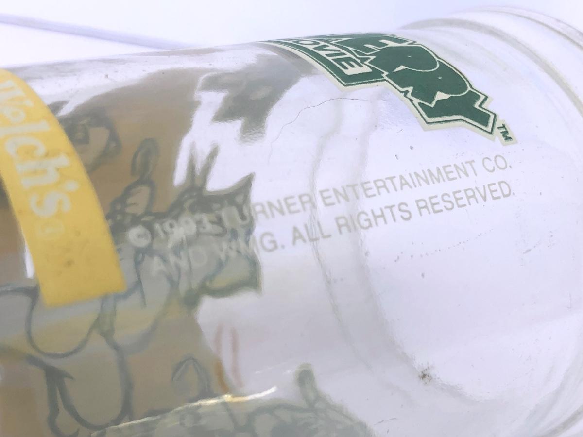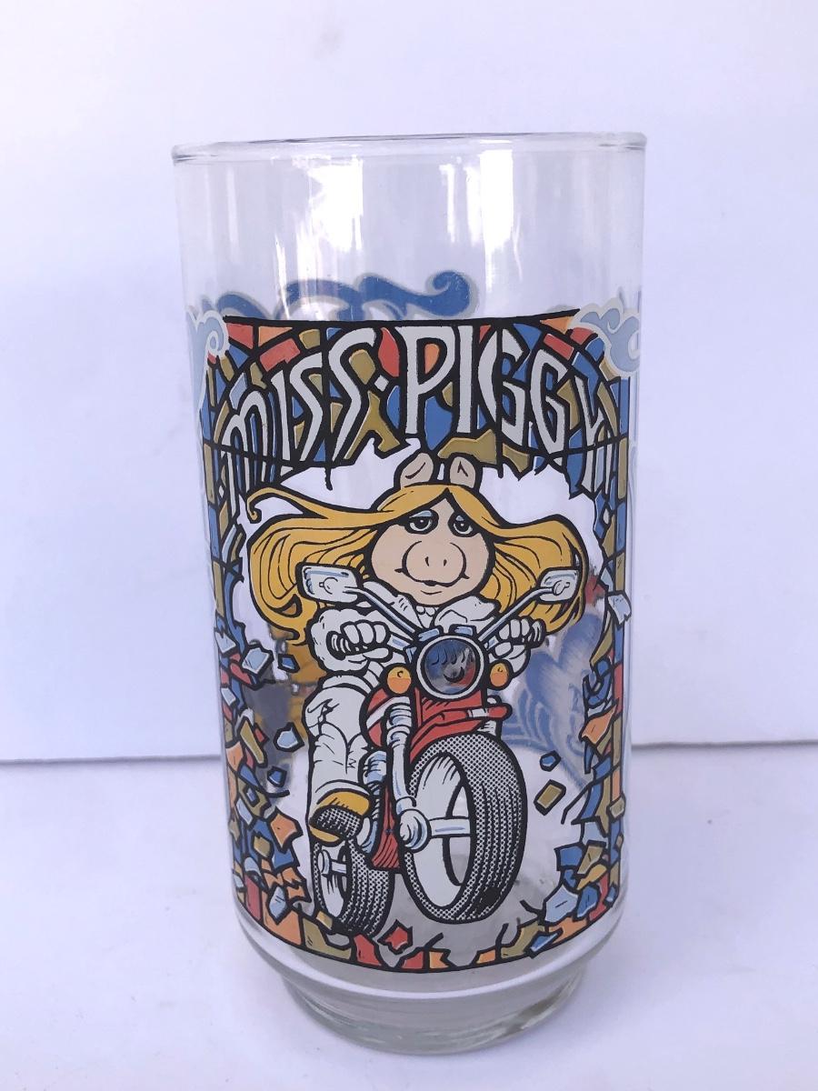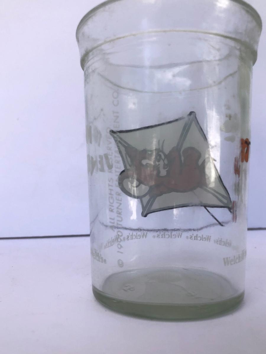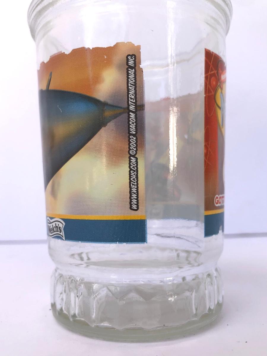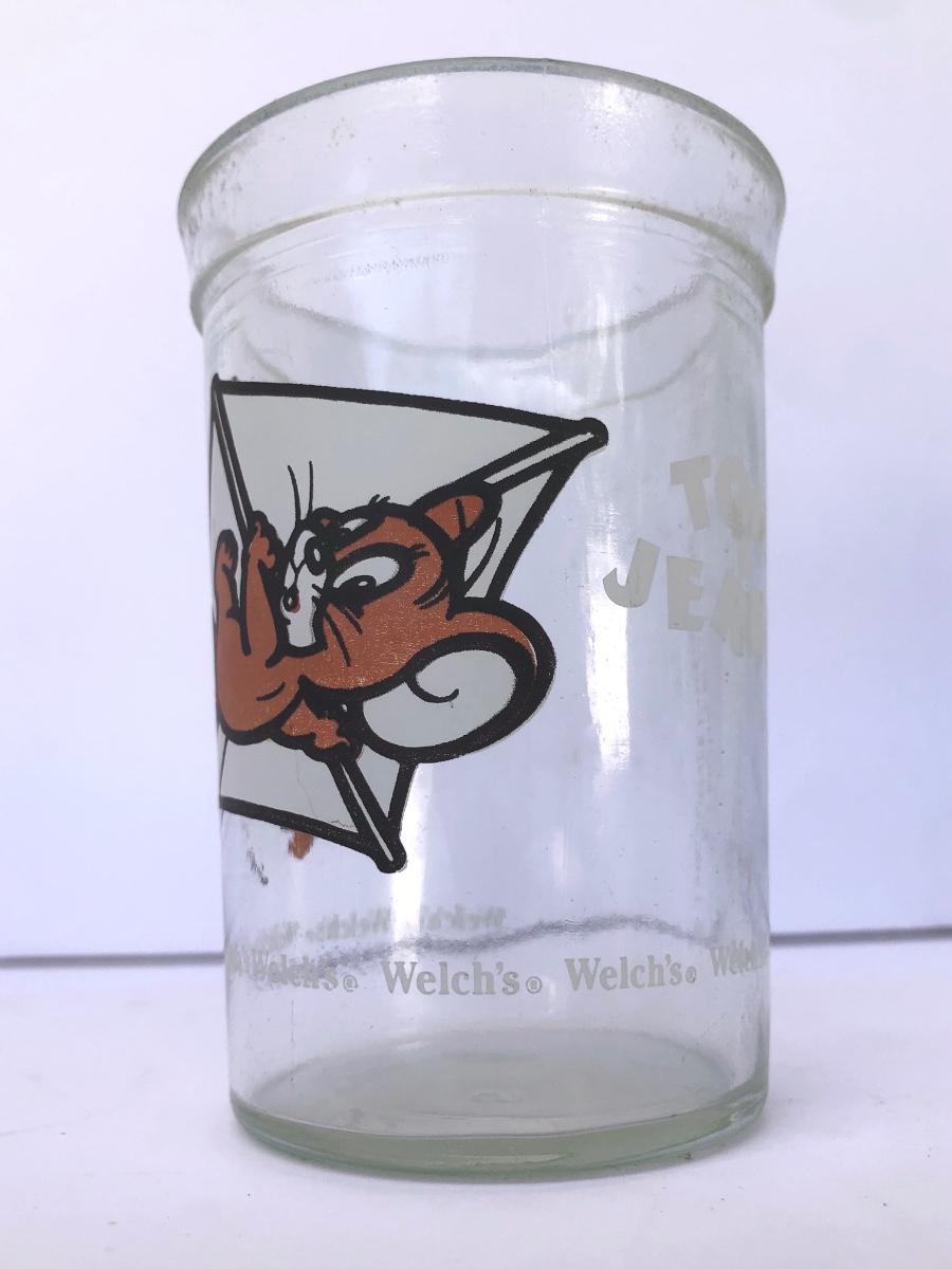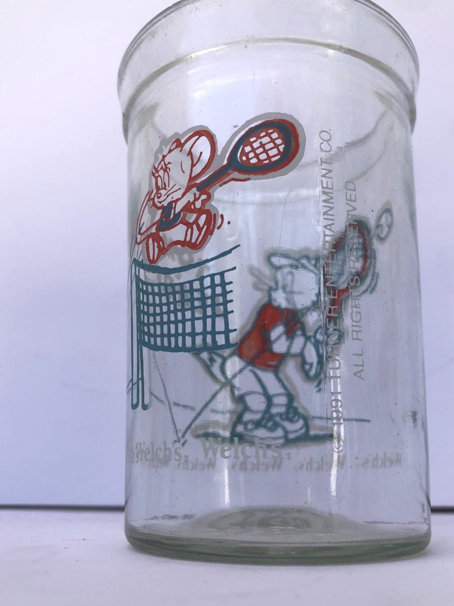 LOT 38G: 1981 McDonald's Miss Piggy on Motorcycle Glass & Welch's Collectible Glass Jelly Jars - 2002 Jimmy Neutron w/ Tom & Jerry - 1991 Tennis, 1990 Kite, 1993 Movie