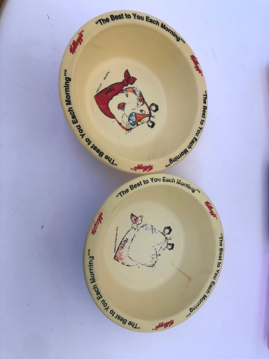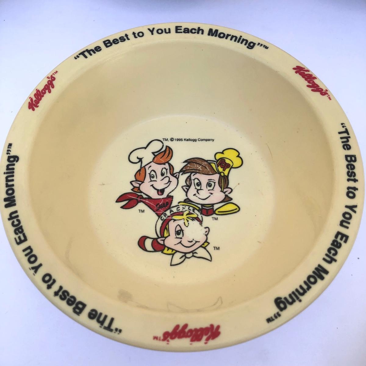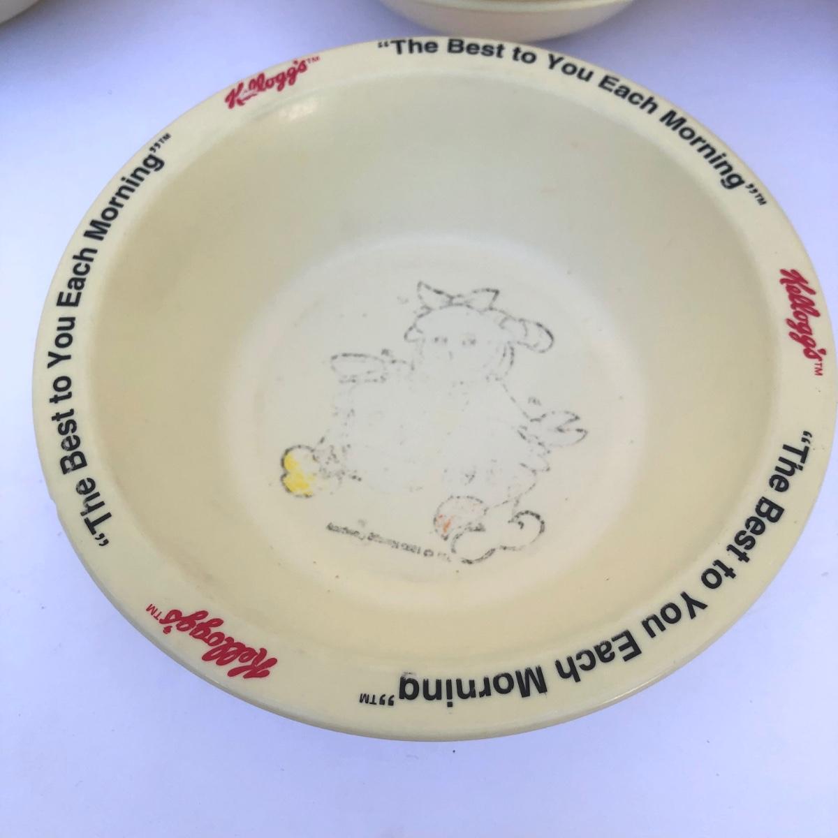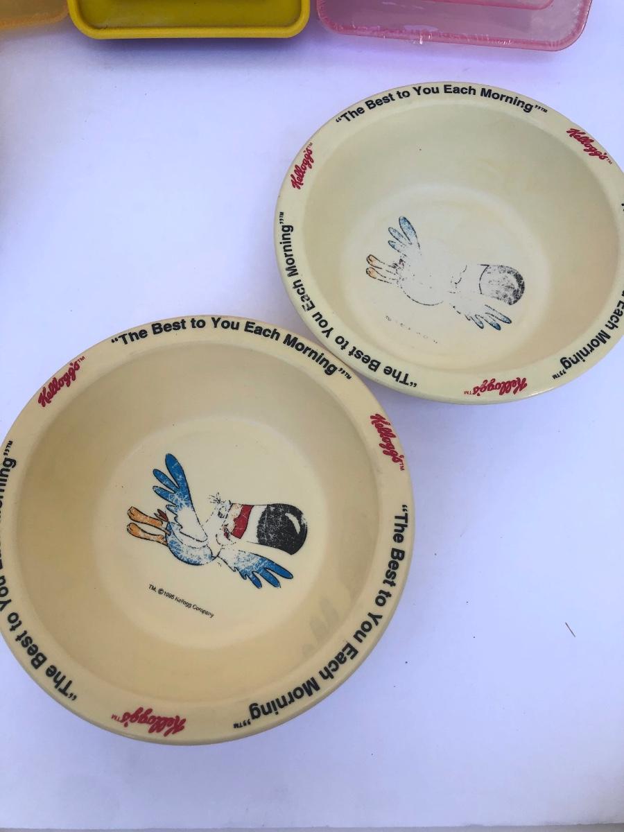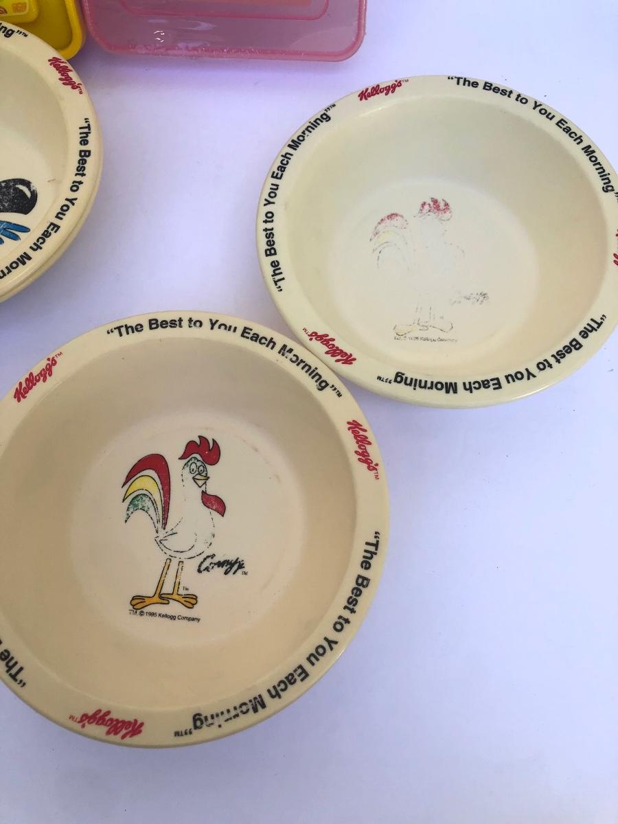 LOT 40G: Vintage Collectible Kellogg's Plastic Cereal Bowls, Kid's Sandwich Containers & Vintage Children's Utensils - Danara 1958 Snoopy, 1984 Disney, 1992 Barney & 1991 Looney Tunes
