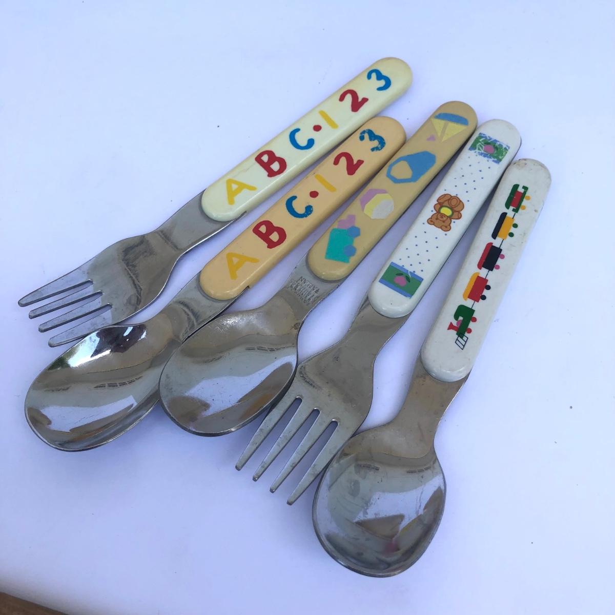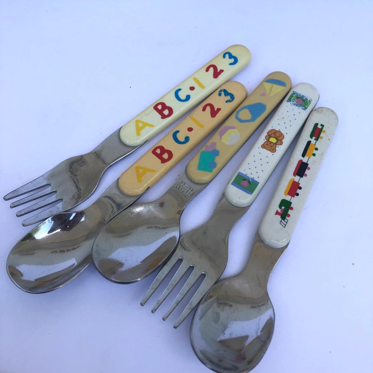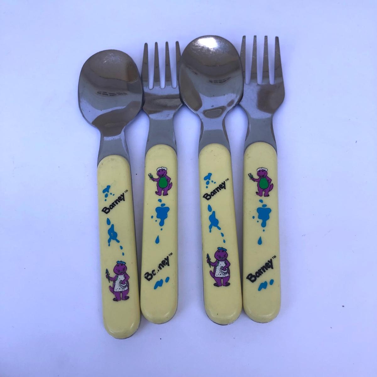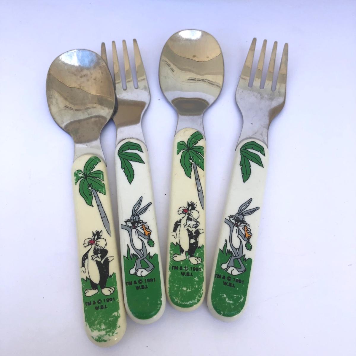 LOT 40G: Vintage Collectible Kellogg's Plastic Cereal Bowls, Kid's Sandwich Containers & Vintage Children's Utensils - Danara 1958 Snoopy, 1984 Disney, 1992 Barney & 1991 Looney Tunes