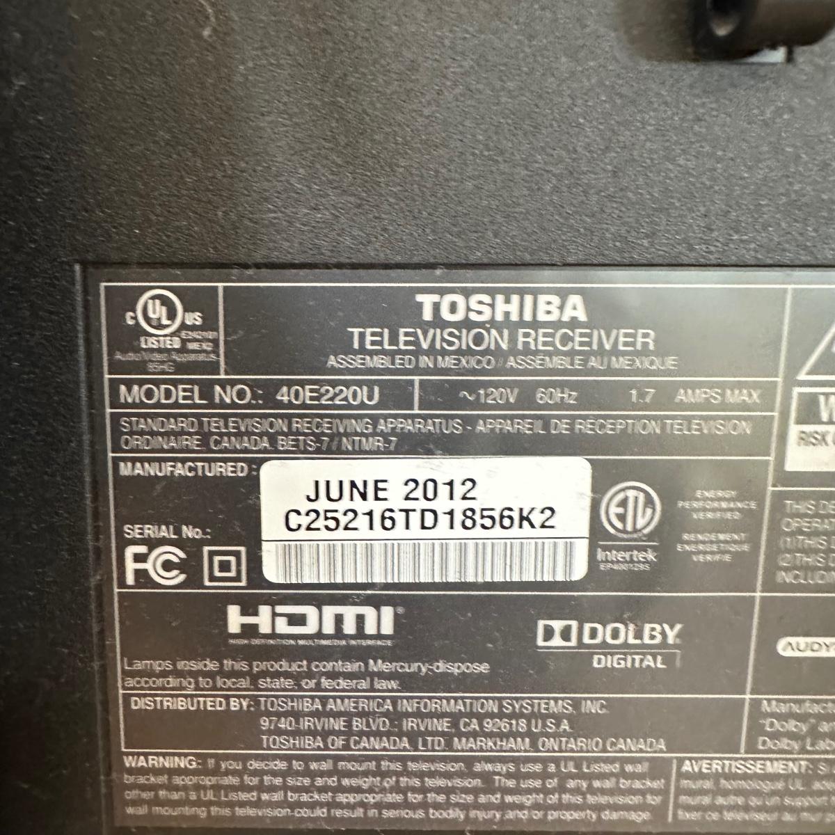 LOT 63L: Toshiba TV w/ Remote Model 40E220U
