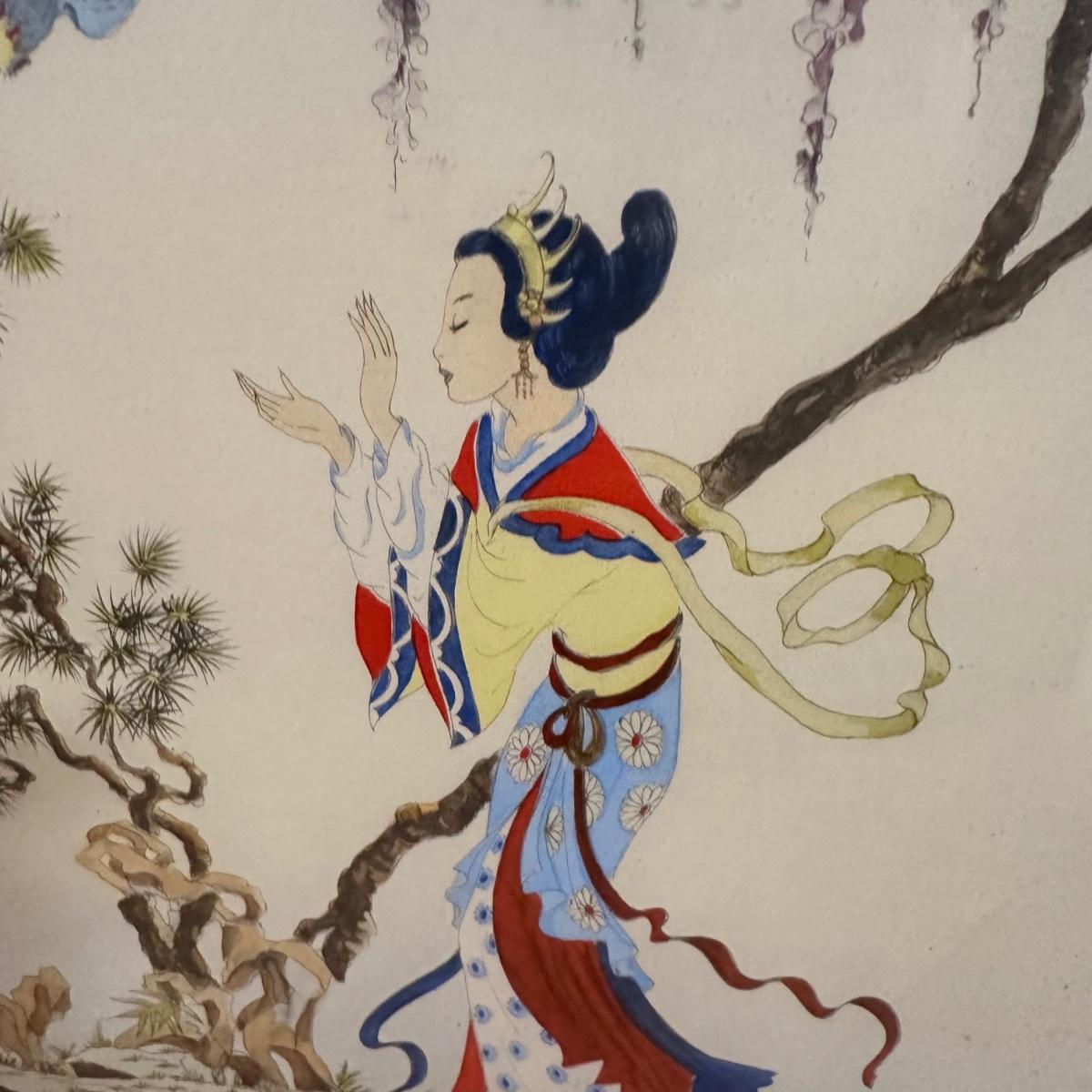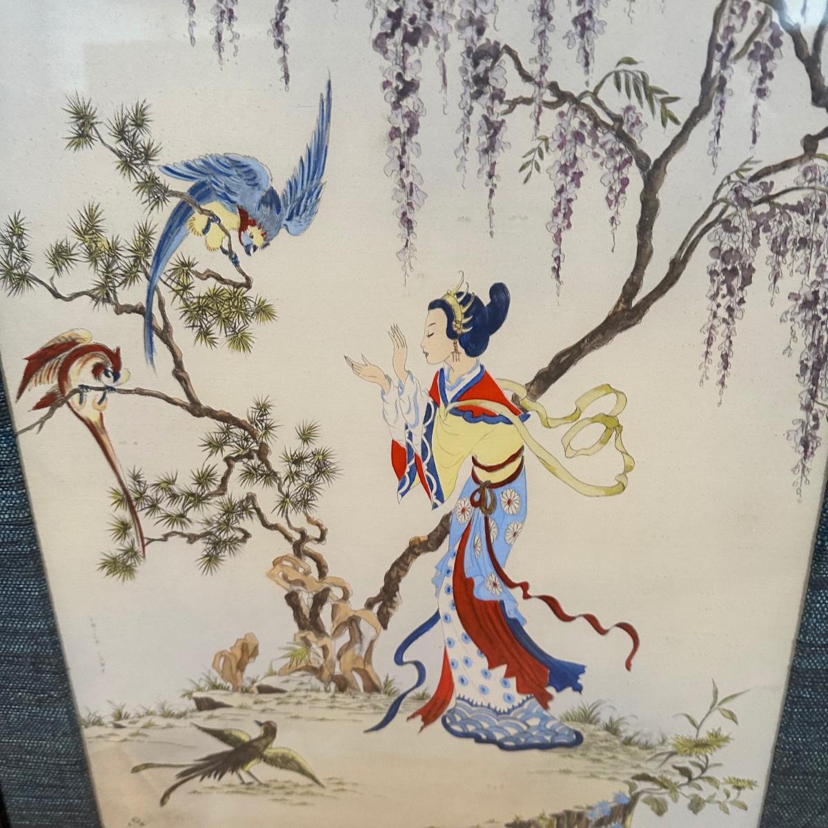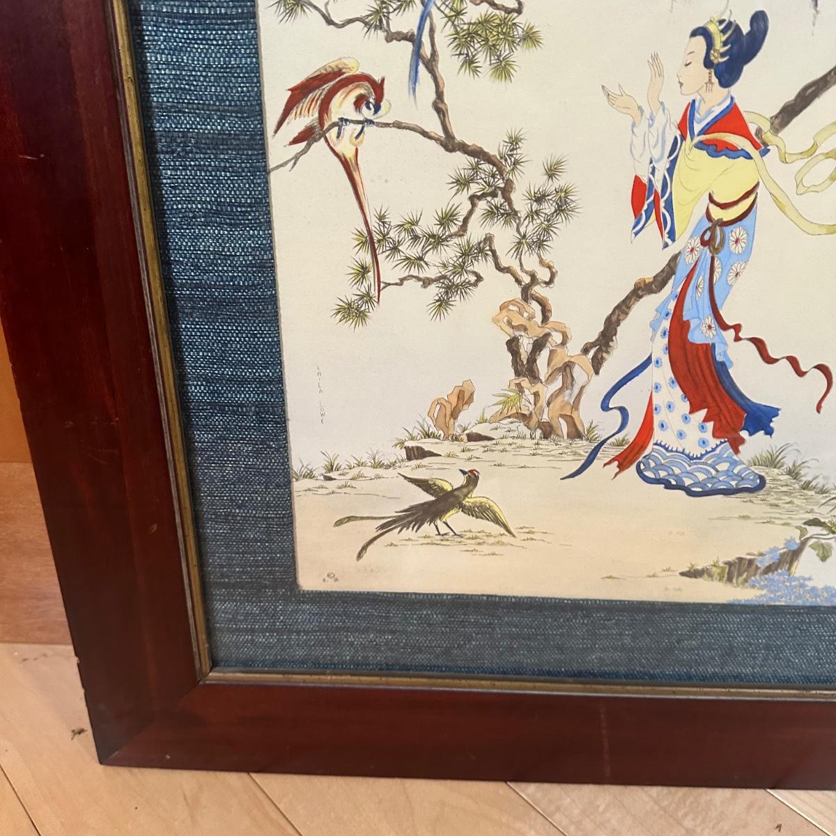 LOT 70L: Hand Colored Asian Geisha Lithograph Signed Enila Lowe circa 1940s