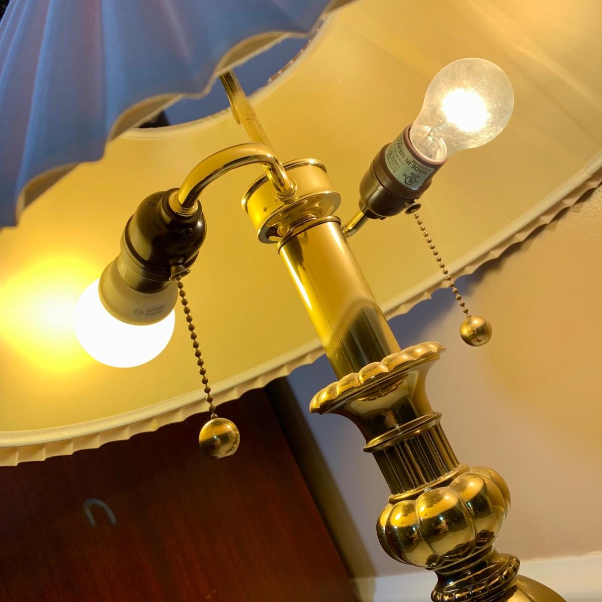LOT 86 L: Vintage Brass Double Bulb w/ Pull Chains Table Lamp