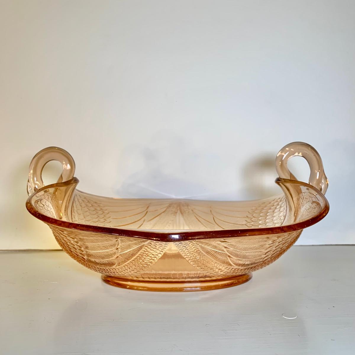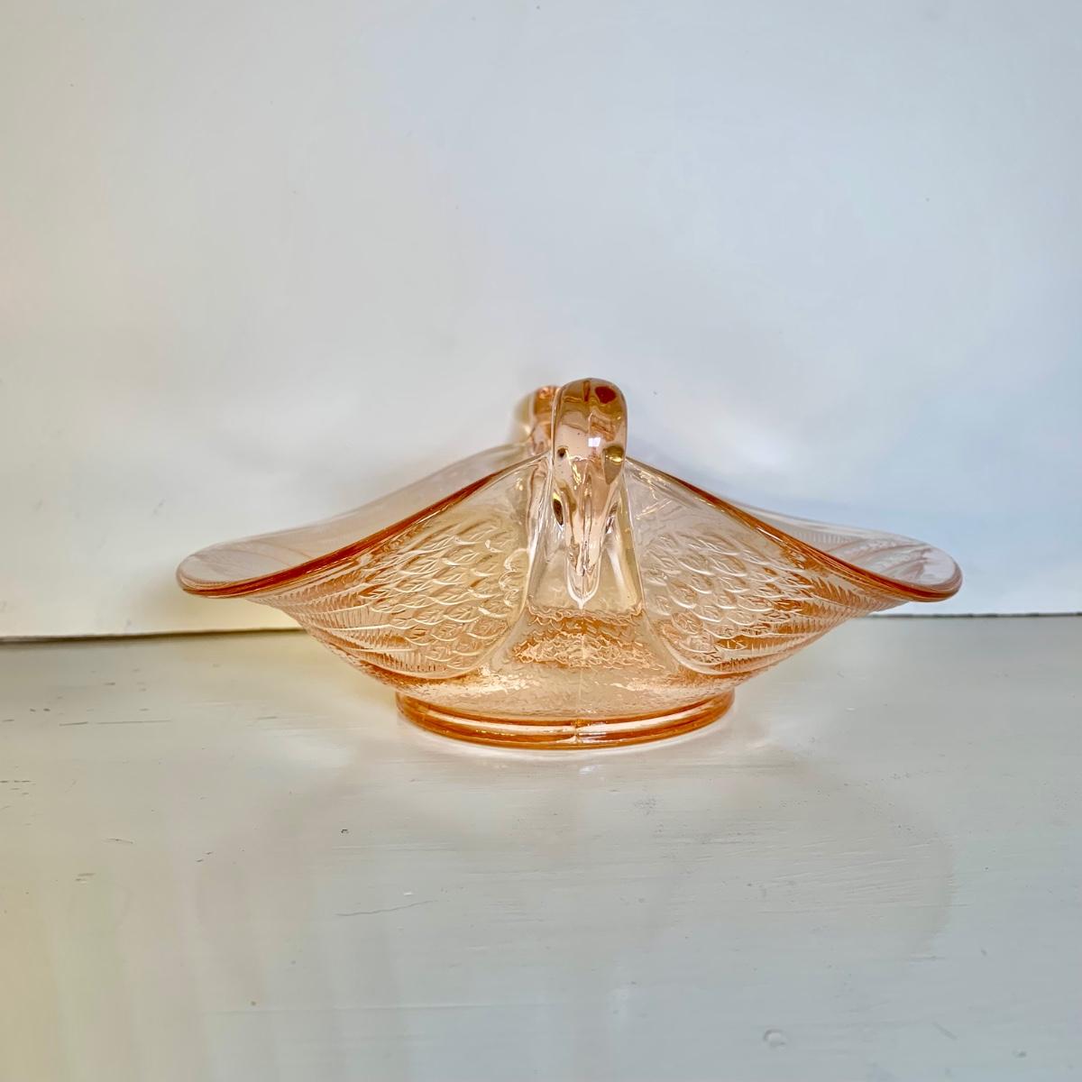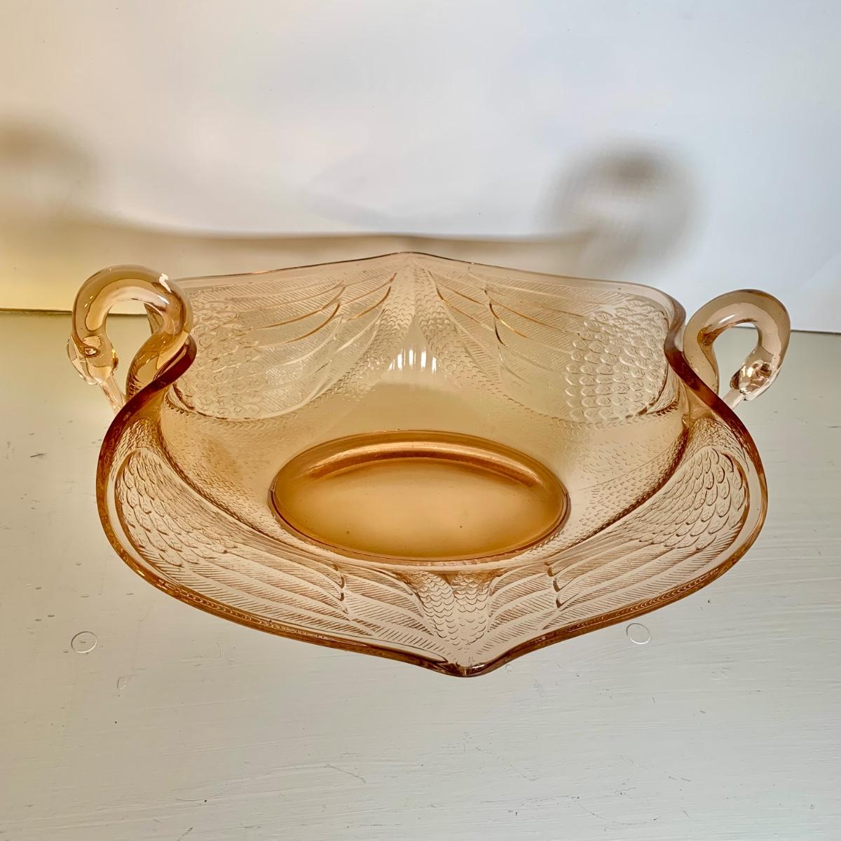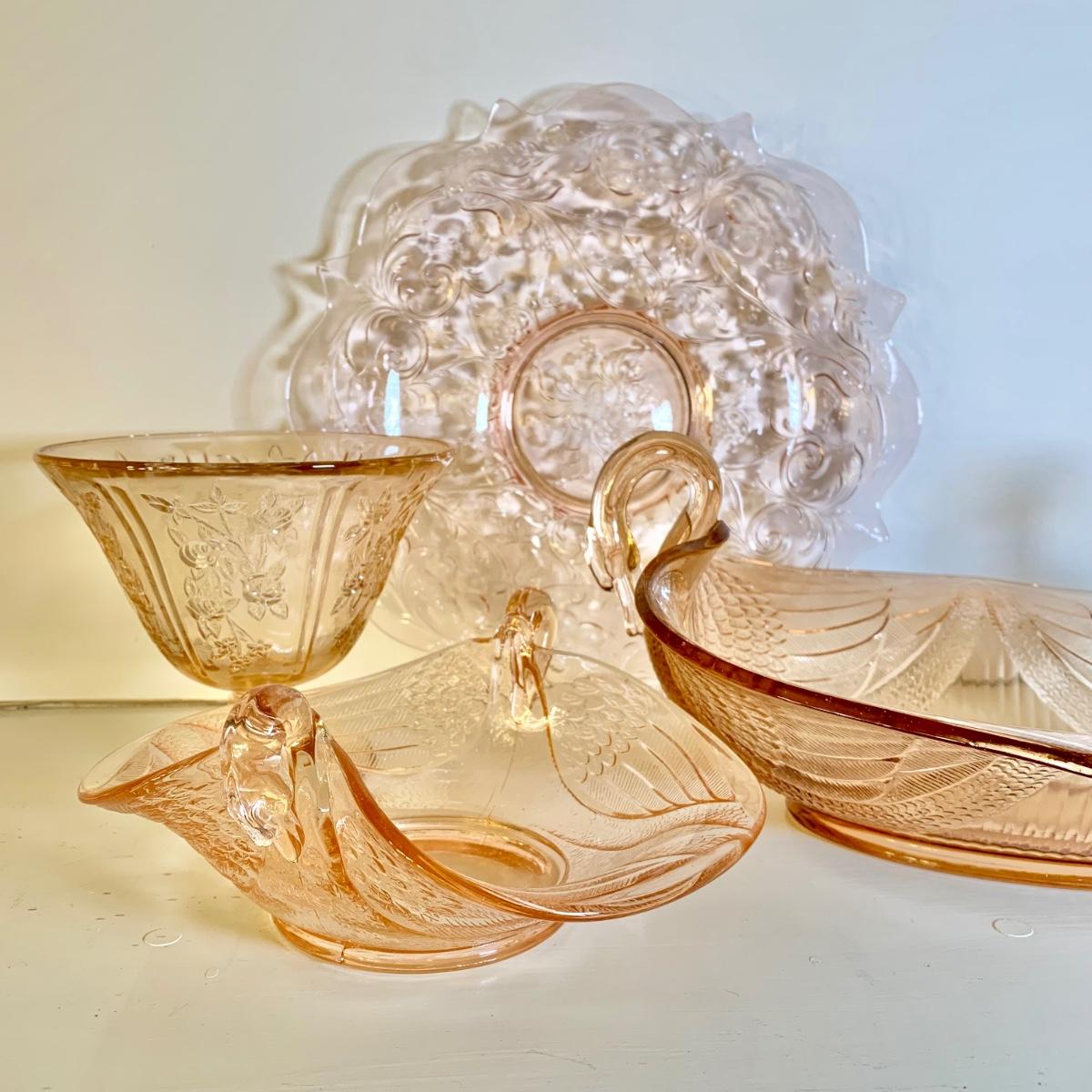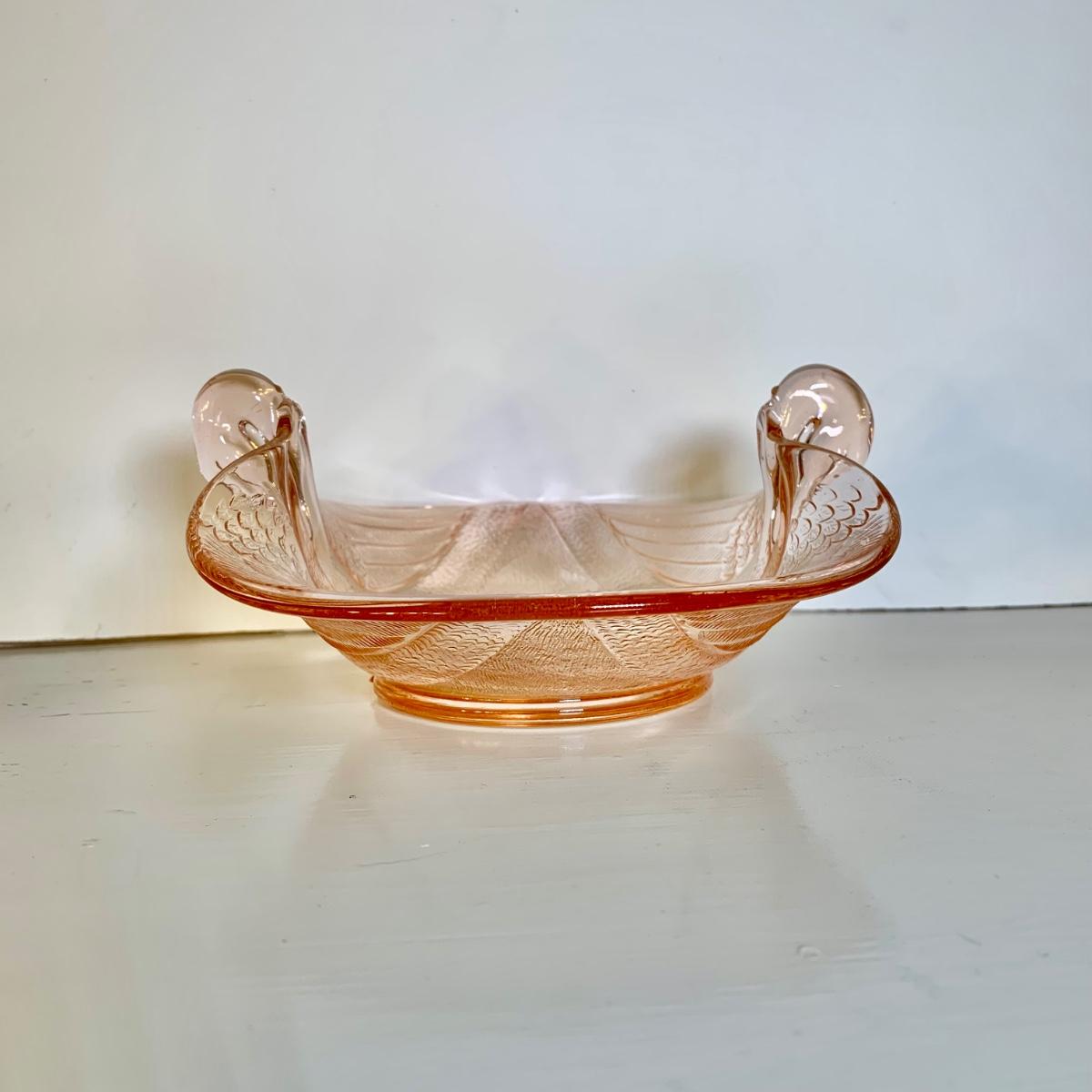 LOT 89 L: Pink Depression Glass Collection: Fenton Swan Handle Bowls & More