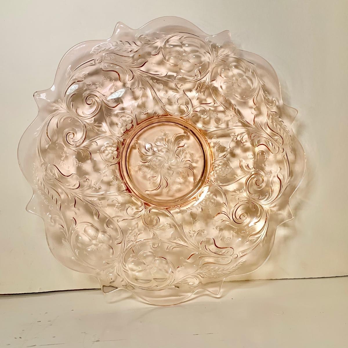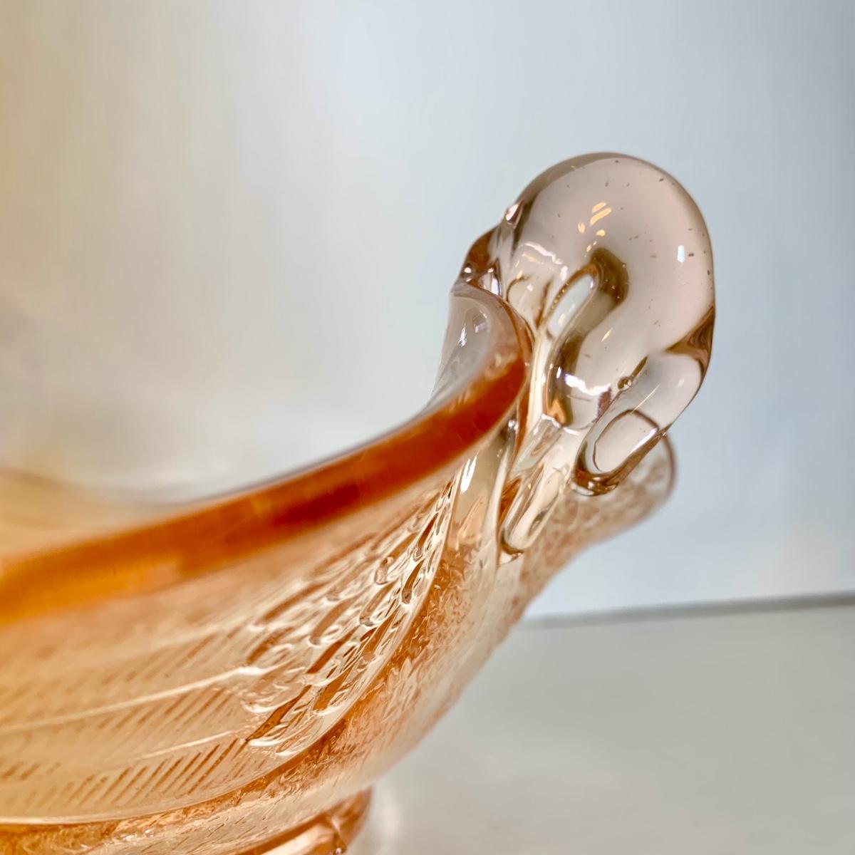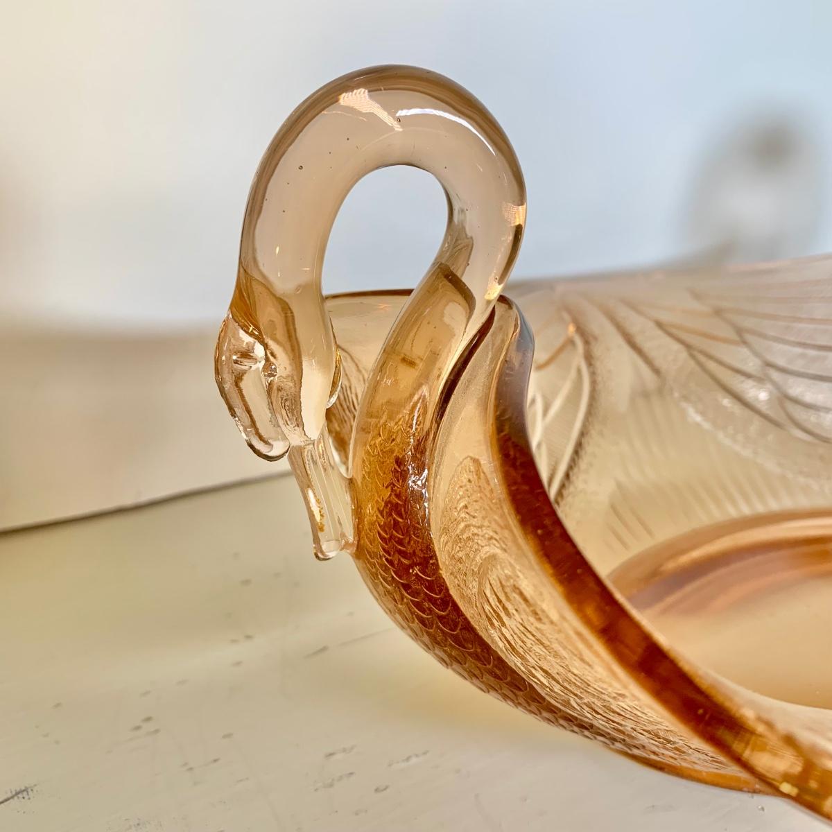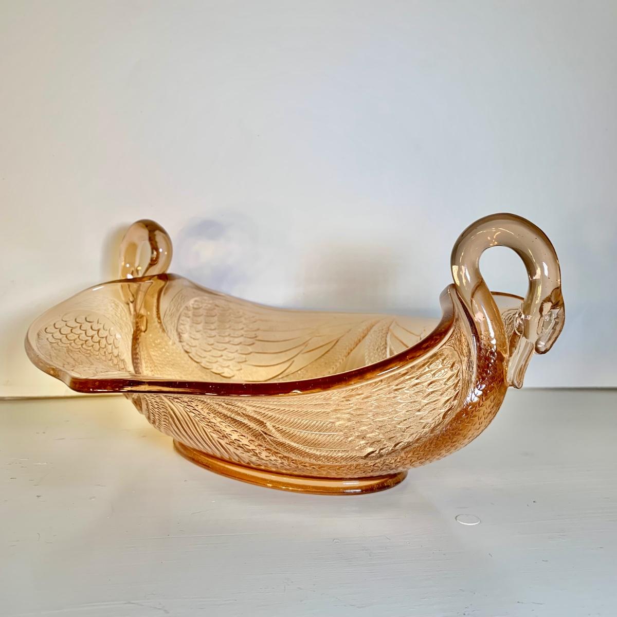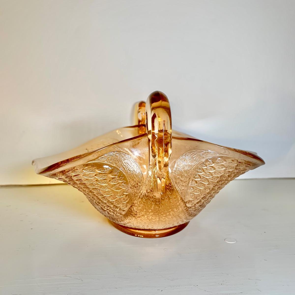 LOT 89 L: Pink Depression Glass Collection: Fenton Swan Handle Bowls & More