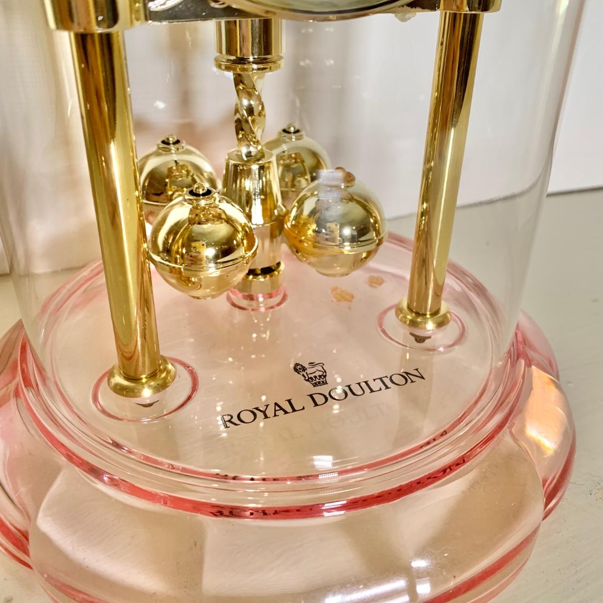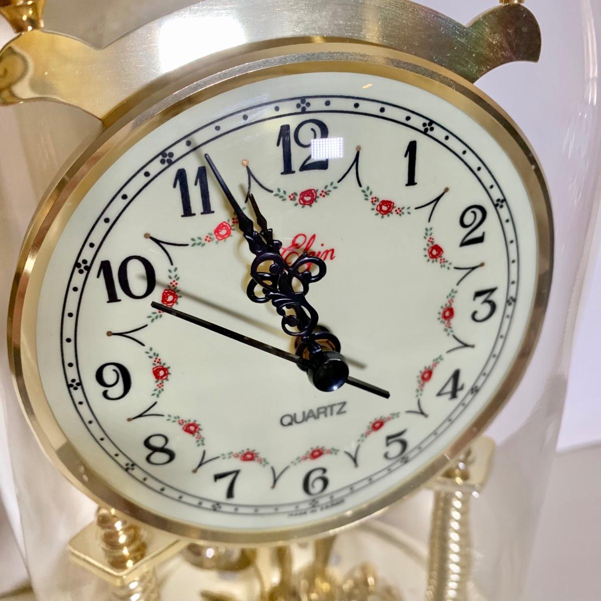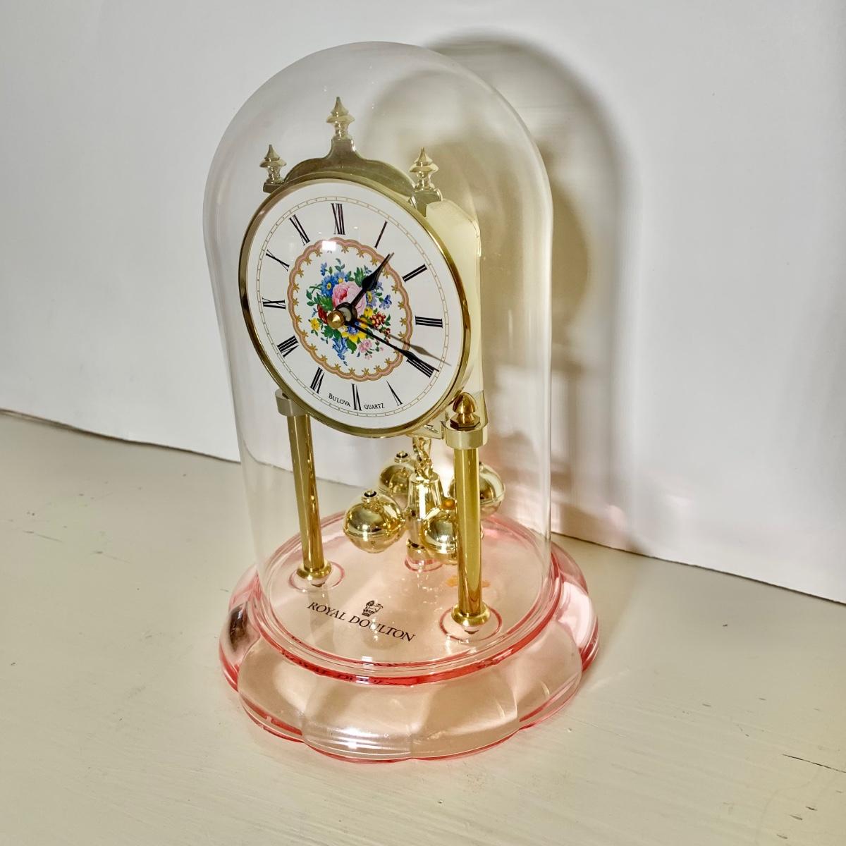 LOT 94 L: Elgin Japan Quartz Anniversary Mantle Clock & German Royal Daulton Pink Glass Base Mantle Clock