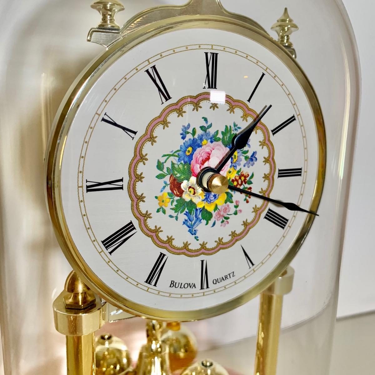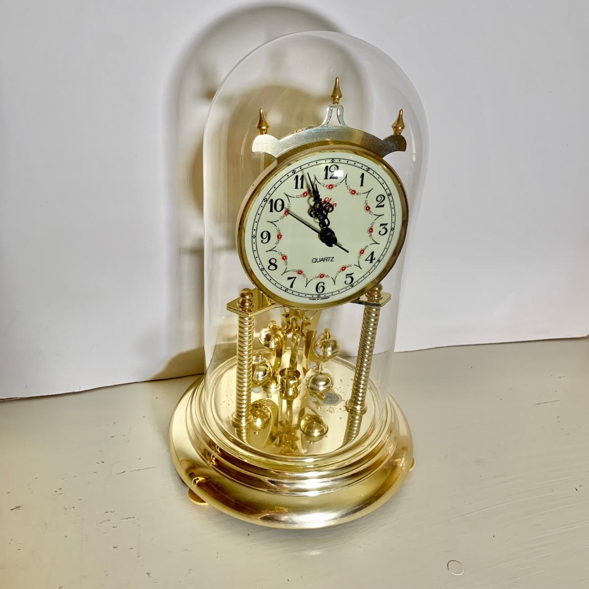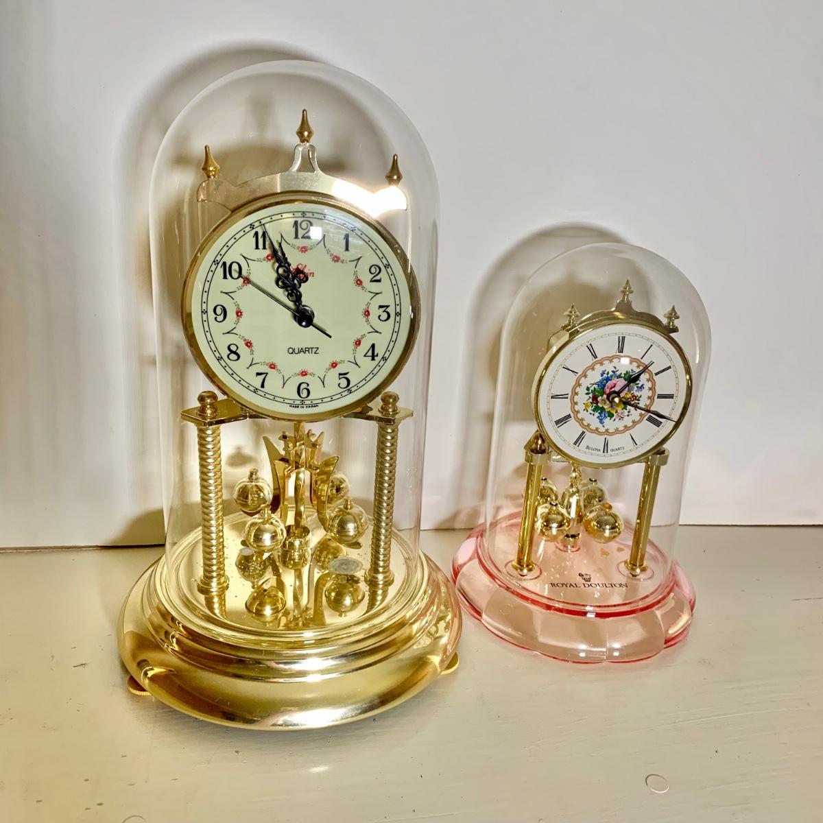LOT 94 L: Elgin Japan Quartz Anniversary Mantle Clock & German Royal Daulton Pink Glass Base Mantle Clock