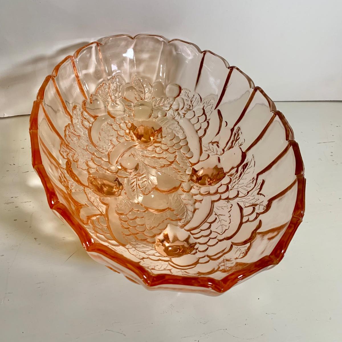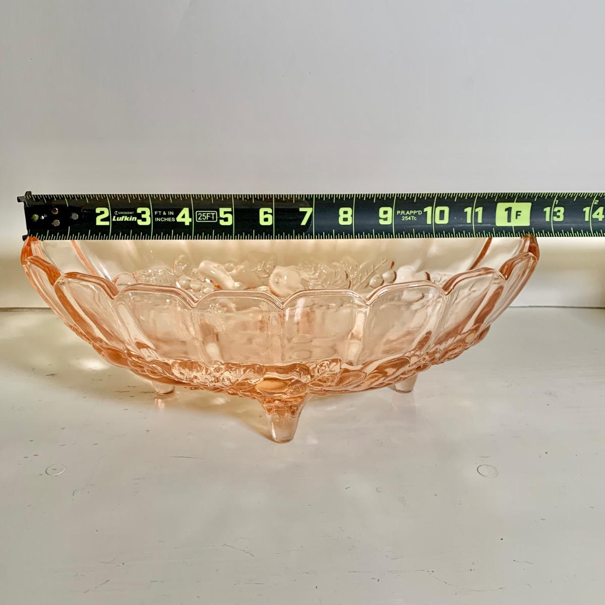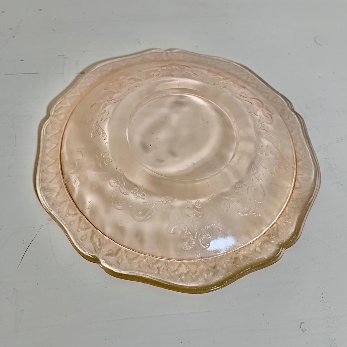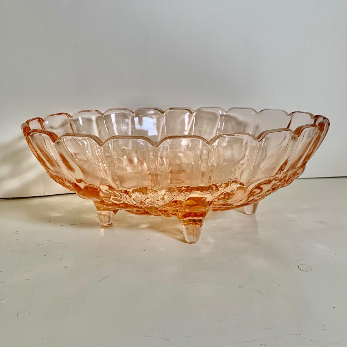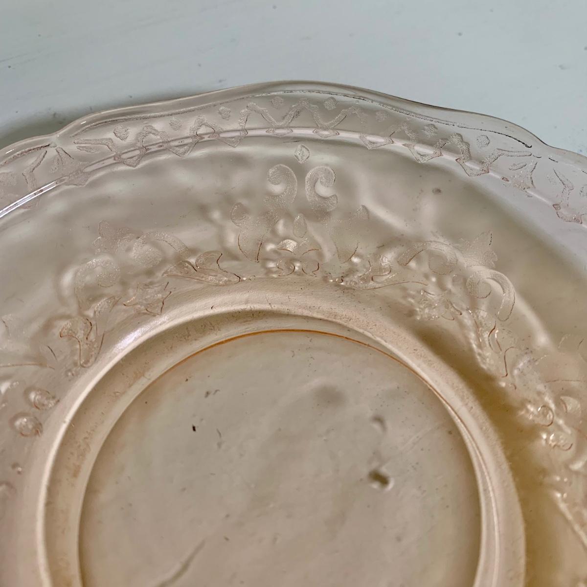 LOT 98 L: Pink Depression Glass Collection: Hazel Atlas Florentine Poppy Plate, Indiana Glass Garland Footed Fruit Bowl, & More