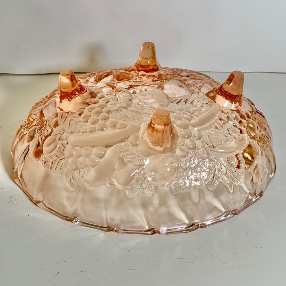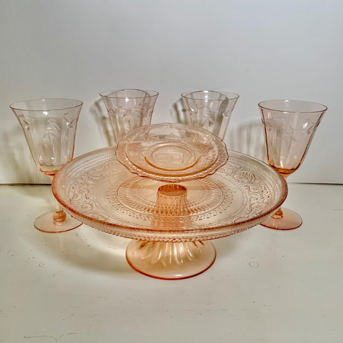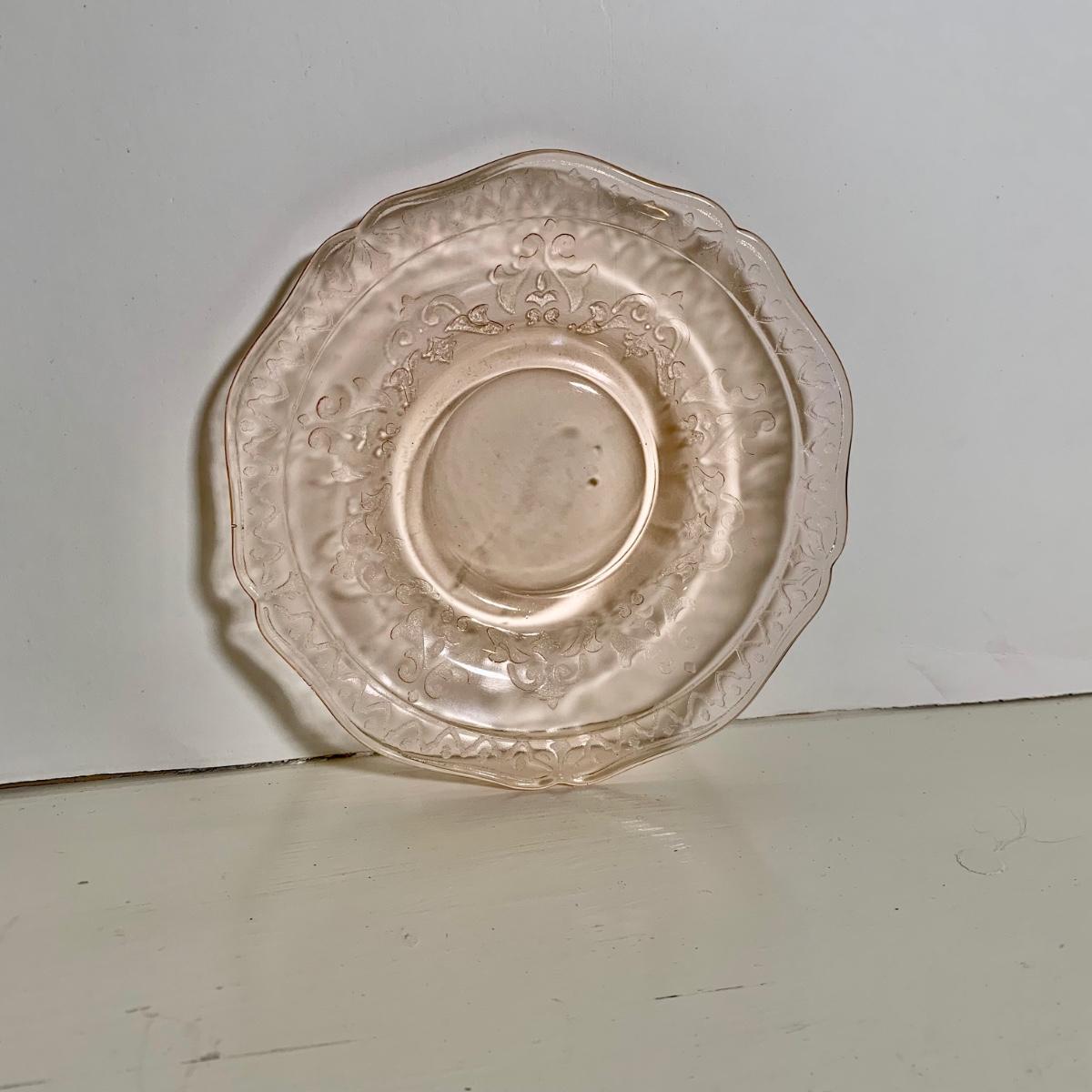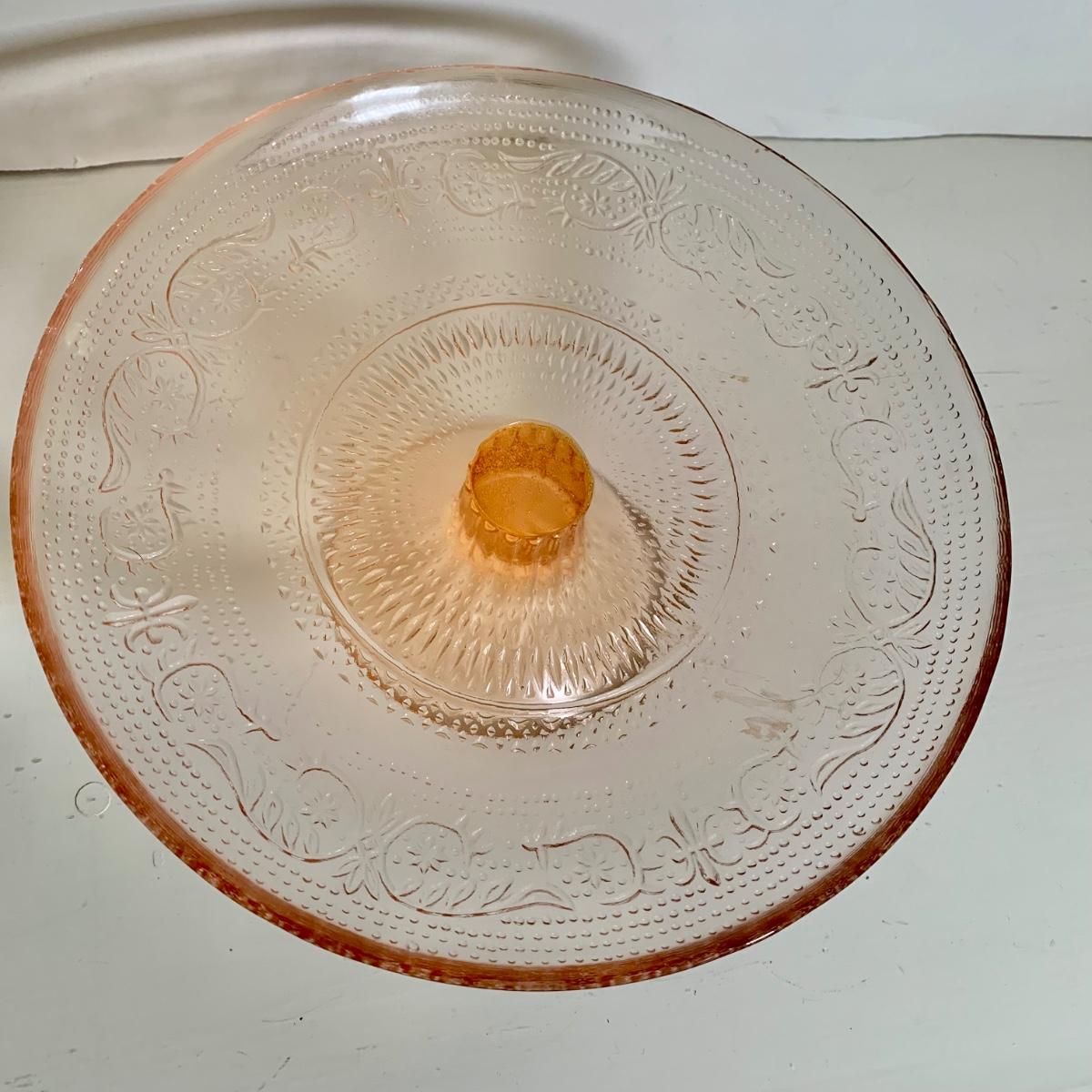LOT 98 L: Pink Depression Glass Collection: Hazel Atlas Florentine Poppy Plate, Indiana Glass Garland Footed Fruit Bowl, & More