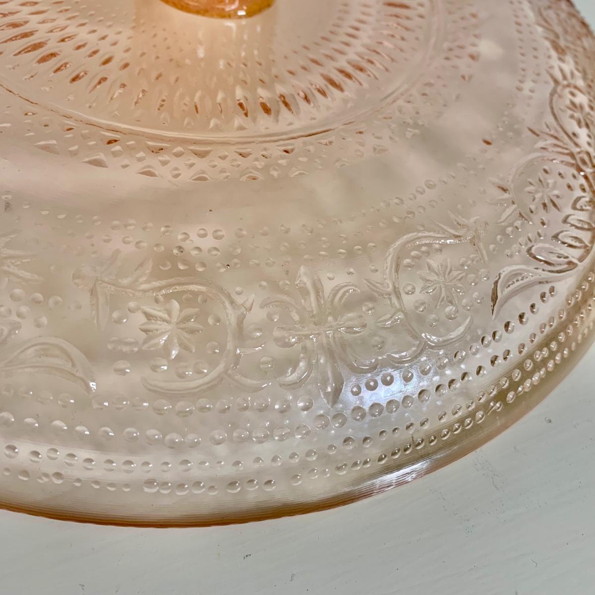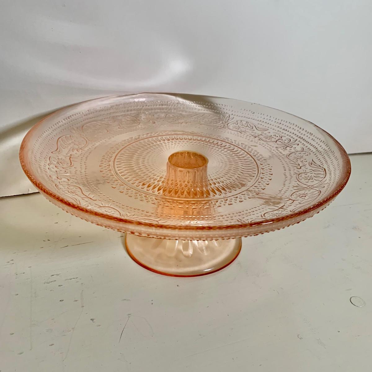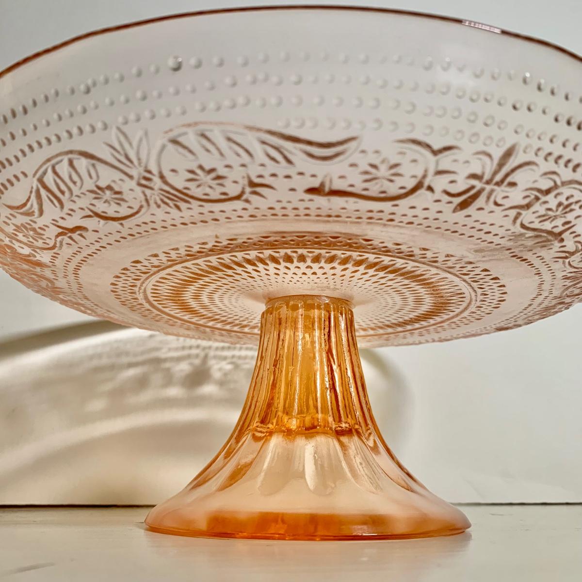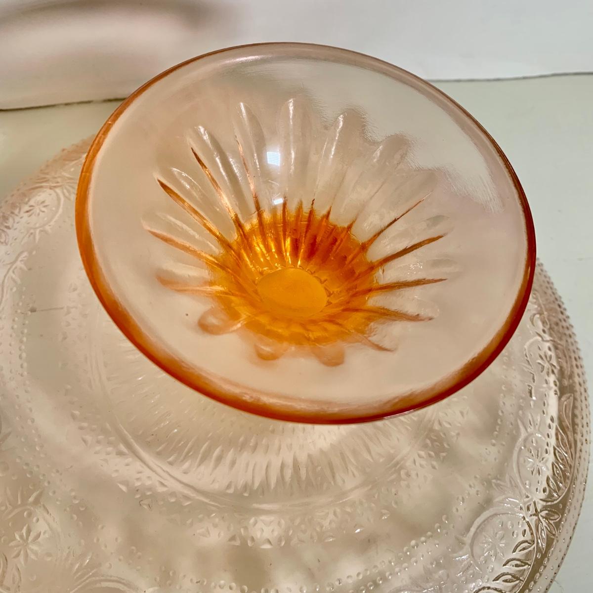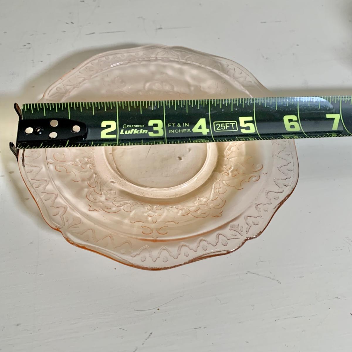 LOT 98 L: Pink Depression Glass Collection: Hazel Atlas Florentine Poppy Plate, Indiana Glass Garland Footed Fruit Bowl, & More