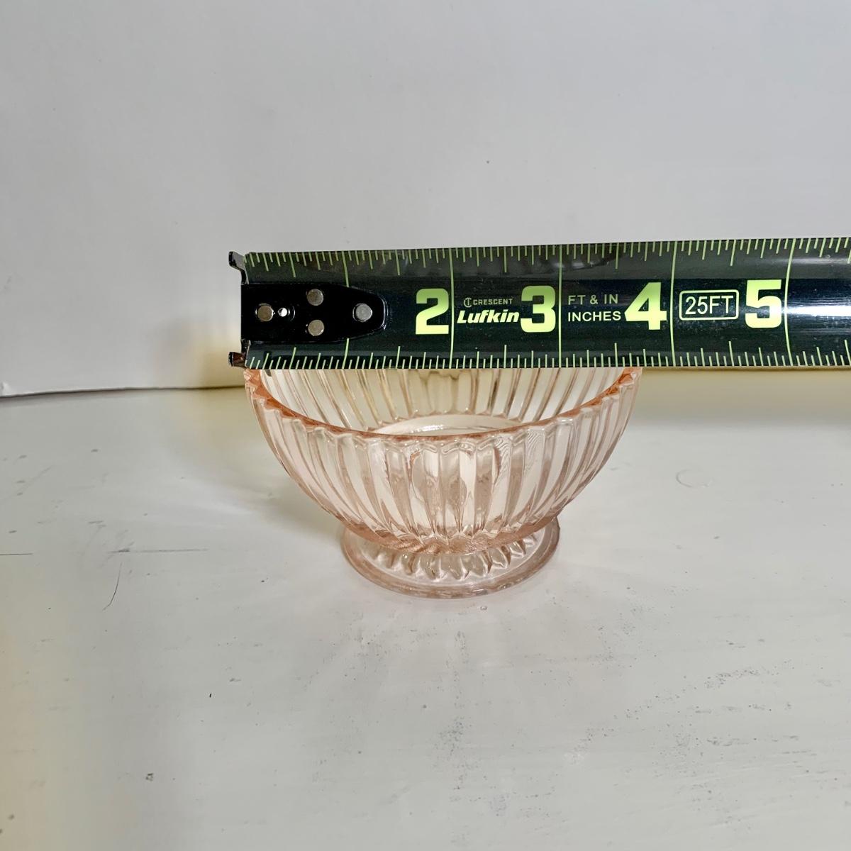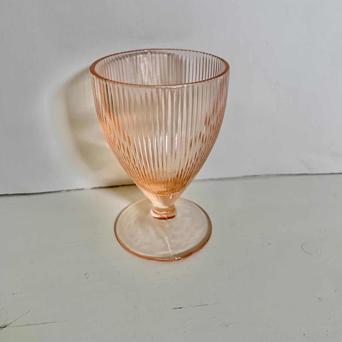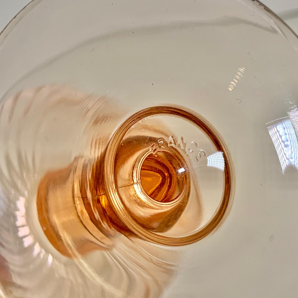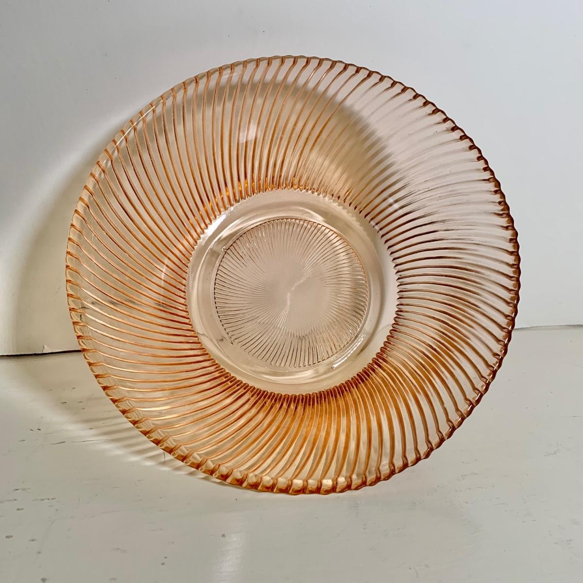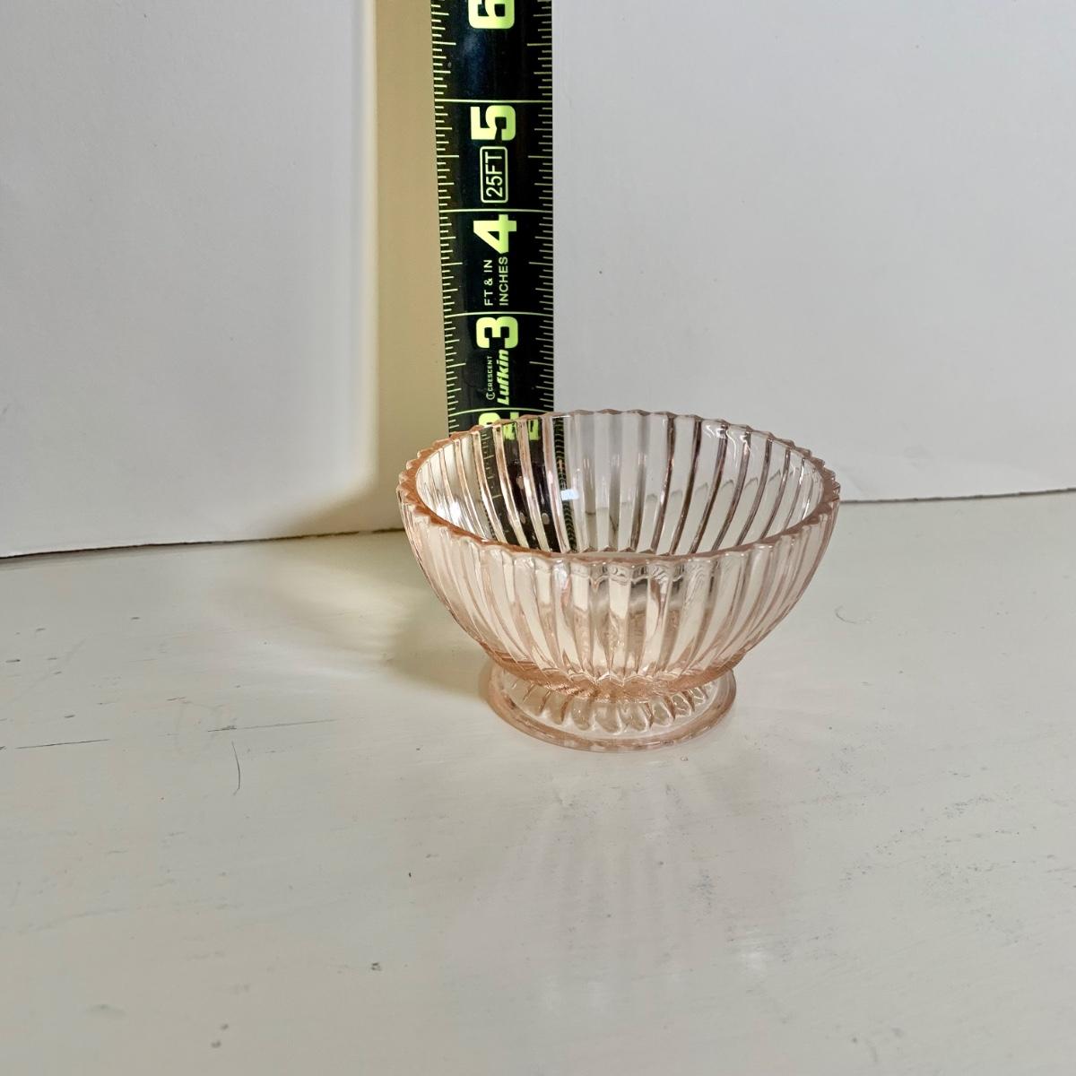 LOT 100 L: Pink Depression Glass Collection: Arcoroc Luminarc Rosaline Swirl Champagne & Queen Mary Sherbet Glasses, Federal Glass Diana Swirl Serving Bowl, & Jeannette Homespun Juice Glasses