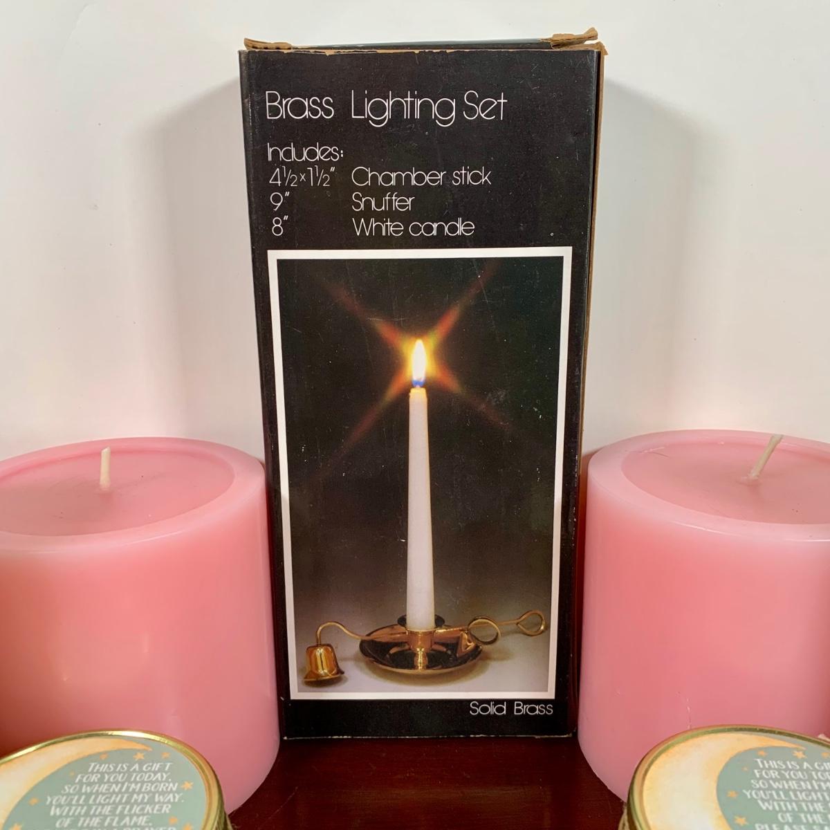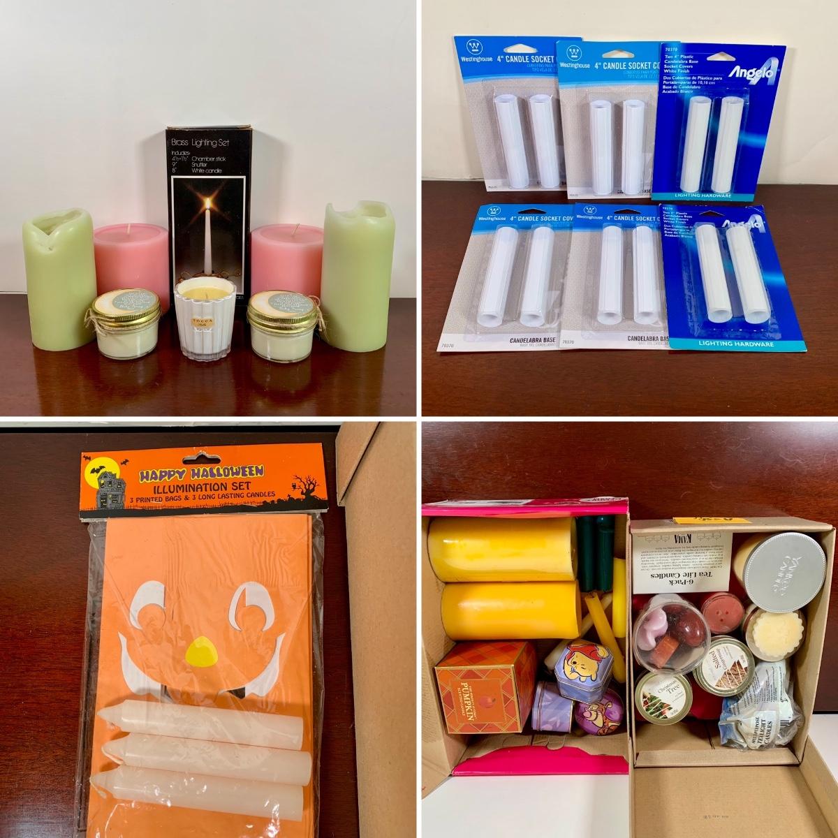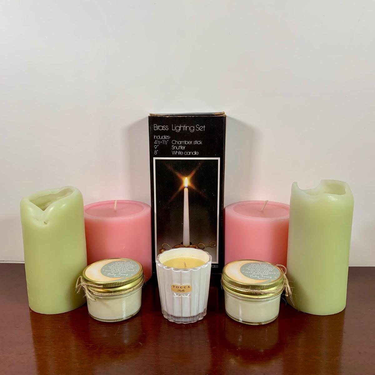LOT 111 D: Candle Collection: Brass Lighting Set, Tocca, Winnie The Pooh, Yankee, Slatkin & Co, & More