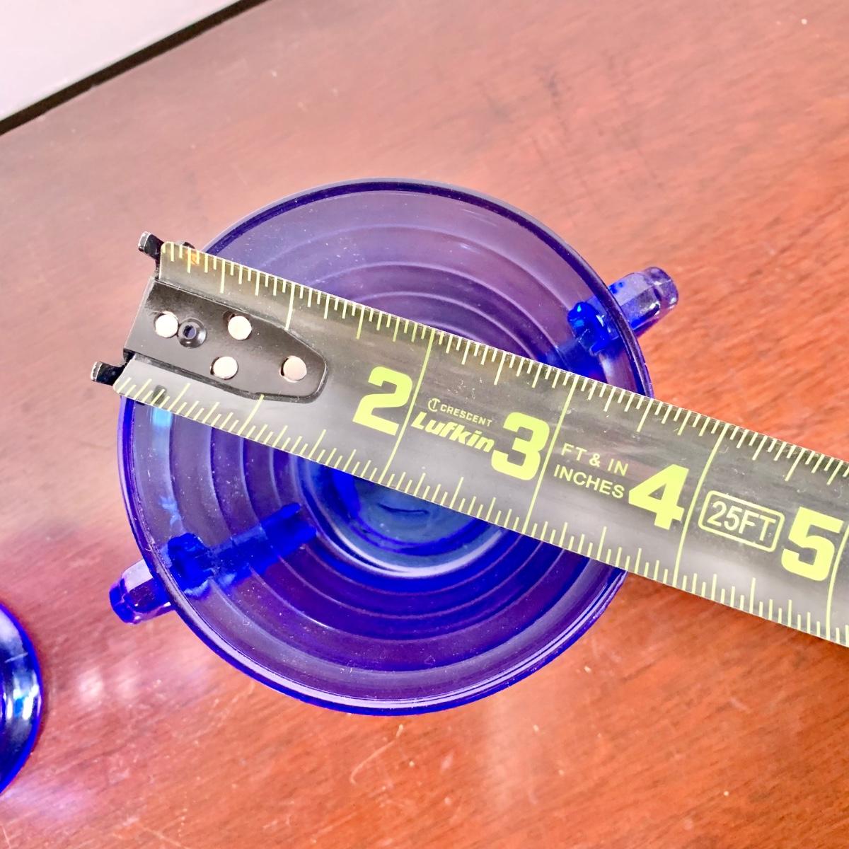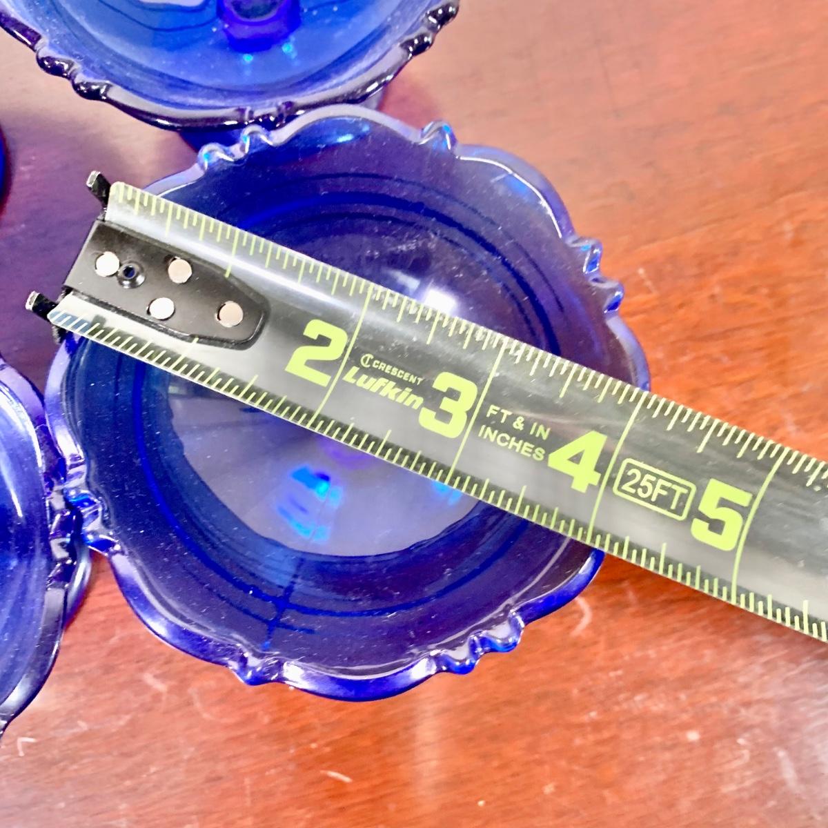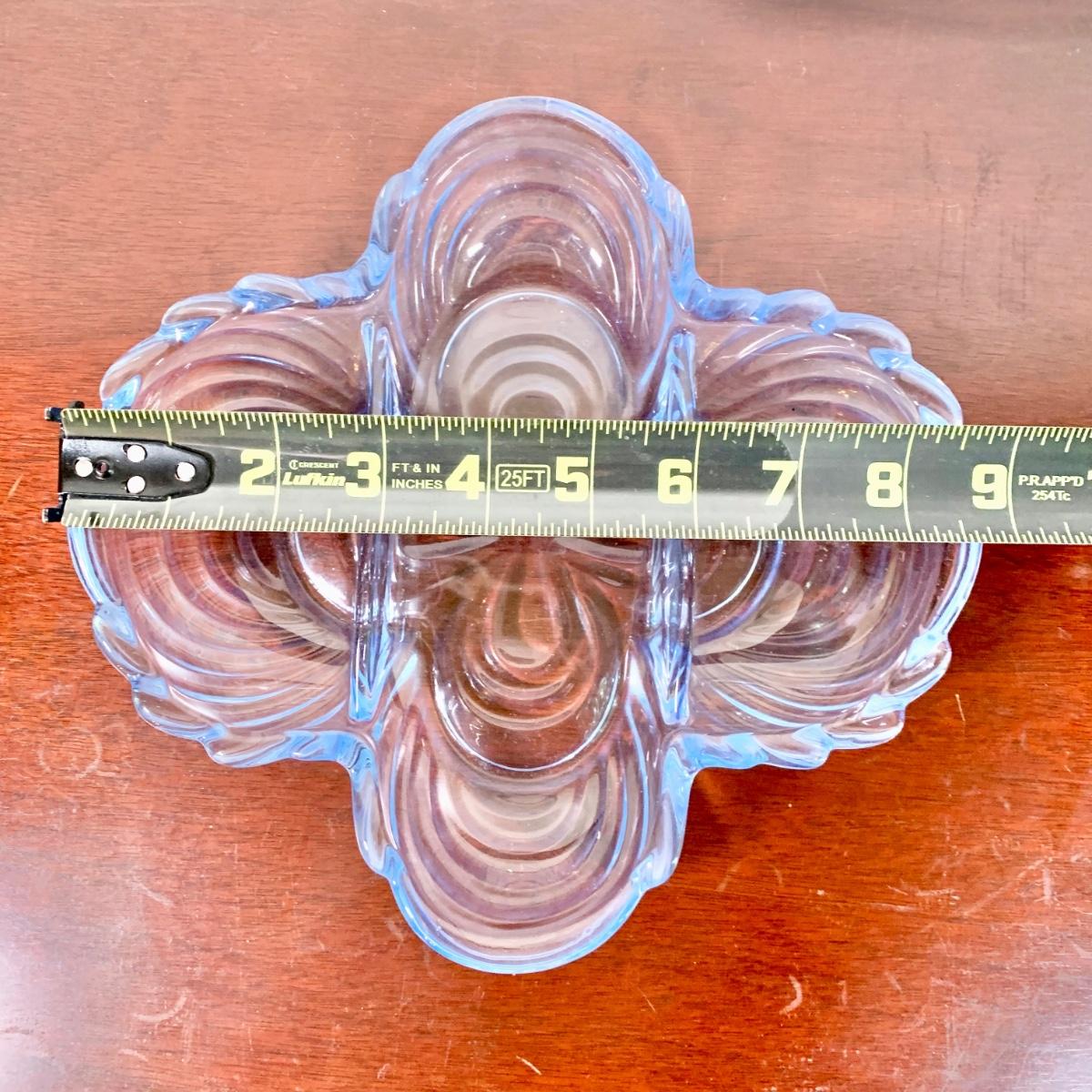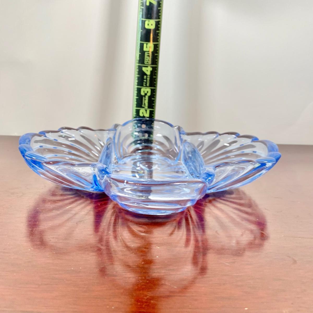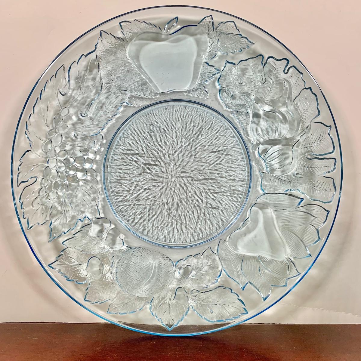 LOT 115 D: Blue Glass Collection: 1950's Lowell Hand Cream Top Hat Ashtray, Della Robbia Fruit Plate, 1890's Cathedral Pepper Sauce Bottle, & More