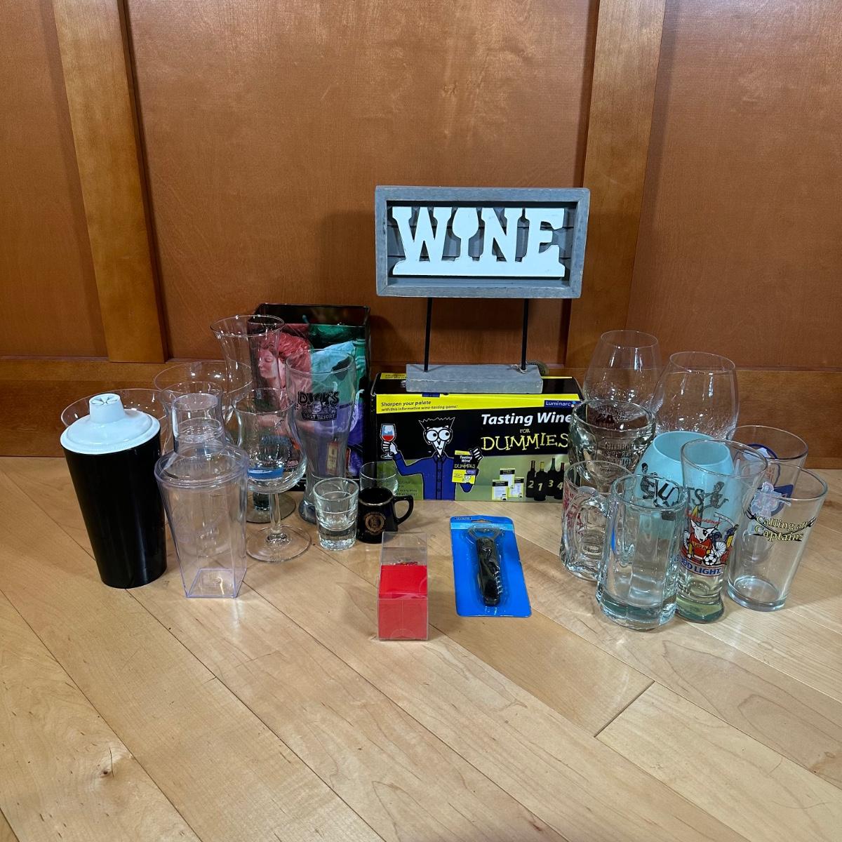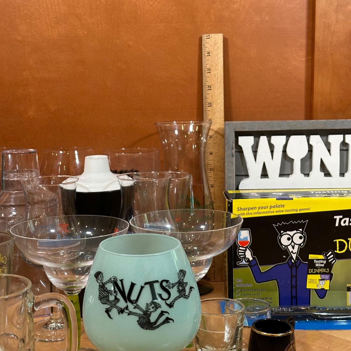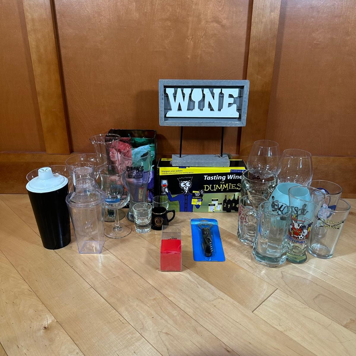 LOT 124L: Bar Essentials! Shot Glasses, Goblets, Tasting Wine For Dummies & More