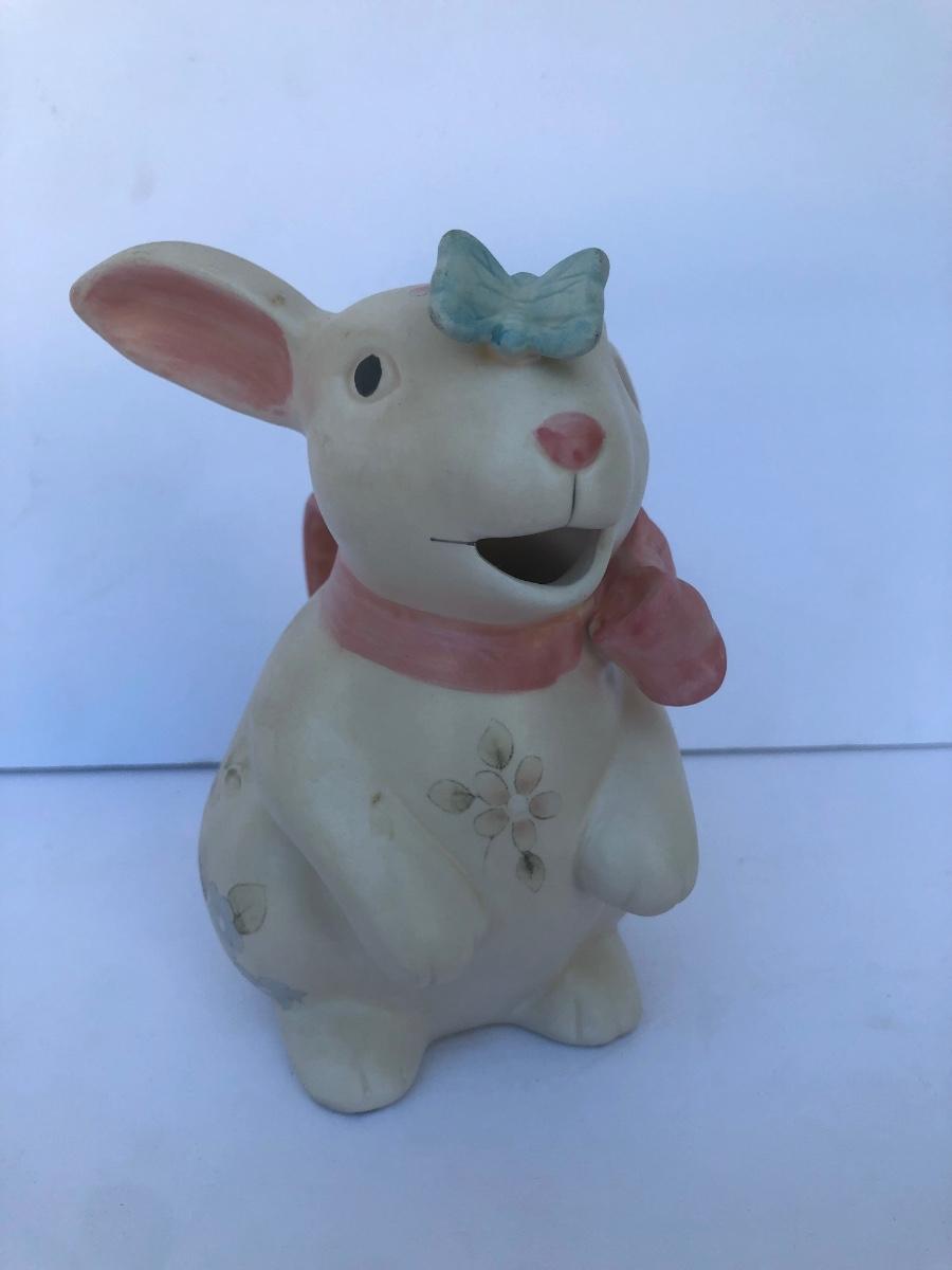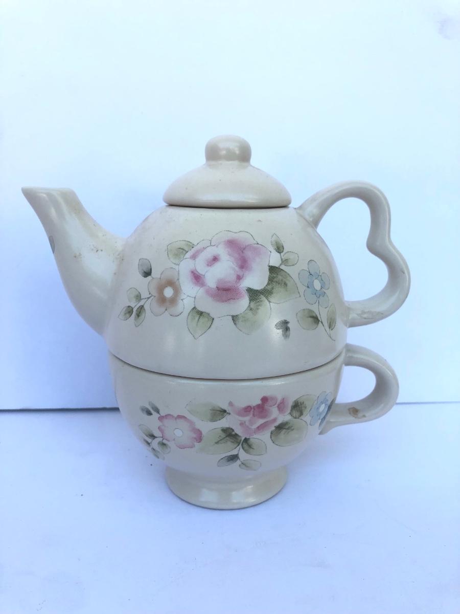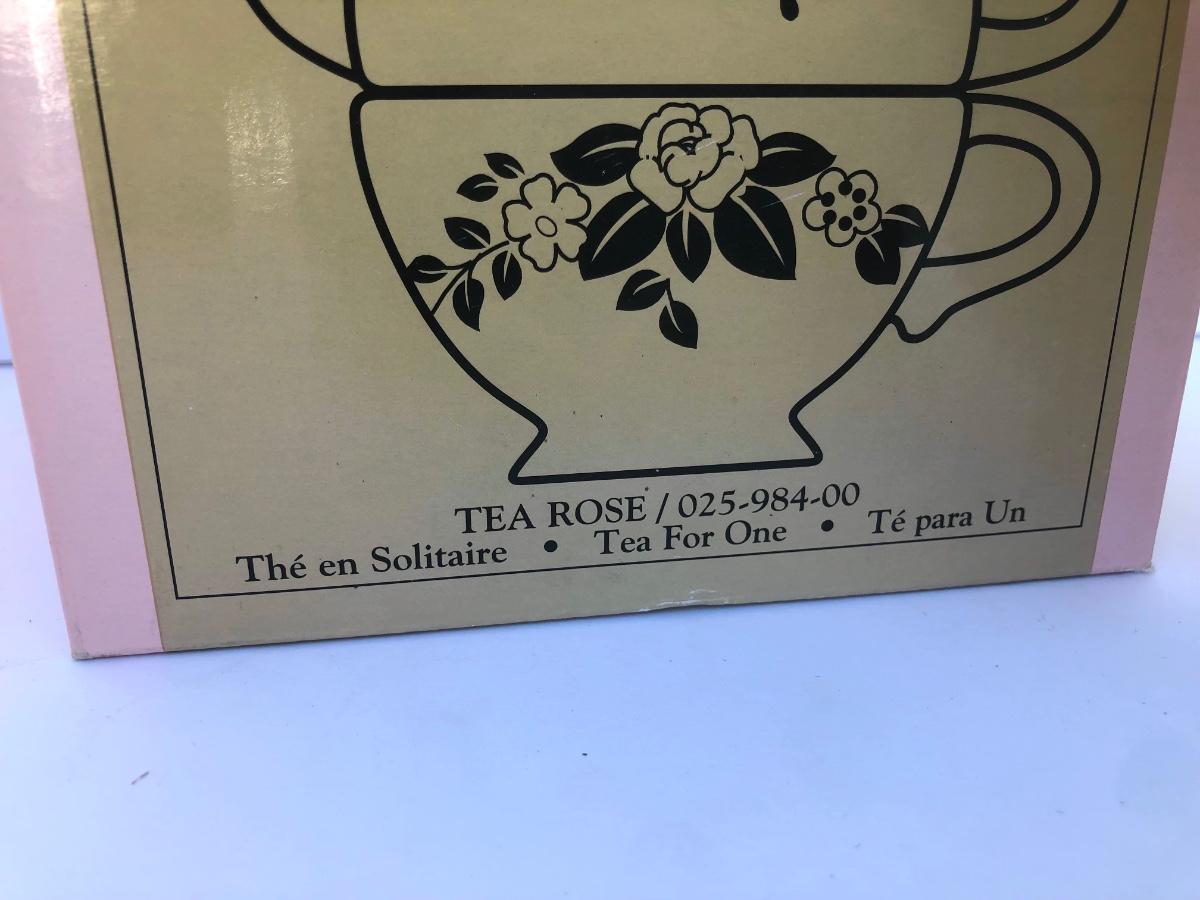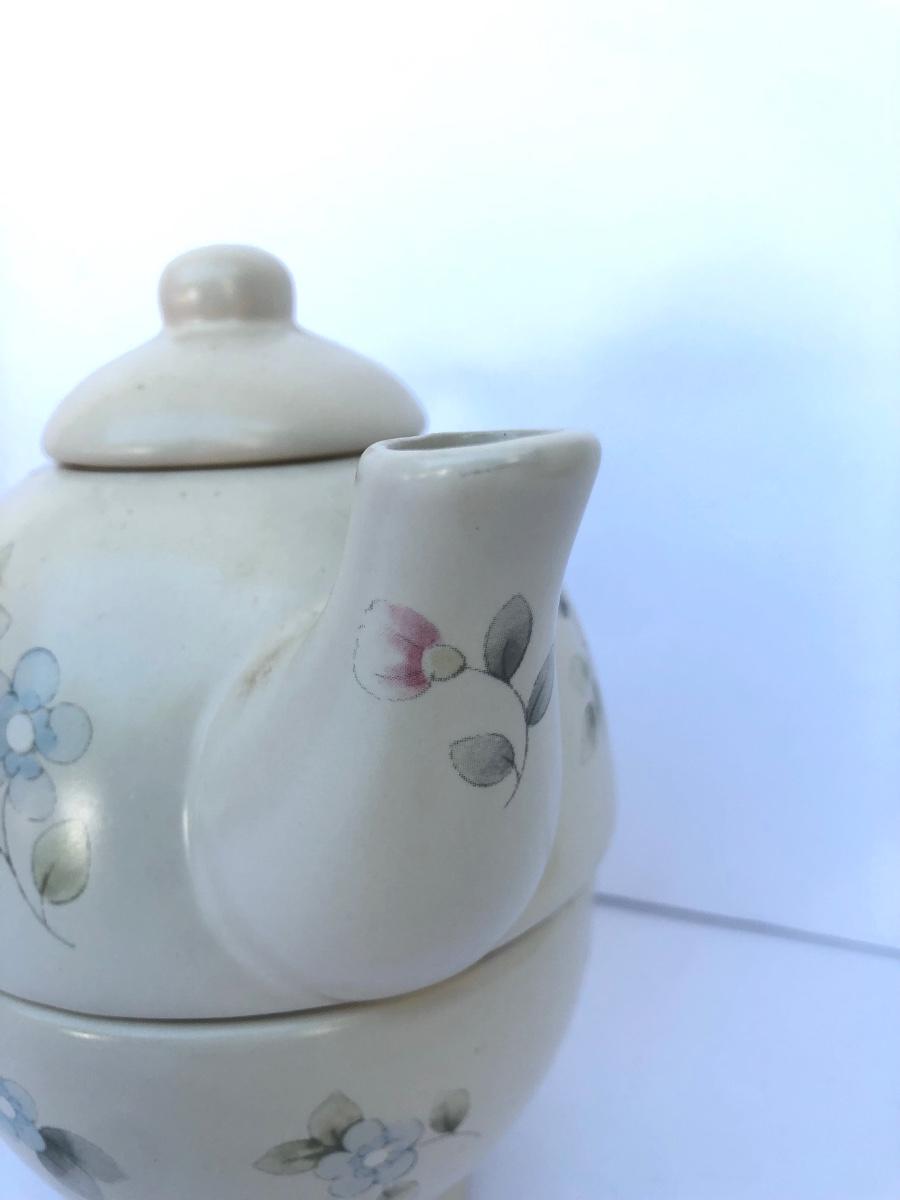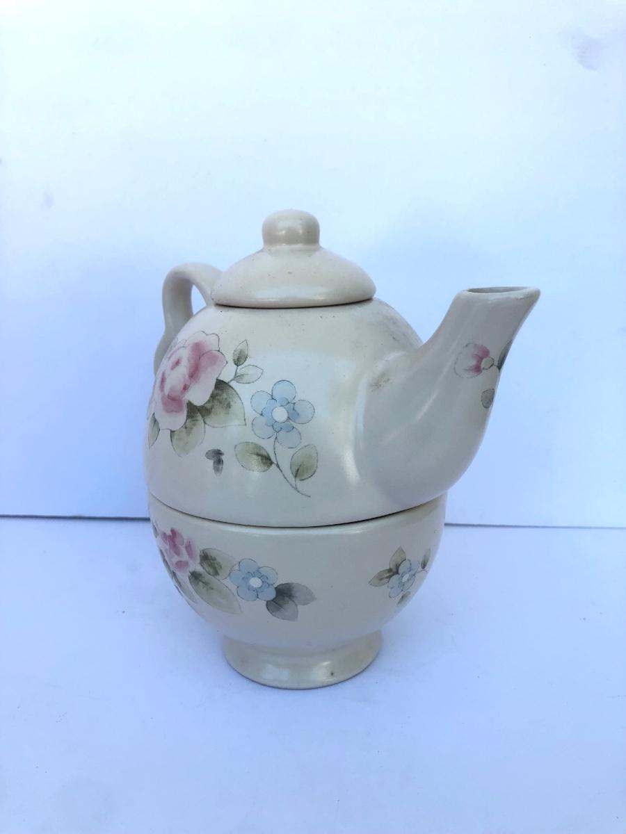 LOT 142G: Pfaltzgraff Perennials Tea Rose Tea for One Stacking Teapot & Sculpted Bunny Sugar and Creamer (Both w/ Original Boxes)