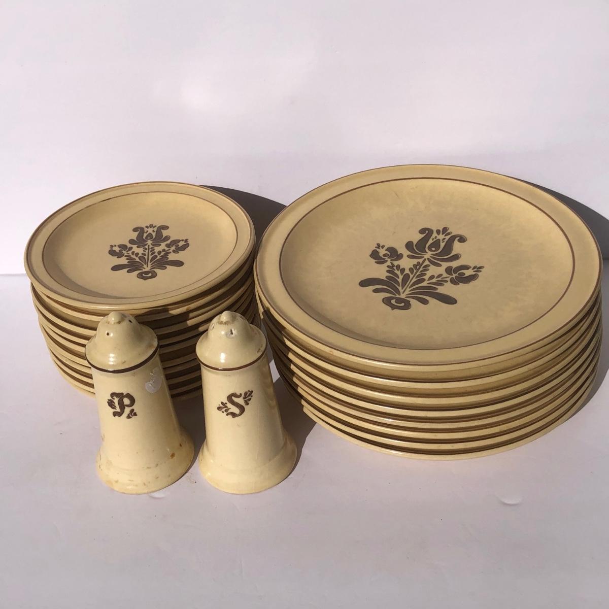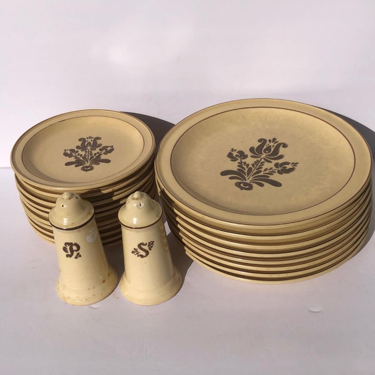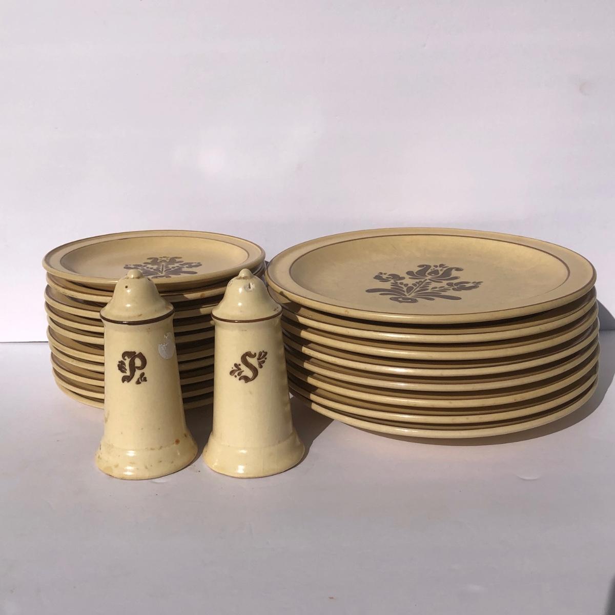 LOT 151G: Pfaltzgraff Village Salt and Pepper Shakers, 7" Plates (10) & 11" Plates (8)