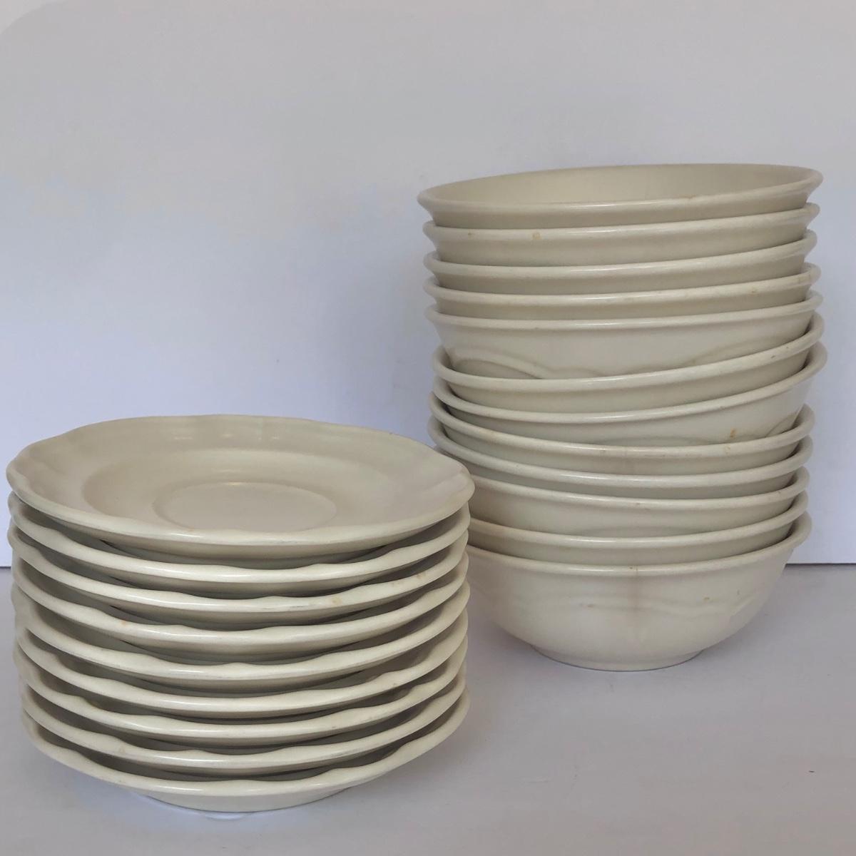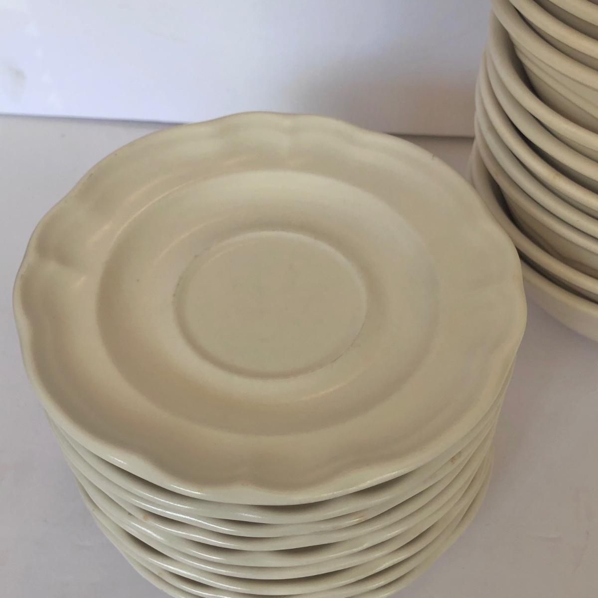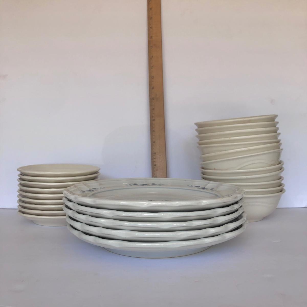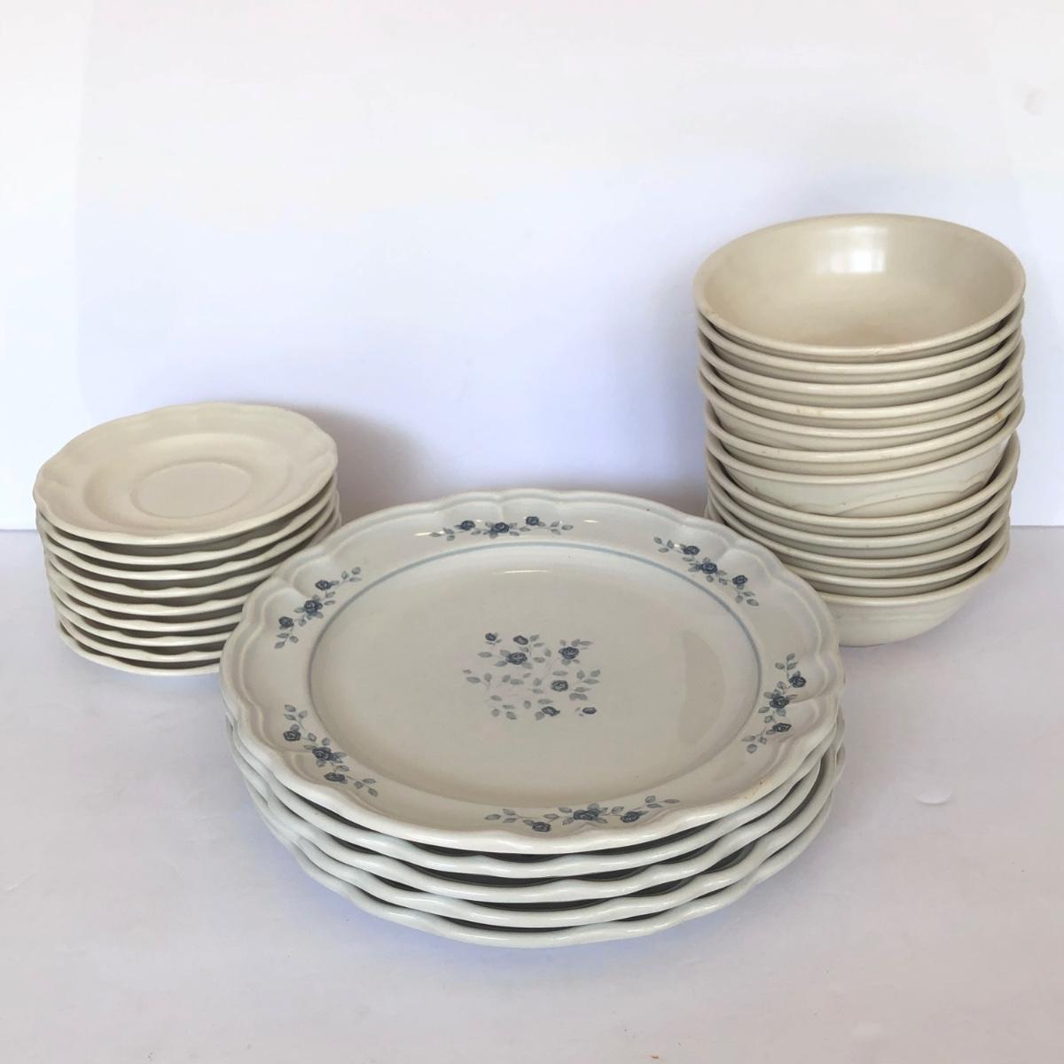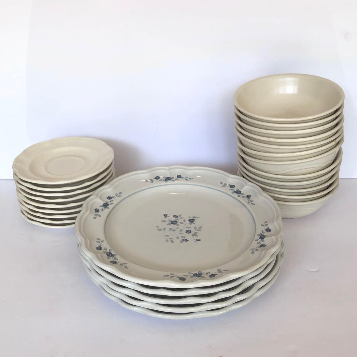 LOT 153G: Pfaltzgraff - Poetry 10" Plates (5) & Plain Tea Rose / Gazebo Saucers (9) & Bowls (12)