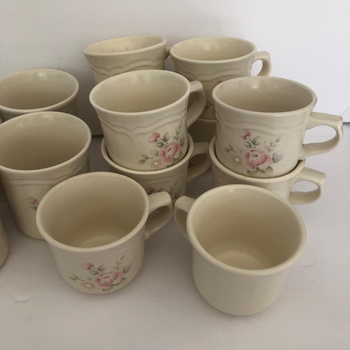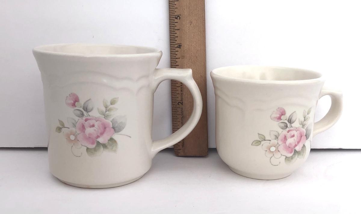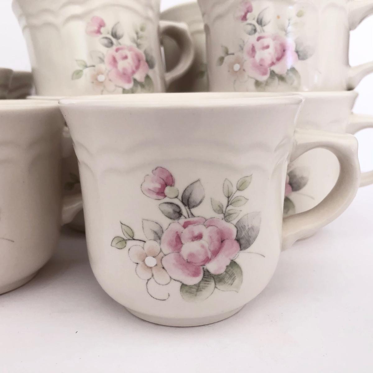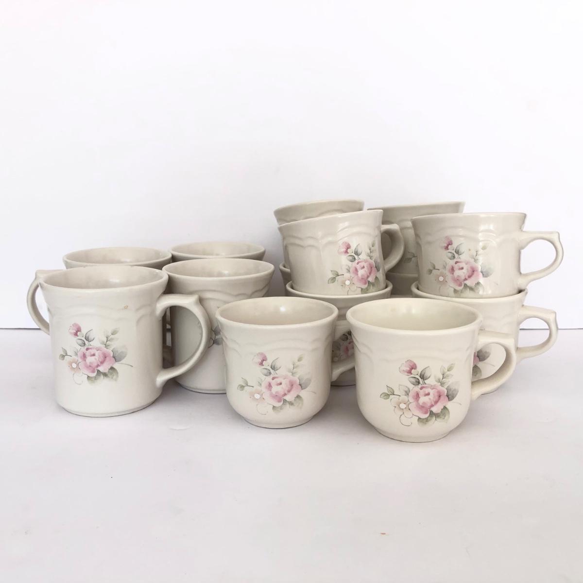 LOT 154G: Pfaltzgraff Tea Rose Mugs - 4 tall & 10 short