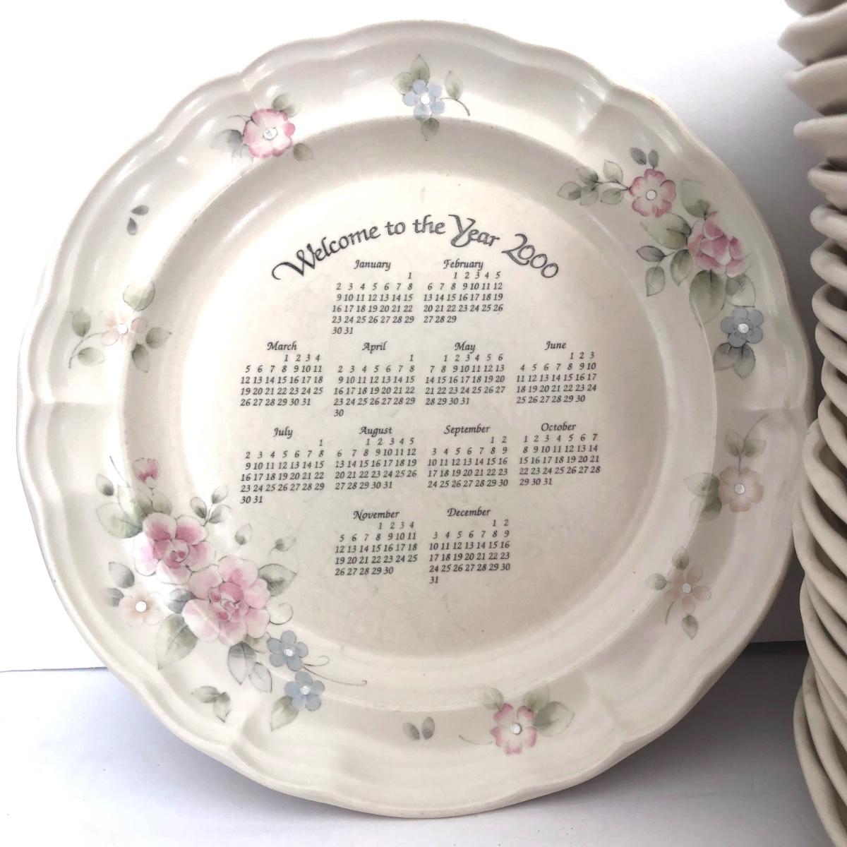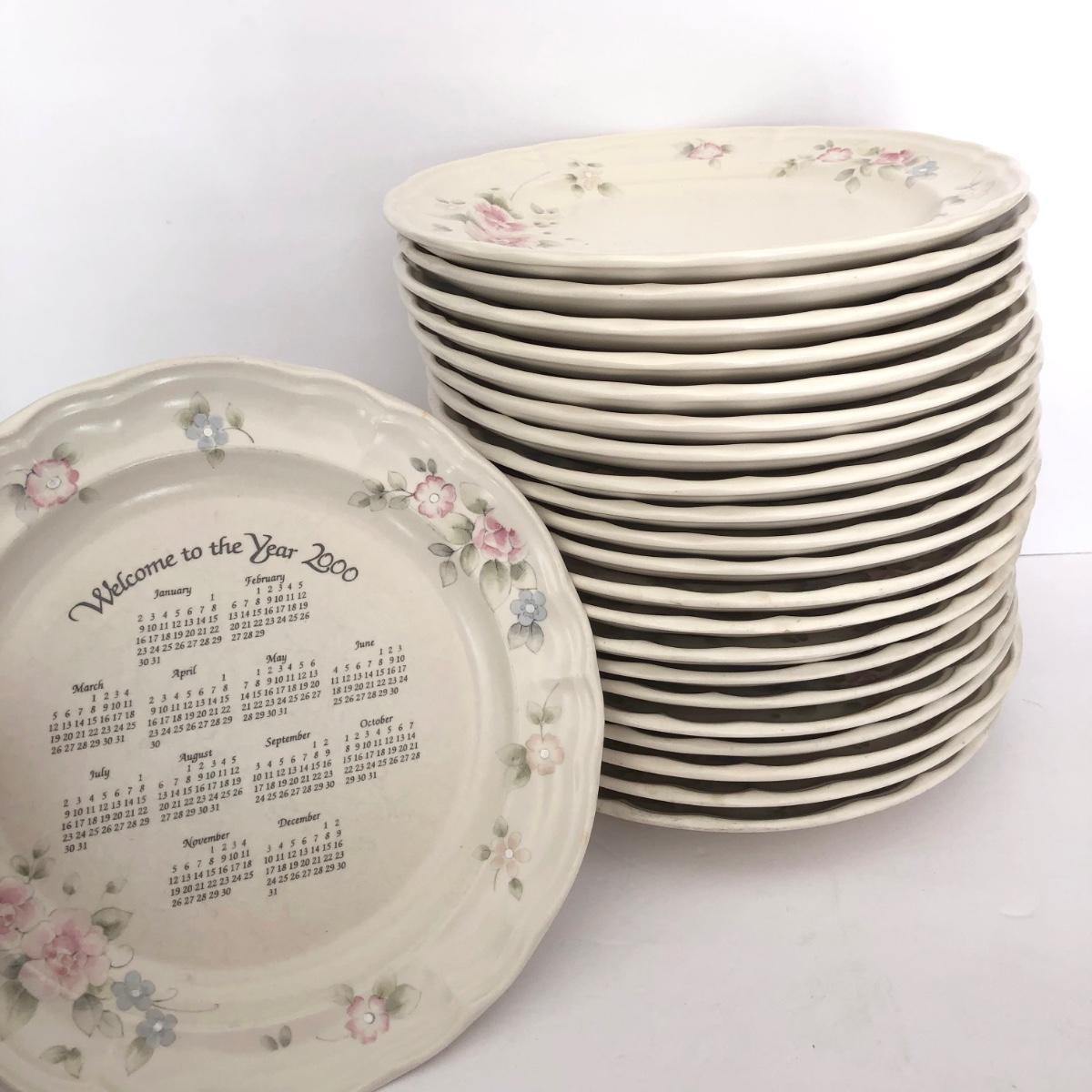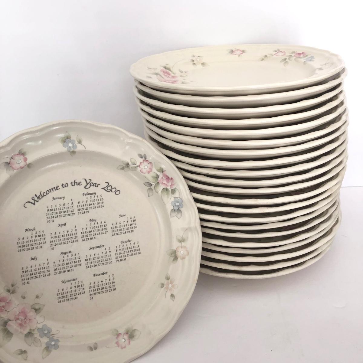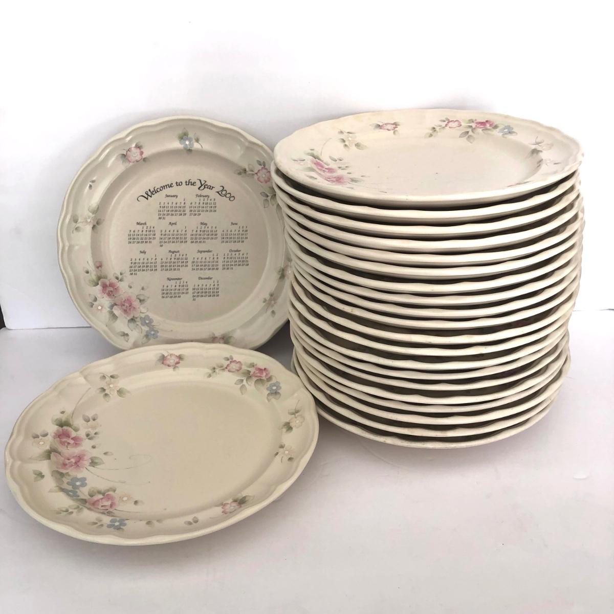 LOT 157G: 22 Pfaltzgraff Tea Rose Dinner Plates incl. "Welcome to the Year 2000" Millennium Plate