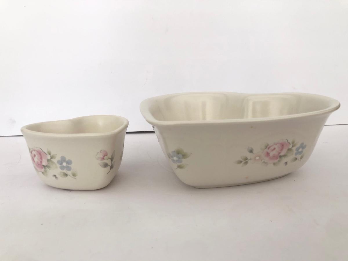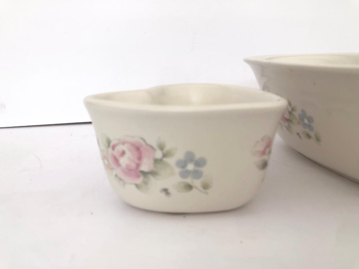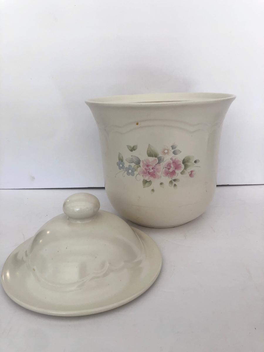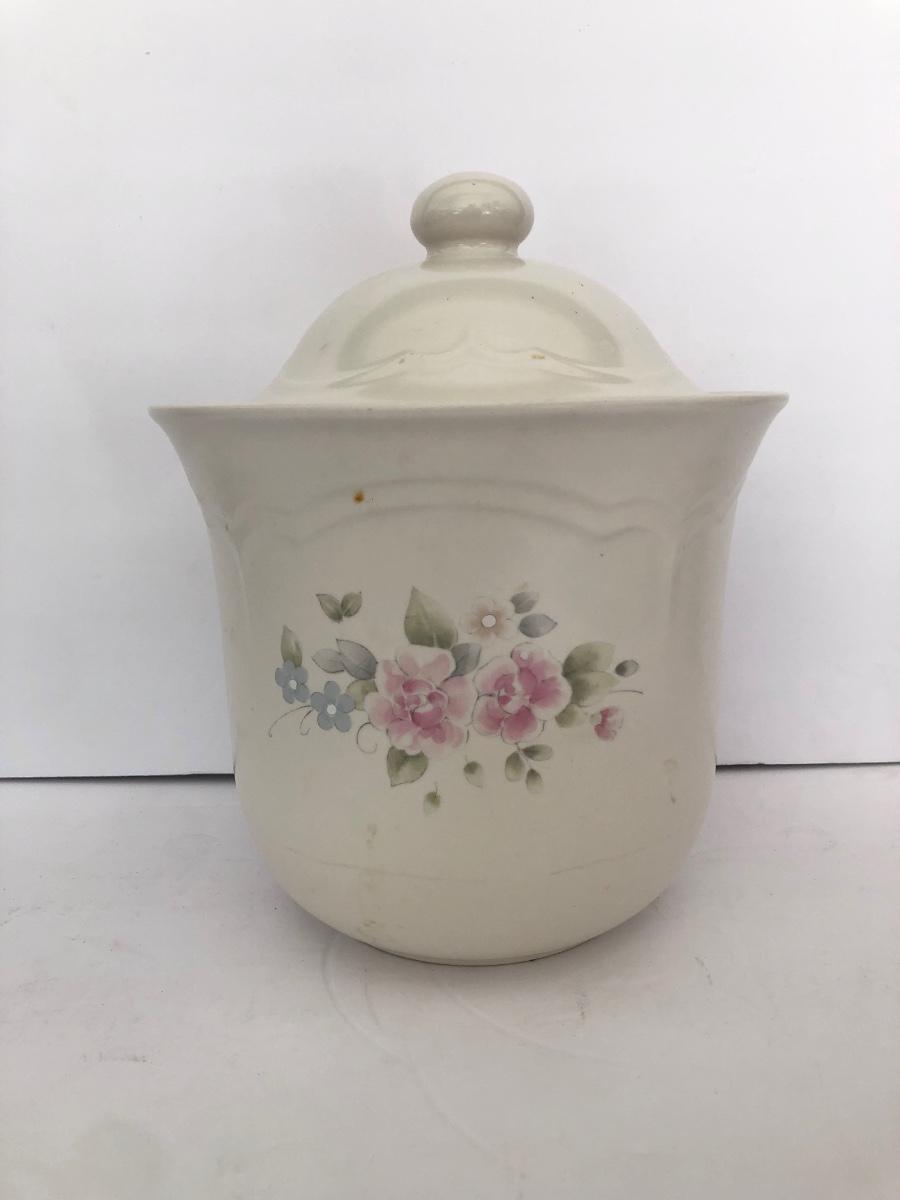 LOT 158G: Pfaltzgraff Tea Rose - Cookie Jar, Heart Shaped Dishes, Pepper Mill, Soap Dispenser & Pitcher