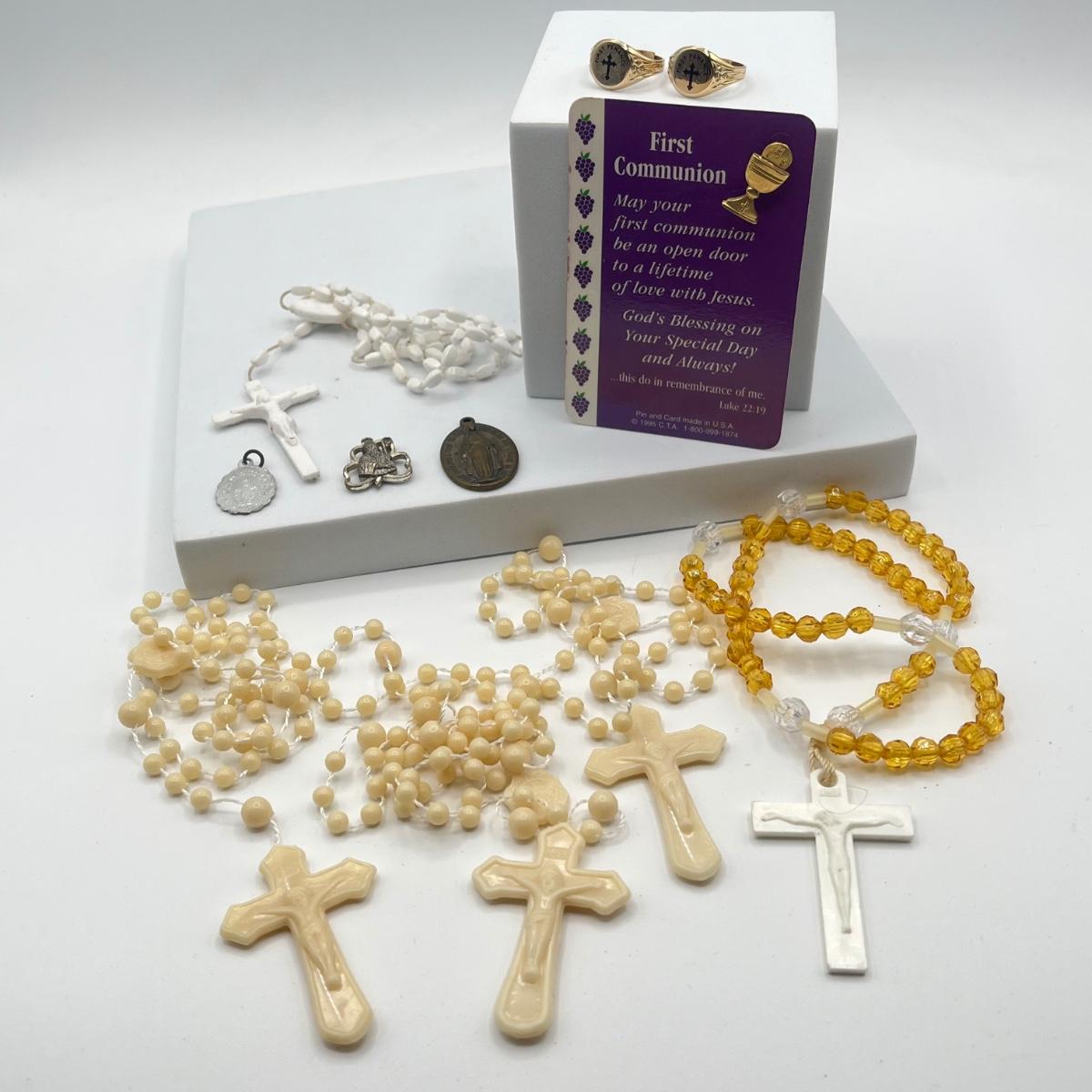 LOT 175J: Religious Jewelry Collection - Sterling Silver Pendant, Rosaries and More