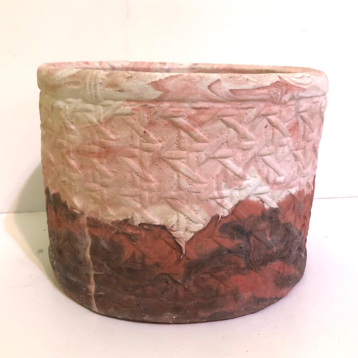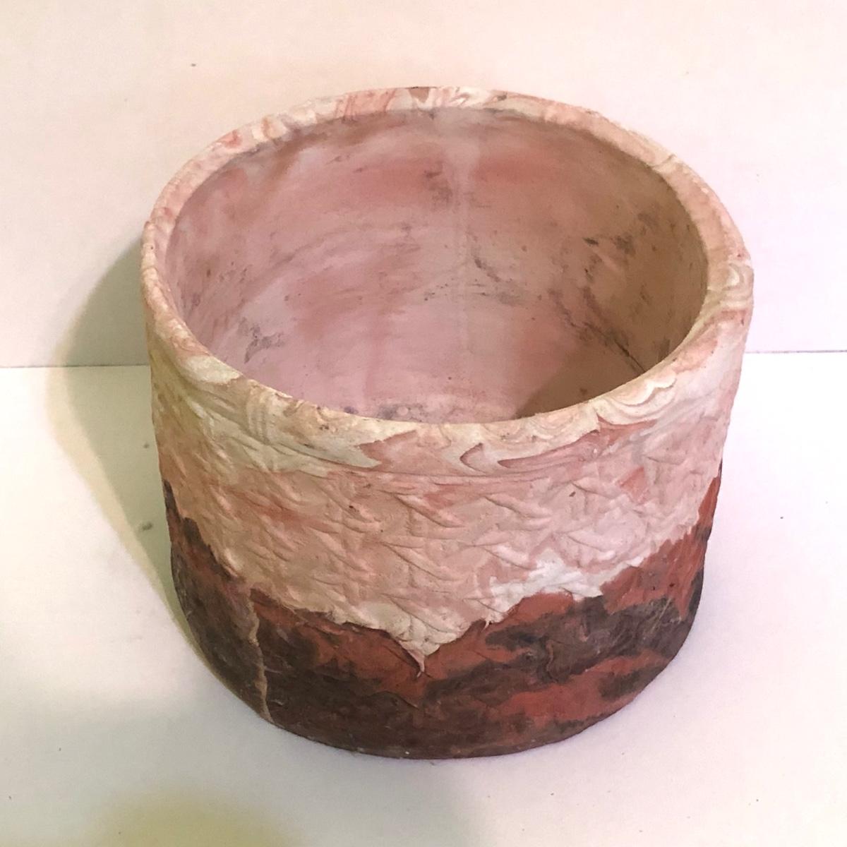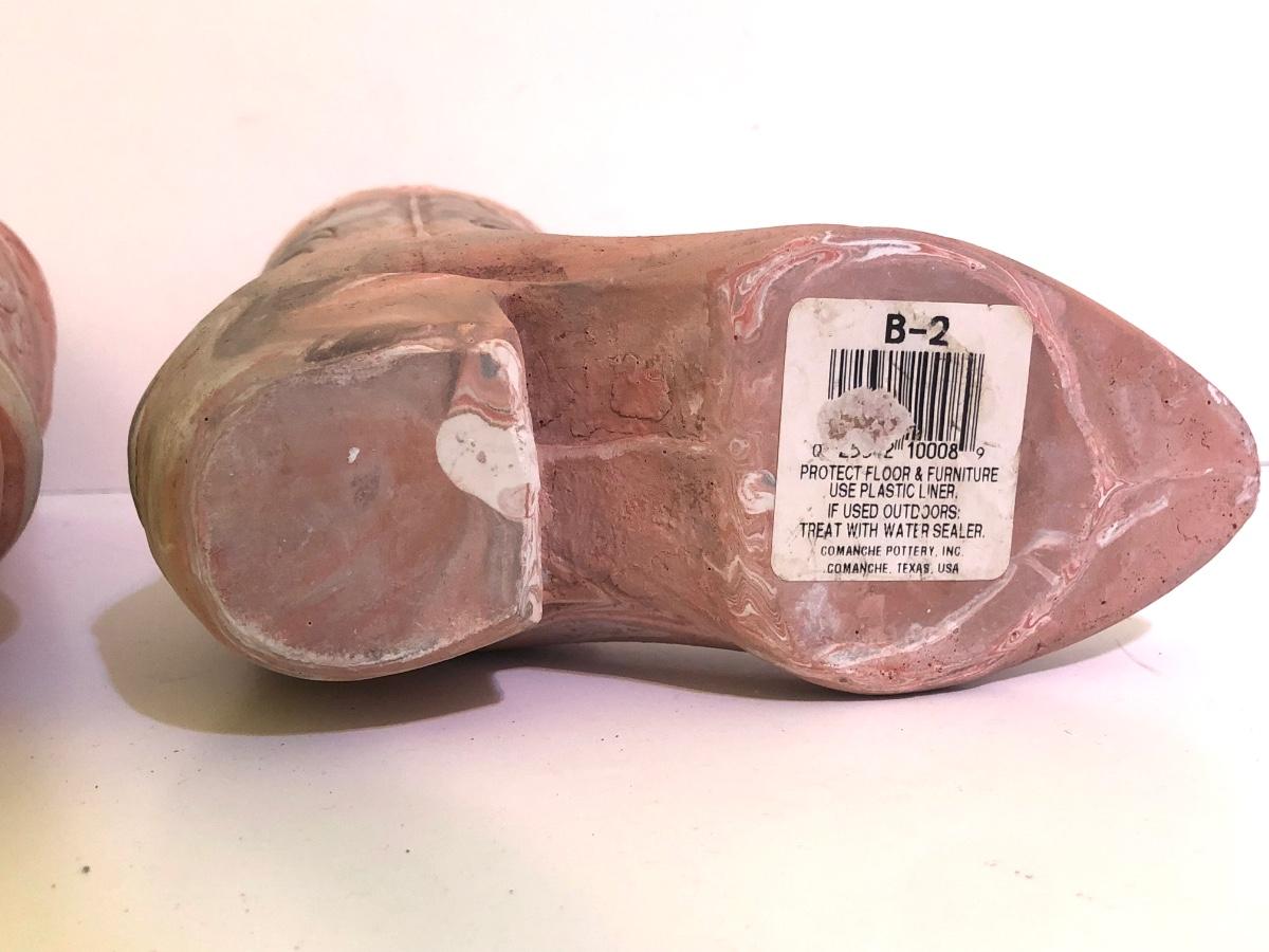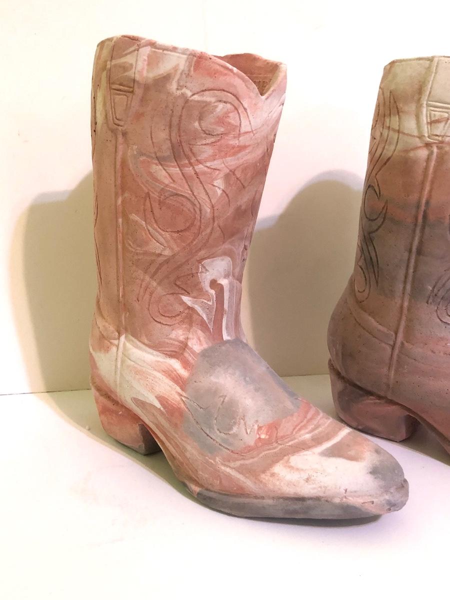 LOT 197Y: Hand Made Drum, Clay Cowboy Boots & Clay Planter