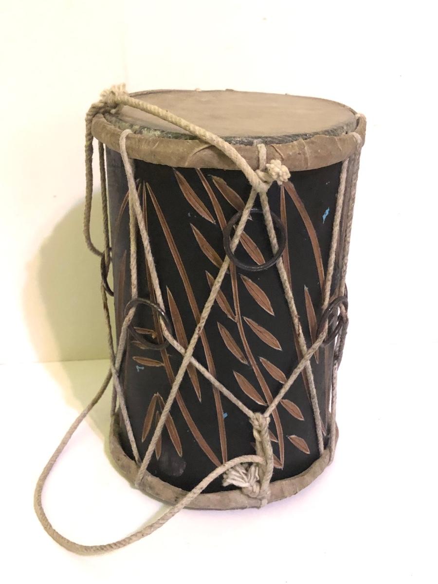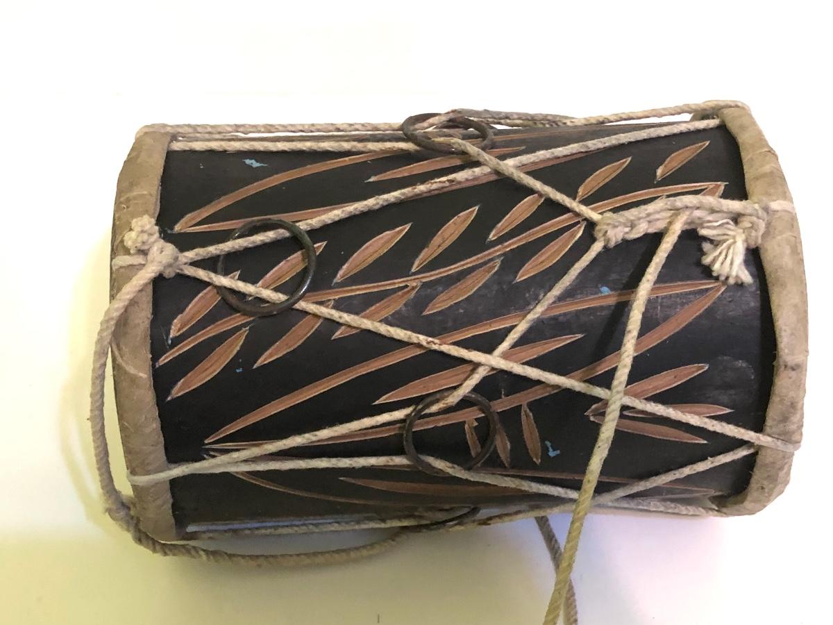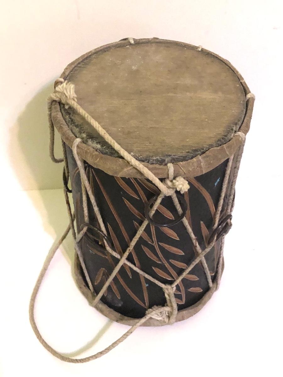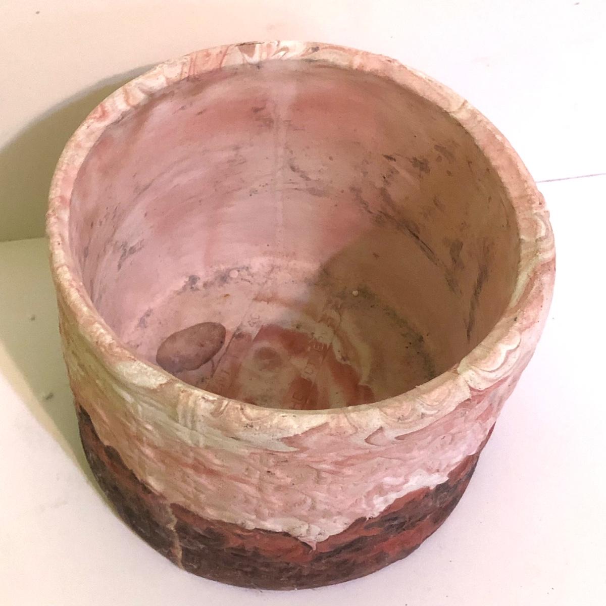 LOT 197Y: Hand Made Drum, Clay Cowboy Boots & Clay Planter