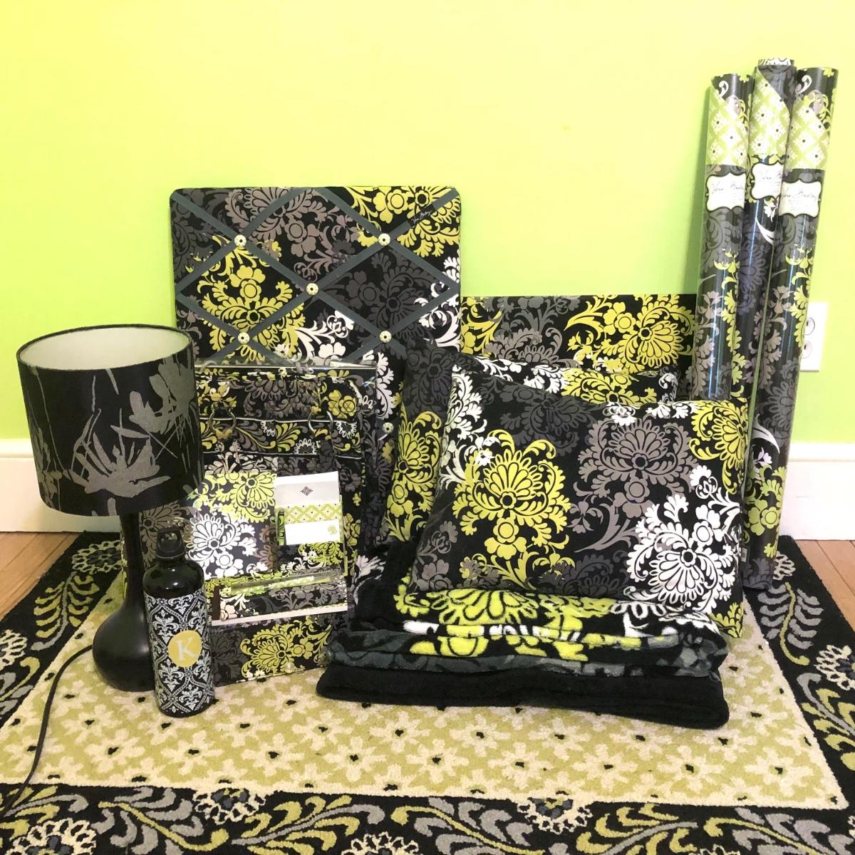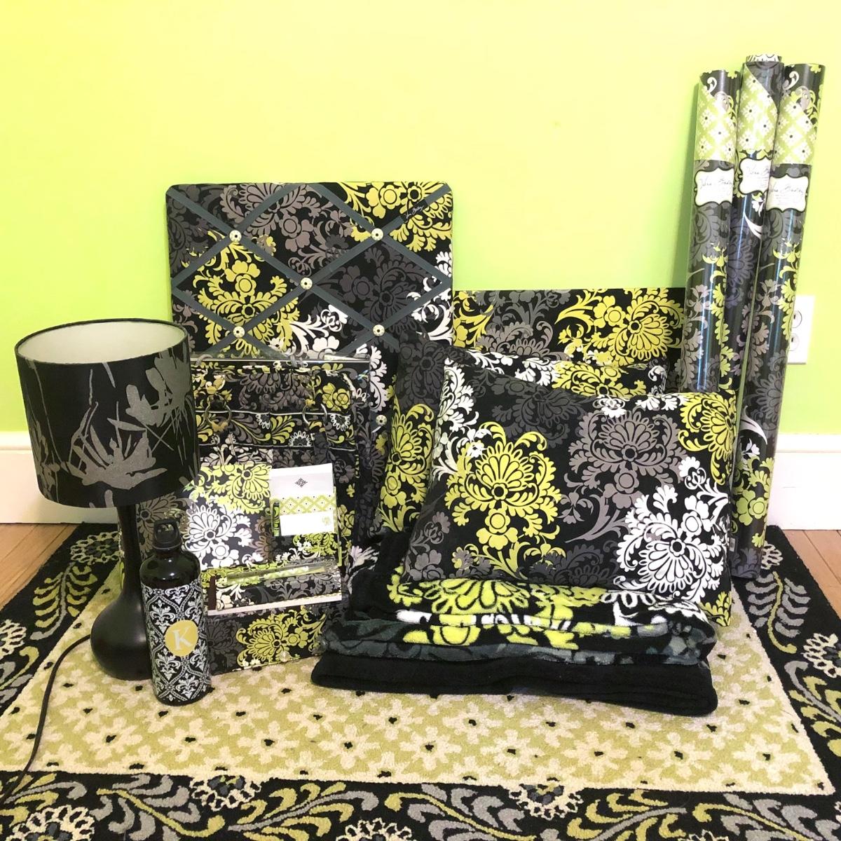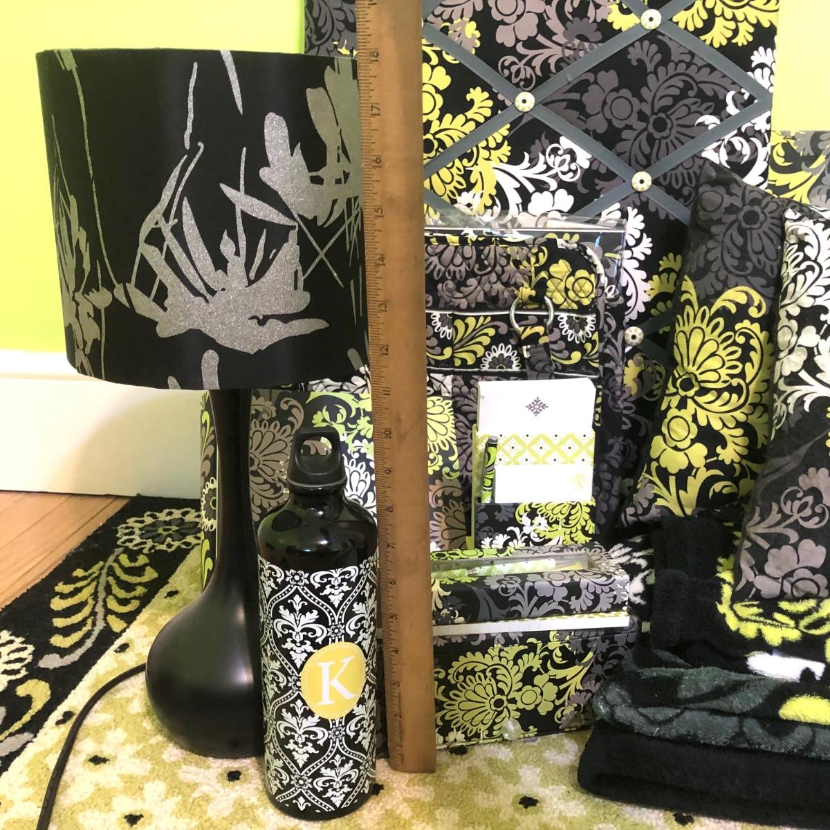 LOT 199Y: Vera Bradley Home Decor Collection including Matching Bag, Rug, Wallpaper, Pillows, Lamp & More