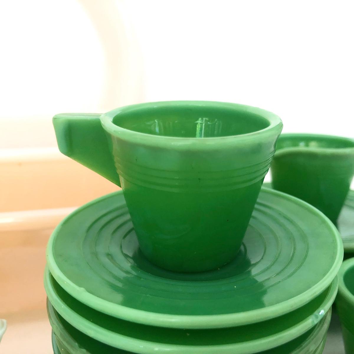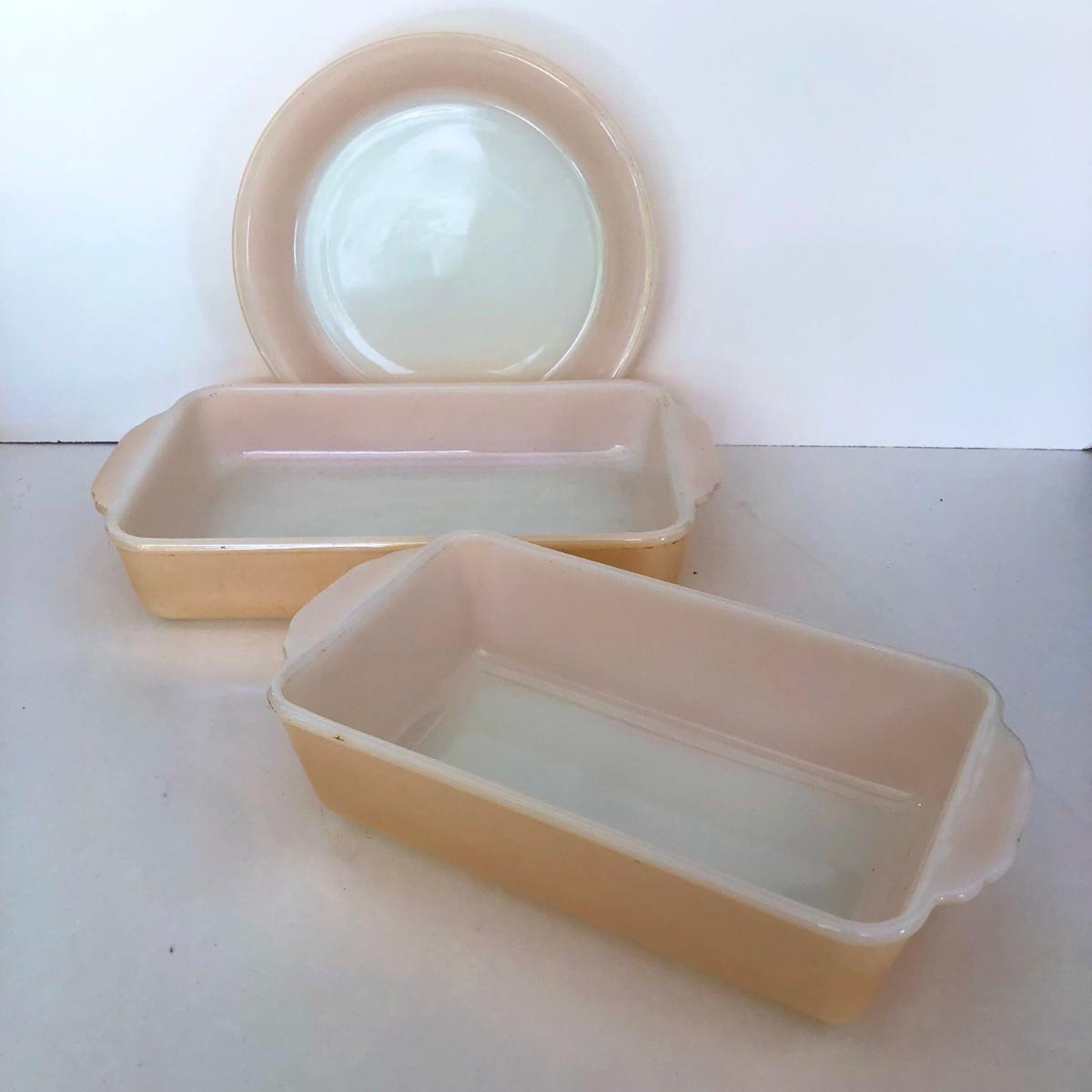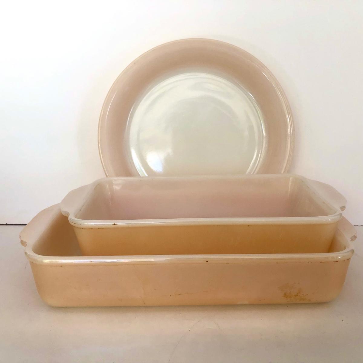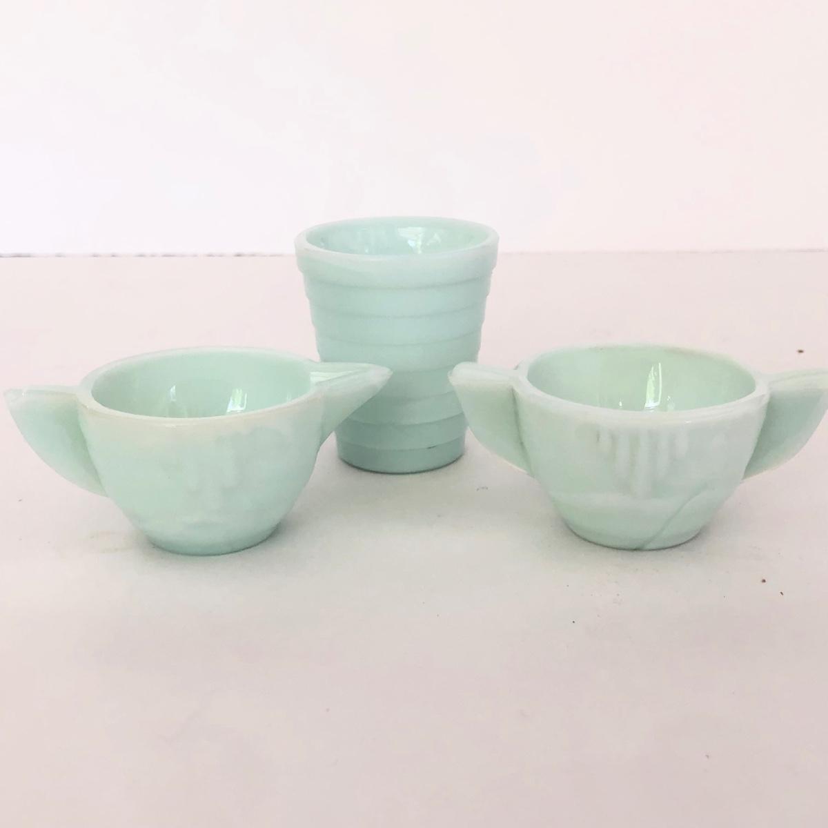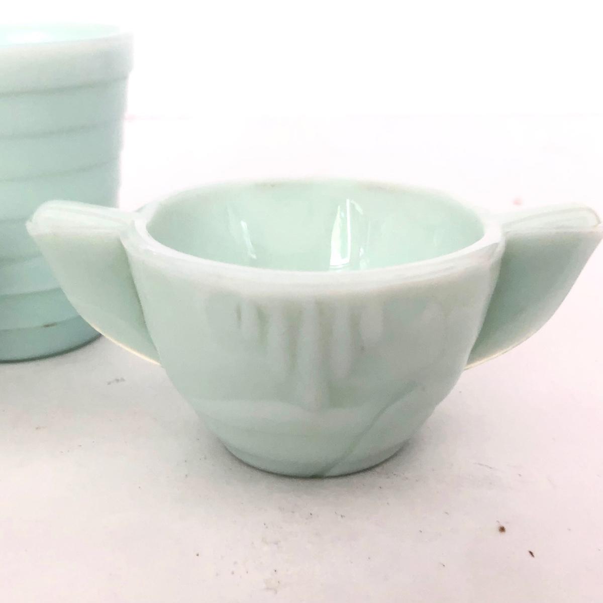 LOT 203G: Vintage Fireking Orange & White Milk Glass w/ Unique Color Glass Childs Tea Set Pieces