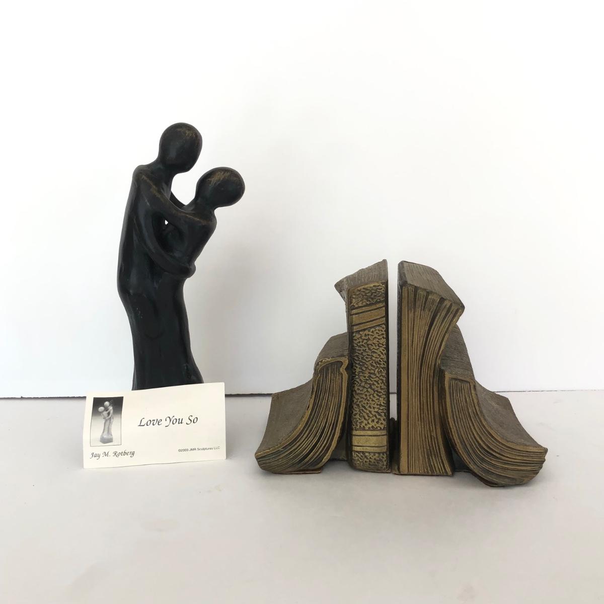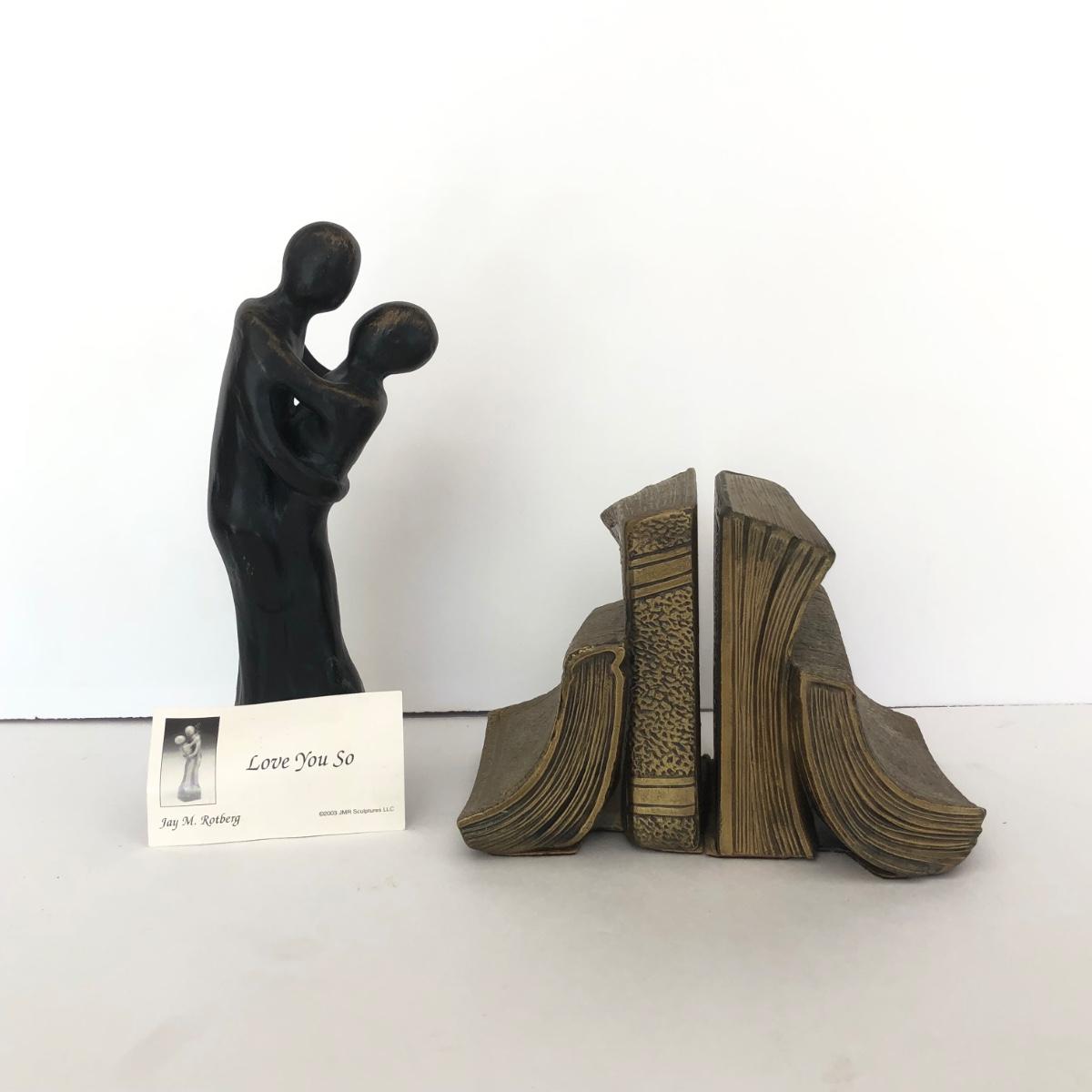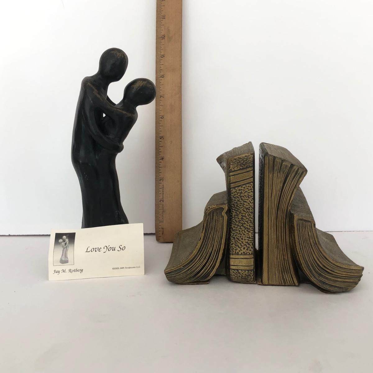 LOT 205G: PM Craftsman Book Bookends & "Love You So" Sculpture by Jay M Rotberg