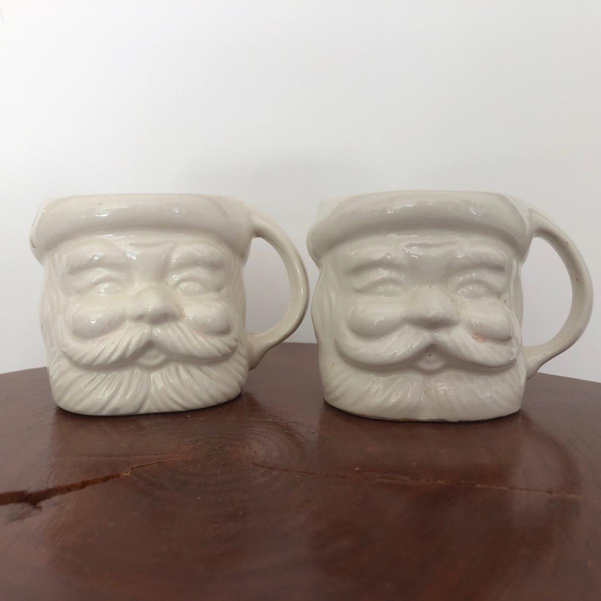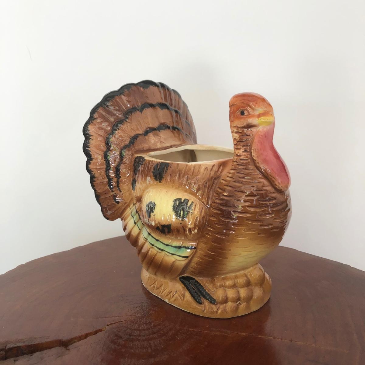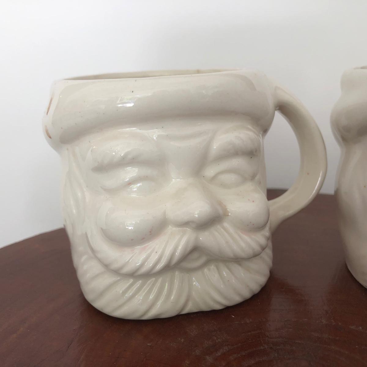 LOT 208G: Holiday Collection - Santa Head Mugs made in Japan, Turkey Planter, Enesco Bunny & 3 Wood Slice Varnished Display Stands