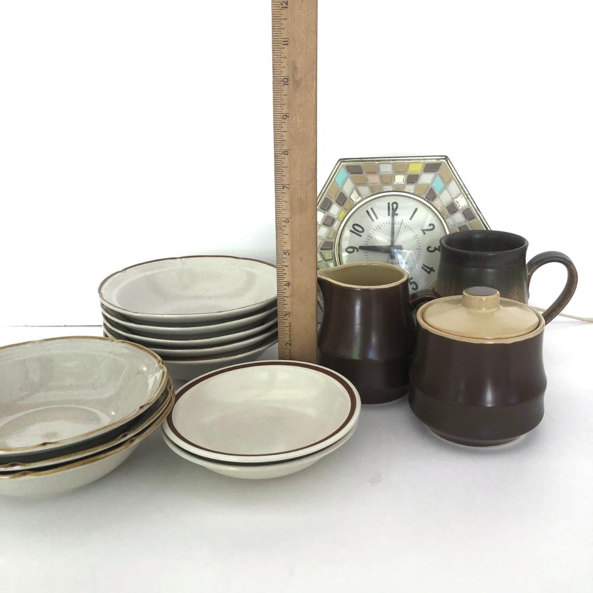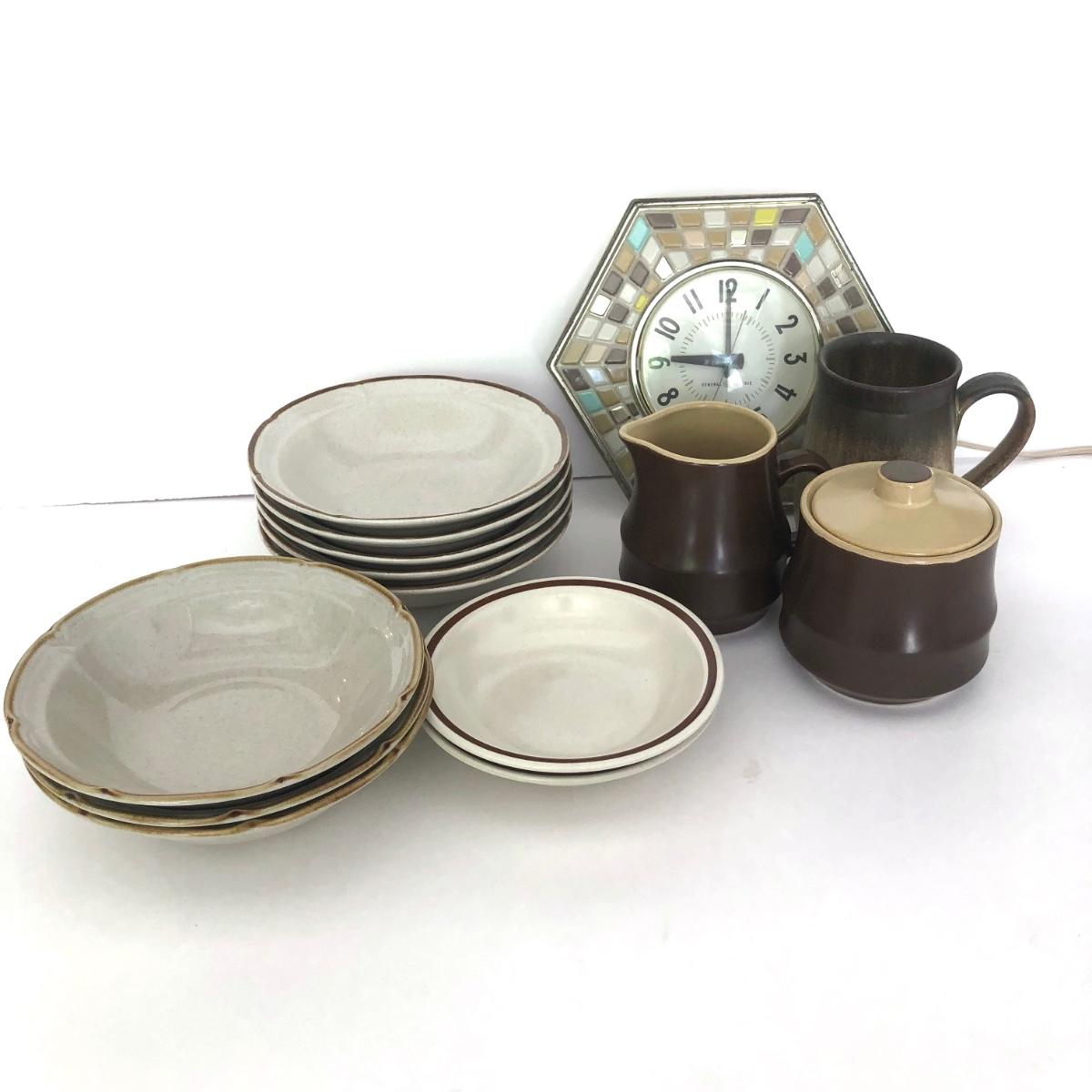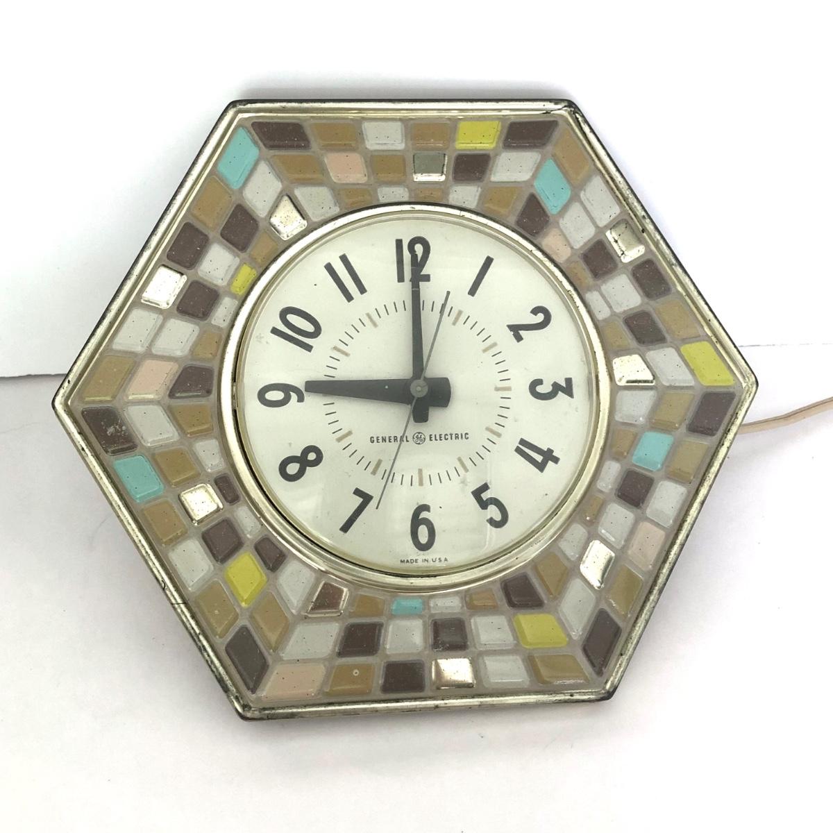 LOT 215G: Vintage Tile General Electric Wall Clock & Collection of Stoneware