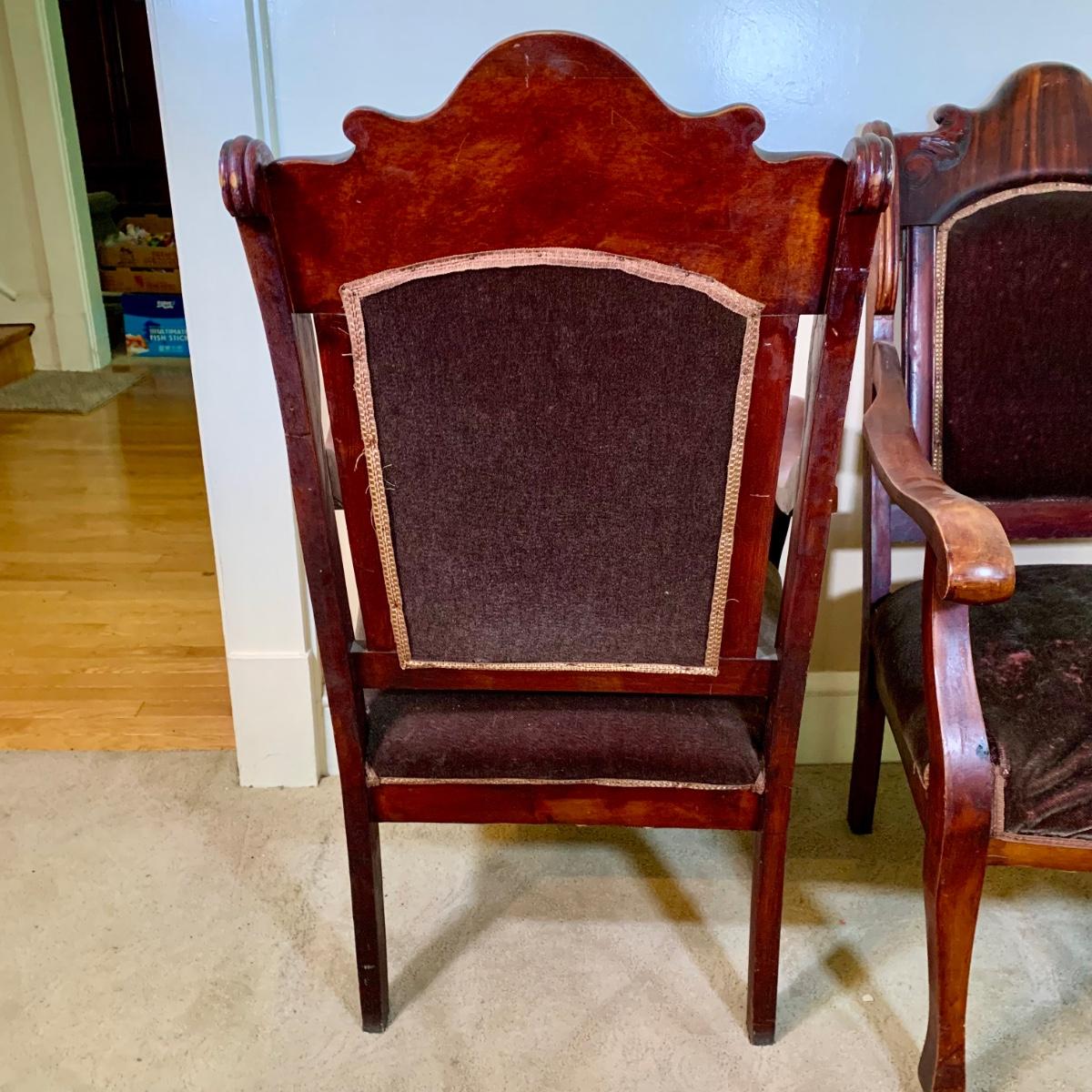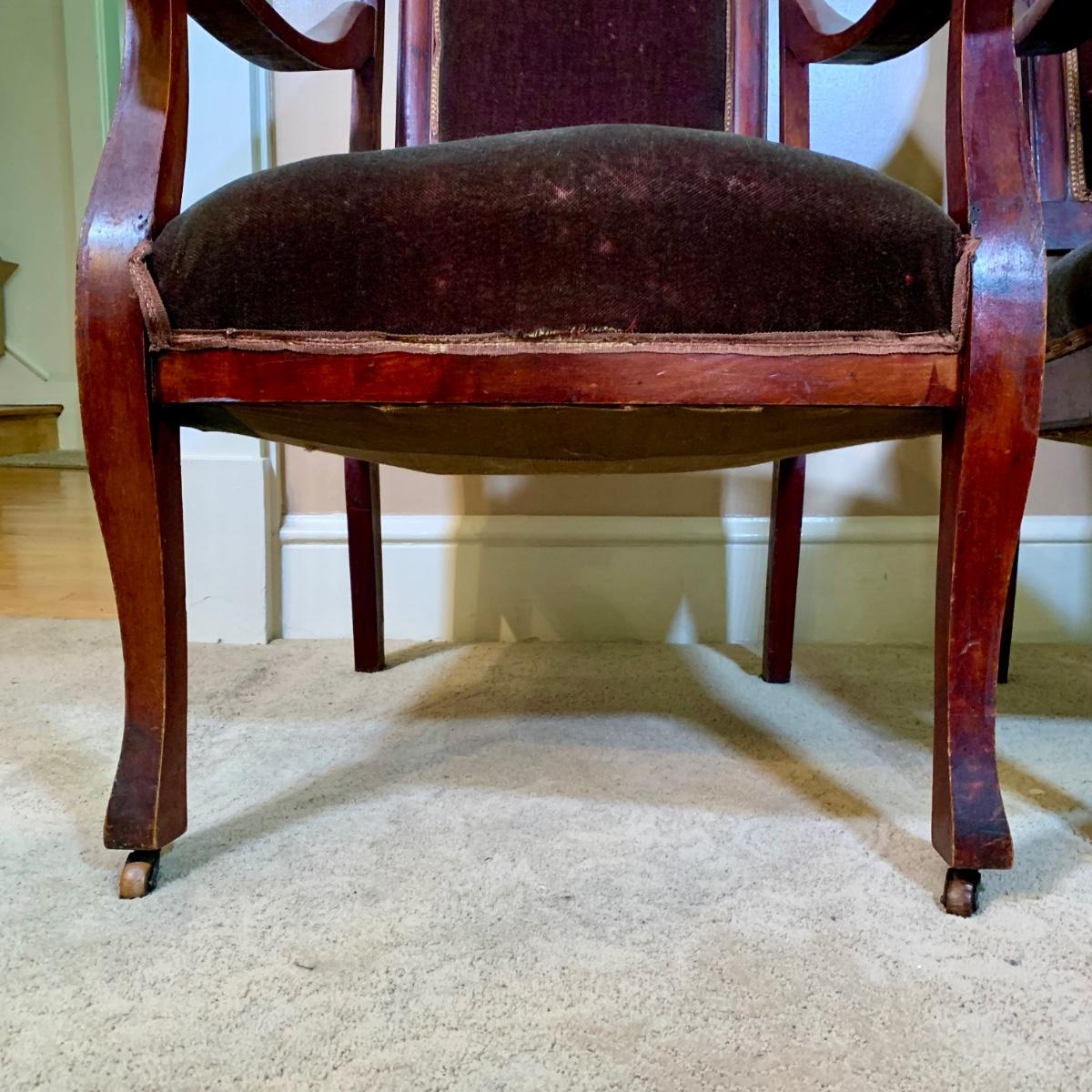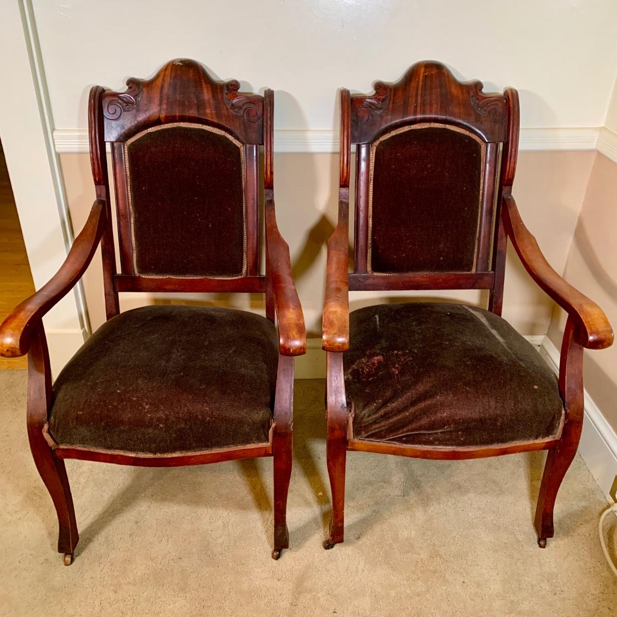 LOT 221 D: Vintage/Antique Carved Mahogany Front Rolling Armchairs
