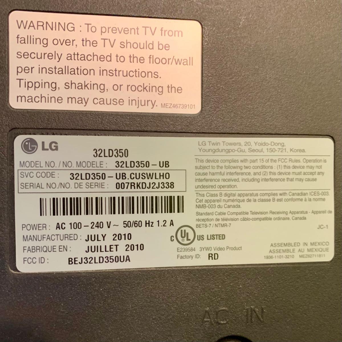 LOT 226 Y: LG TV Model # 32LD350-UB