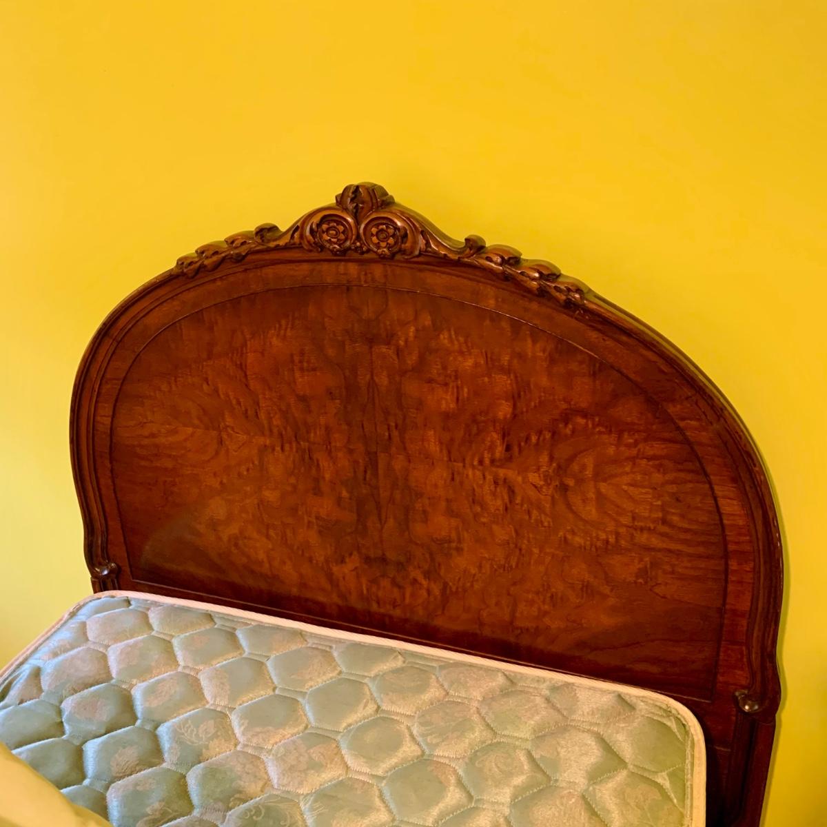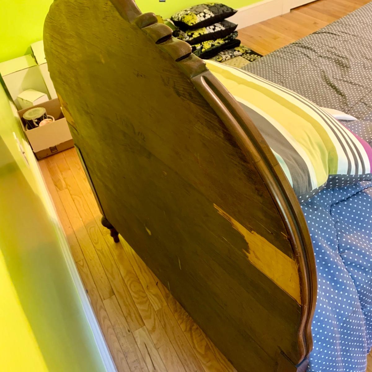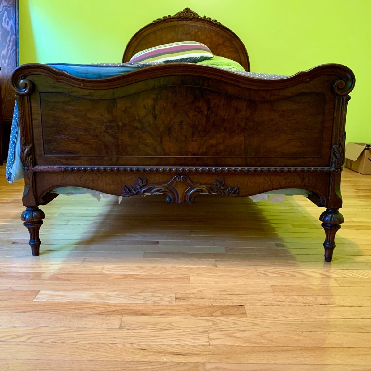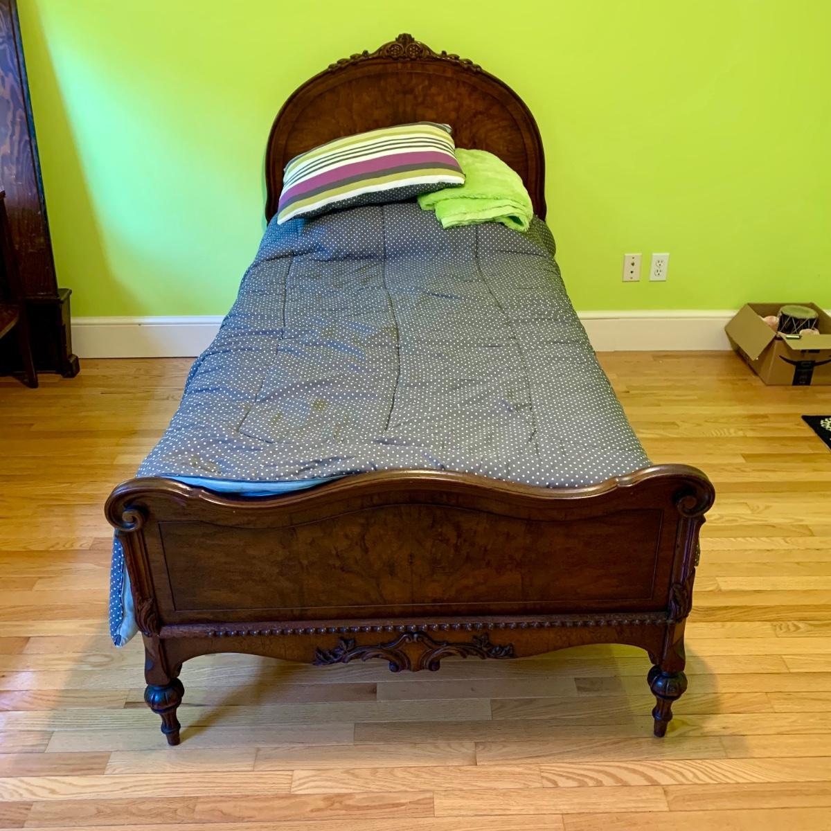 LOT 227 Y: Vintage Ornate Mahogany Head & Footboard Twin Size Bed Frame