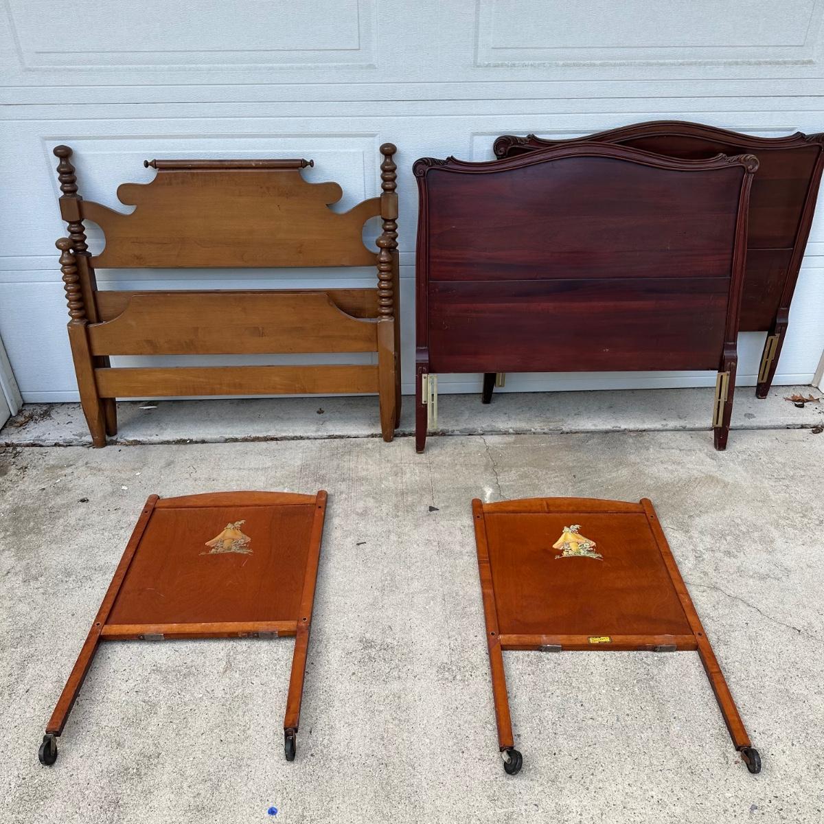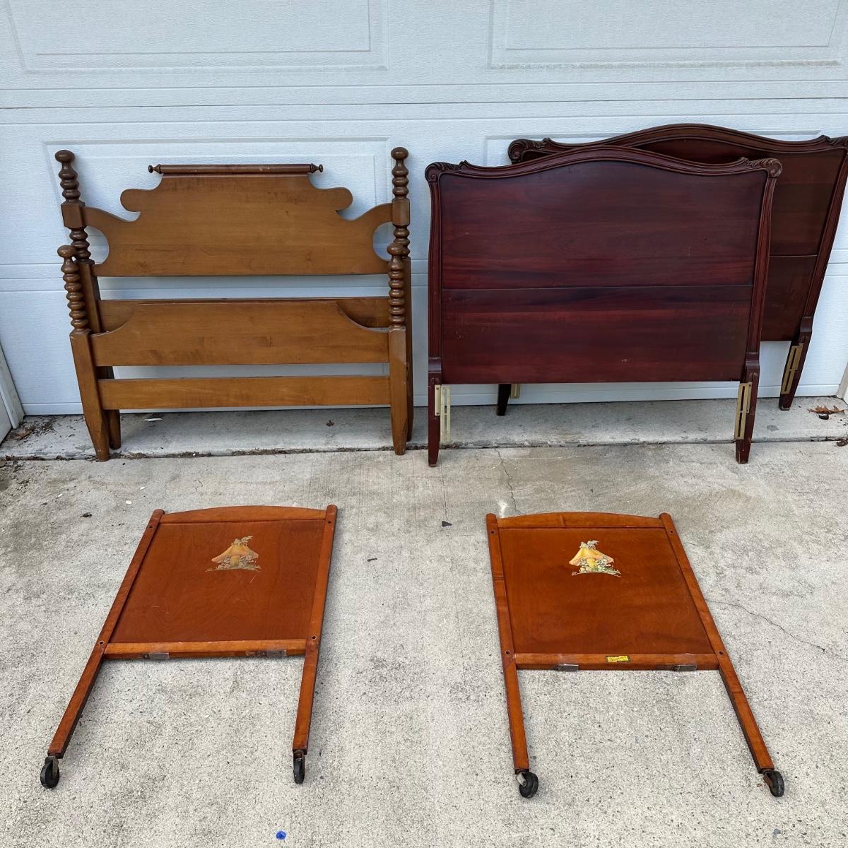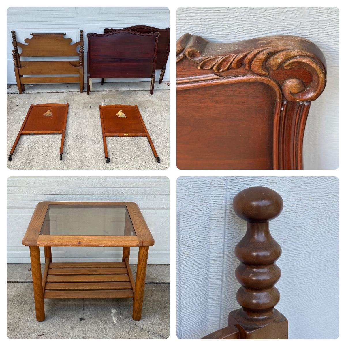 Table is 26.5x26.5x20.5 and headboards are 22x36,41.5x38 & 42.5x30 - Please see all pictures as they are the best representation of the items. The pictures show condition, measurements if taken, and what is included in the lot. Due to the large amount that we photograph and the time frame, we are not always able to take measurements. All items unless noted, are pre-owned and have been used. If you purchased furniture, you must bring help. We do not allow one person to carry large furniture out on their own. Bring help, tools and a truck for the safety of our client’s homes, and your personal safety. Any damages that result to the property including walls, and floors due to moving of the furniture will be charged to the buyer. Company policy. Thank you.