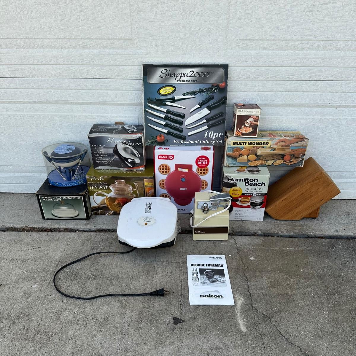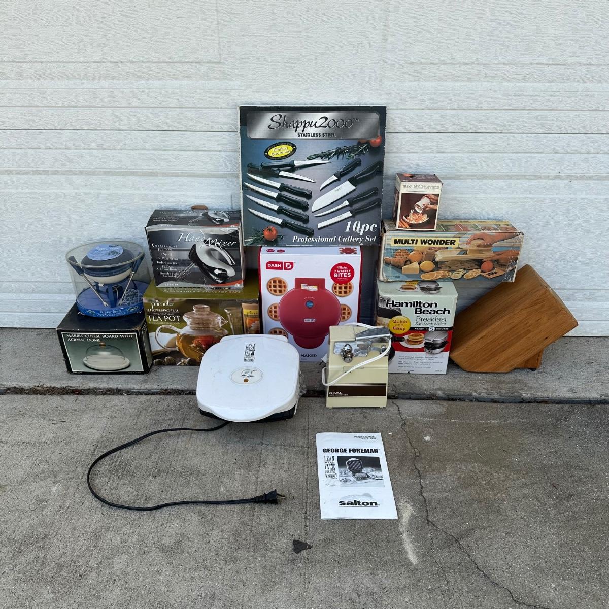 LOT 238G: Kitchen Appliances/Essentials! George Foreman Grill, Hand Mixer, Breakfast Sandwich Maker & More, A Lot Is New In Box