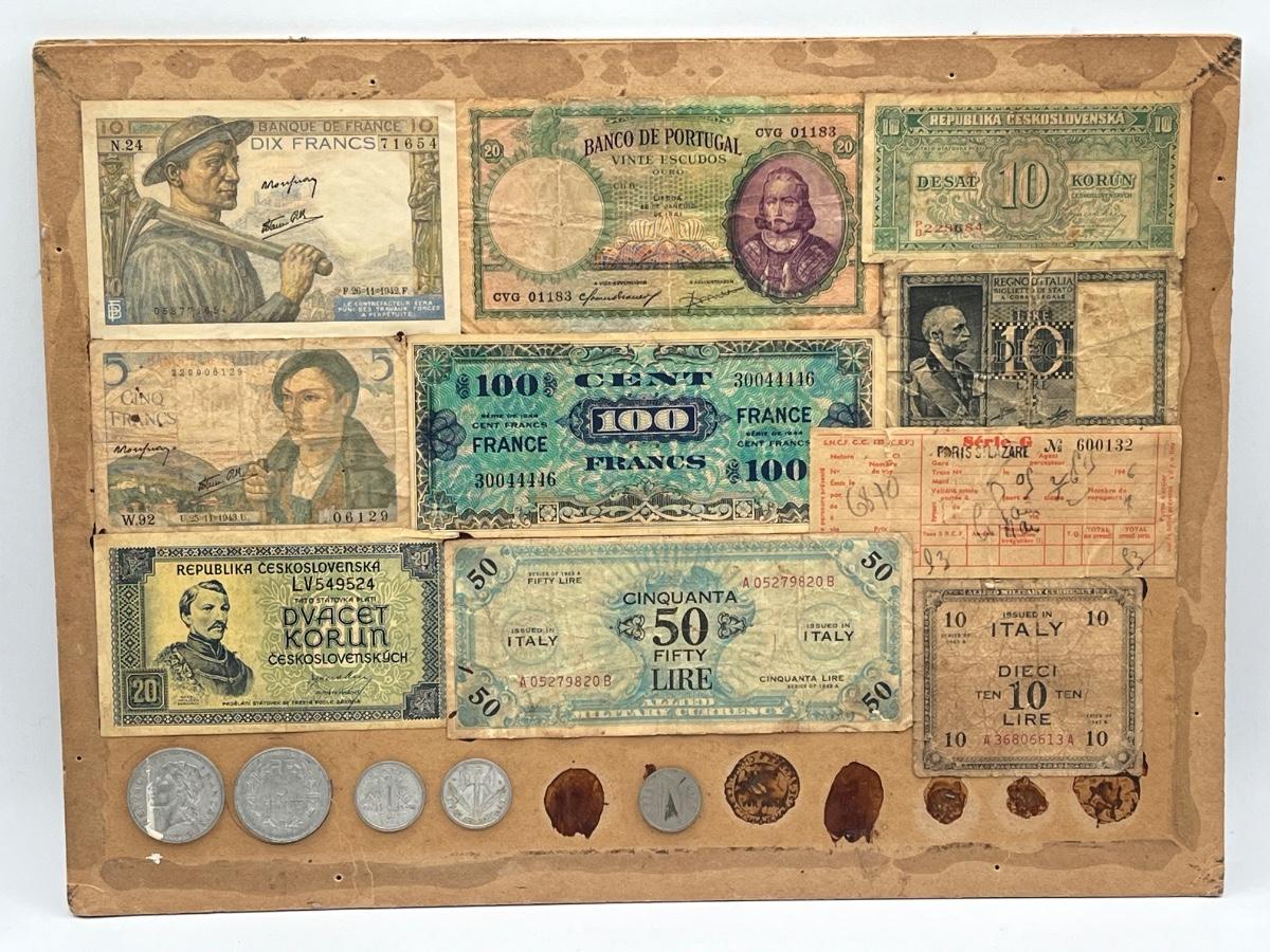 LOT 247K: Collection of International Currencies Mounted to Boards