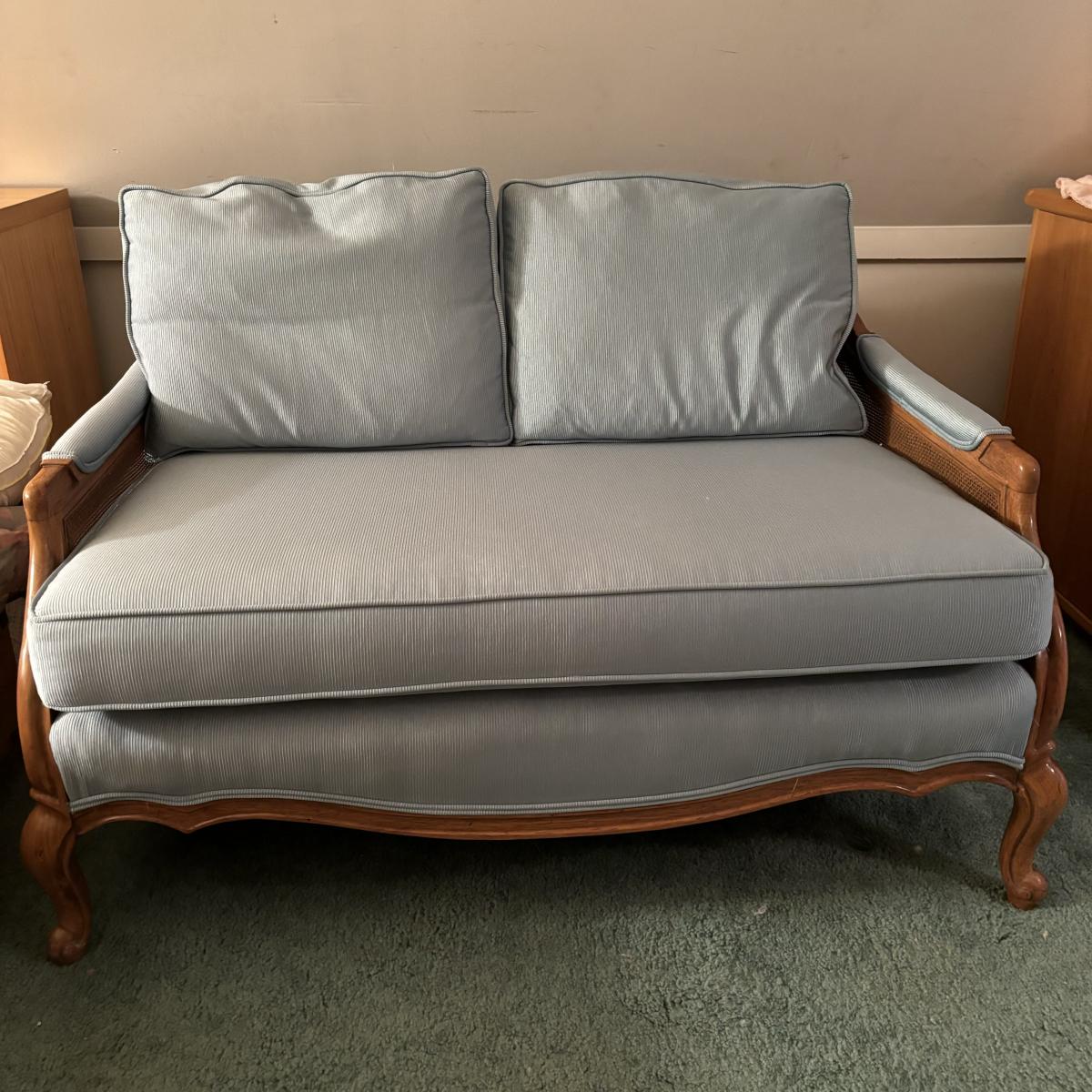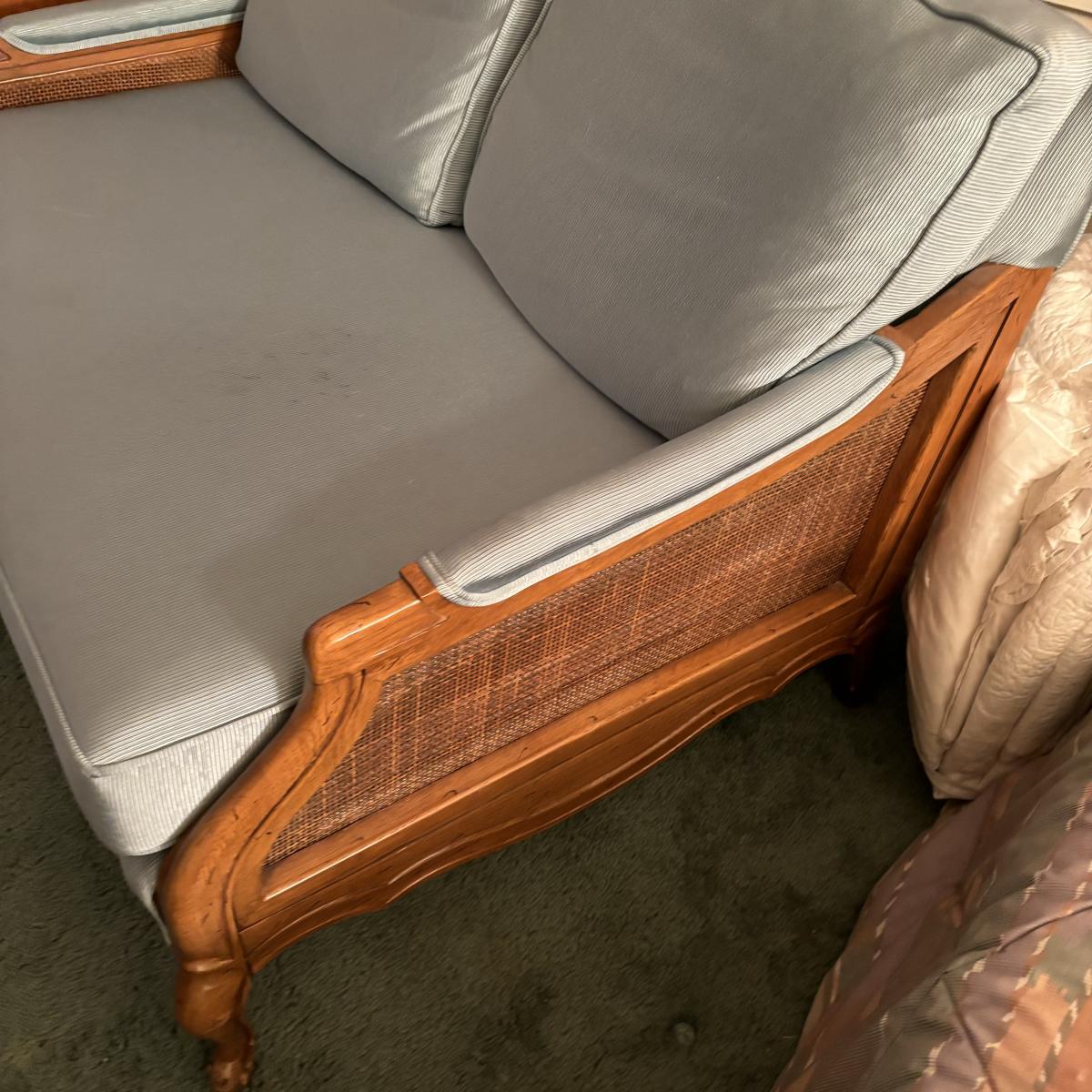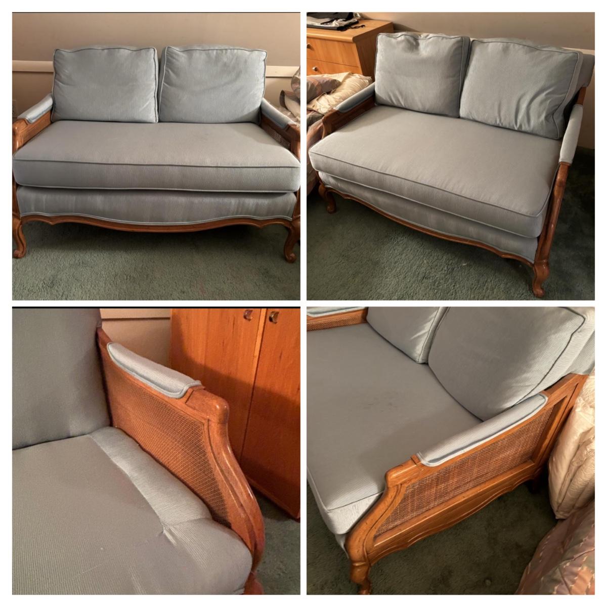 LOT 503: Lovely Pair of Vintage French Country Loveseats w/Caning Sides