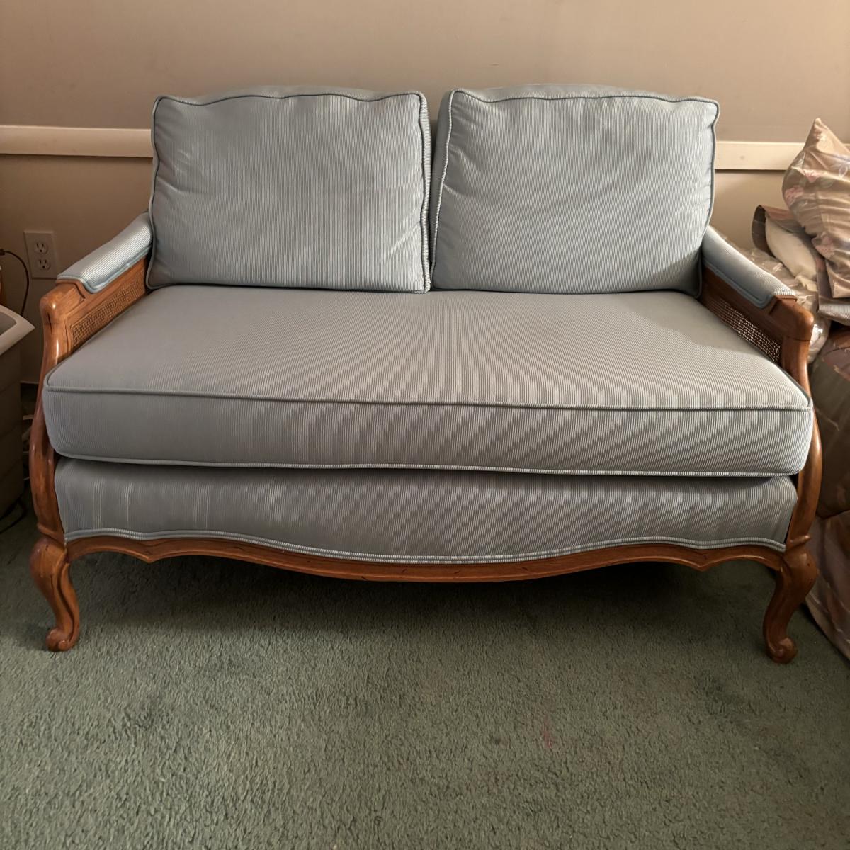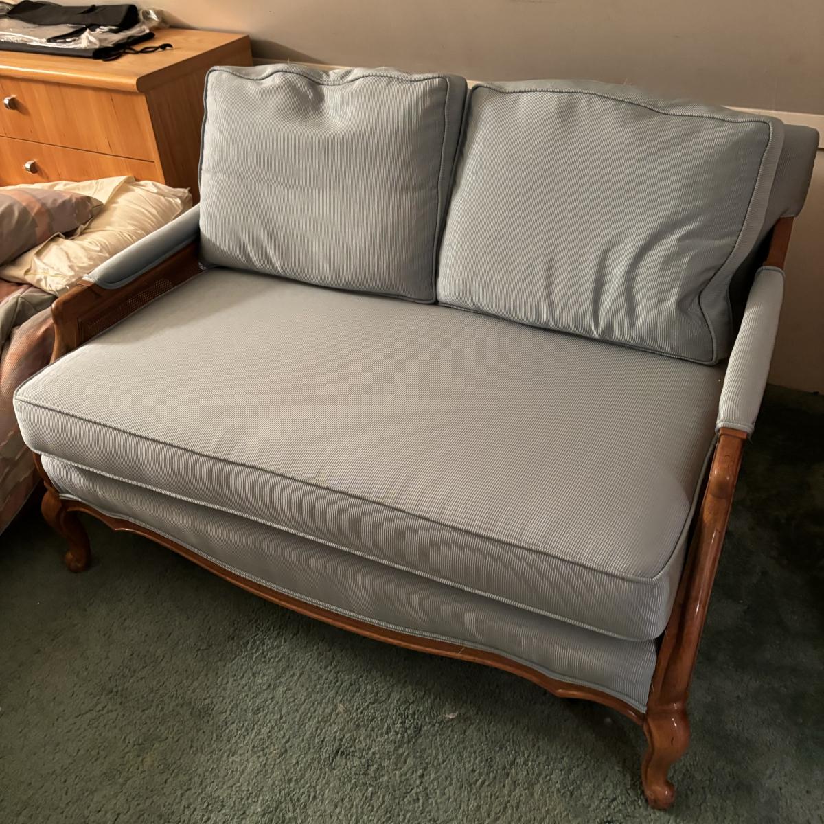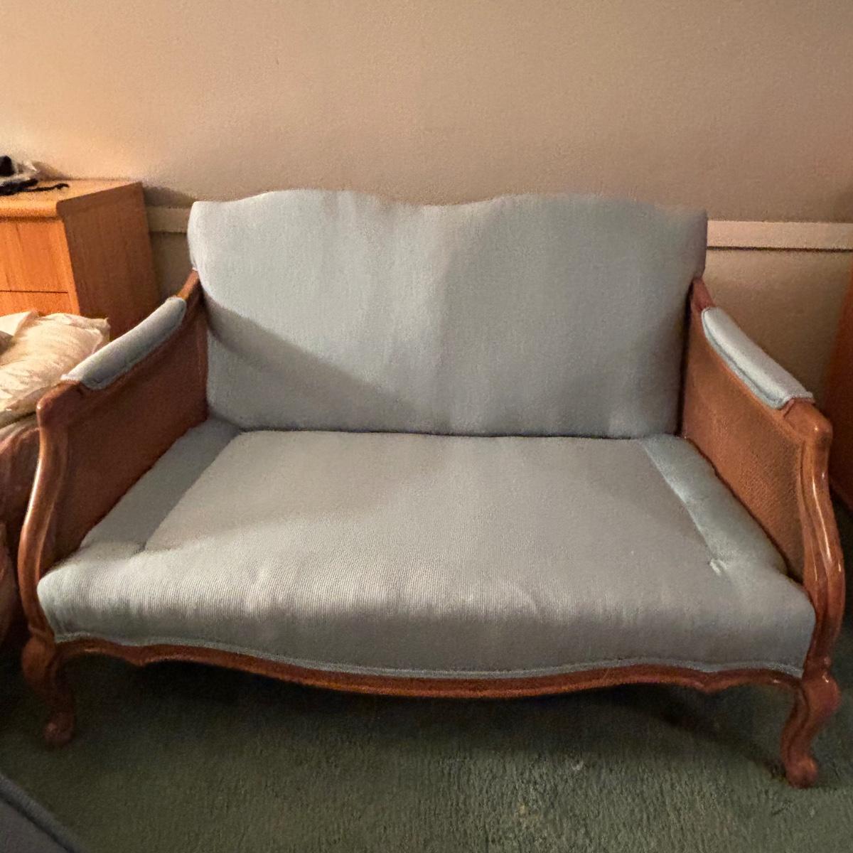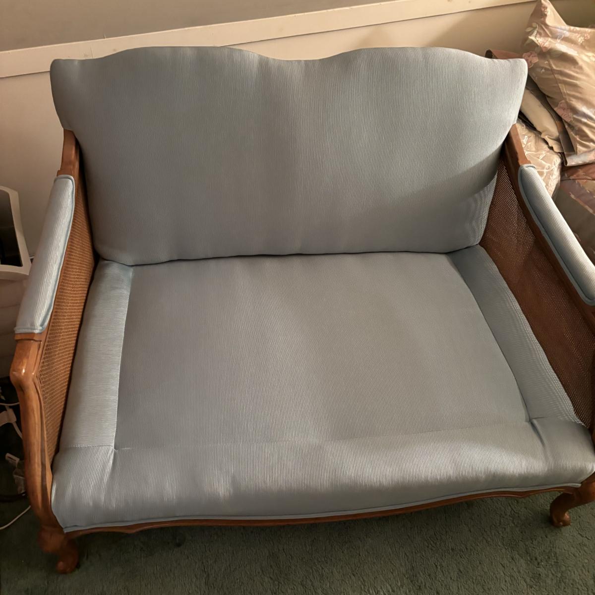 LOT 503: Lovely Pair of Vintage French Country Loveseats w/Caning Sides