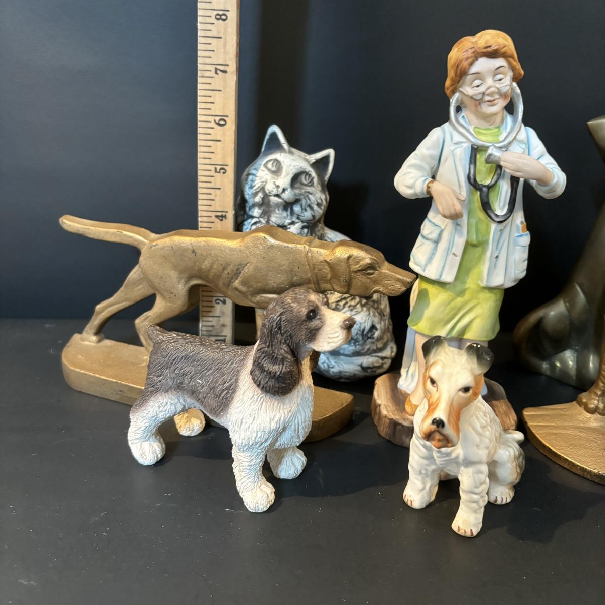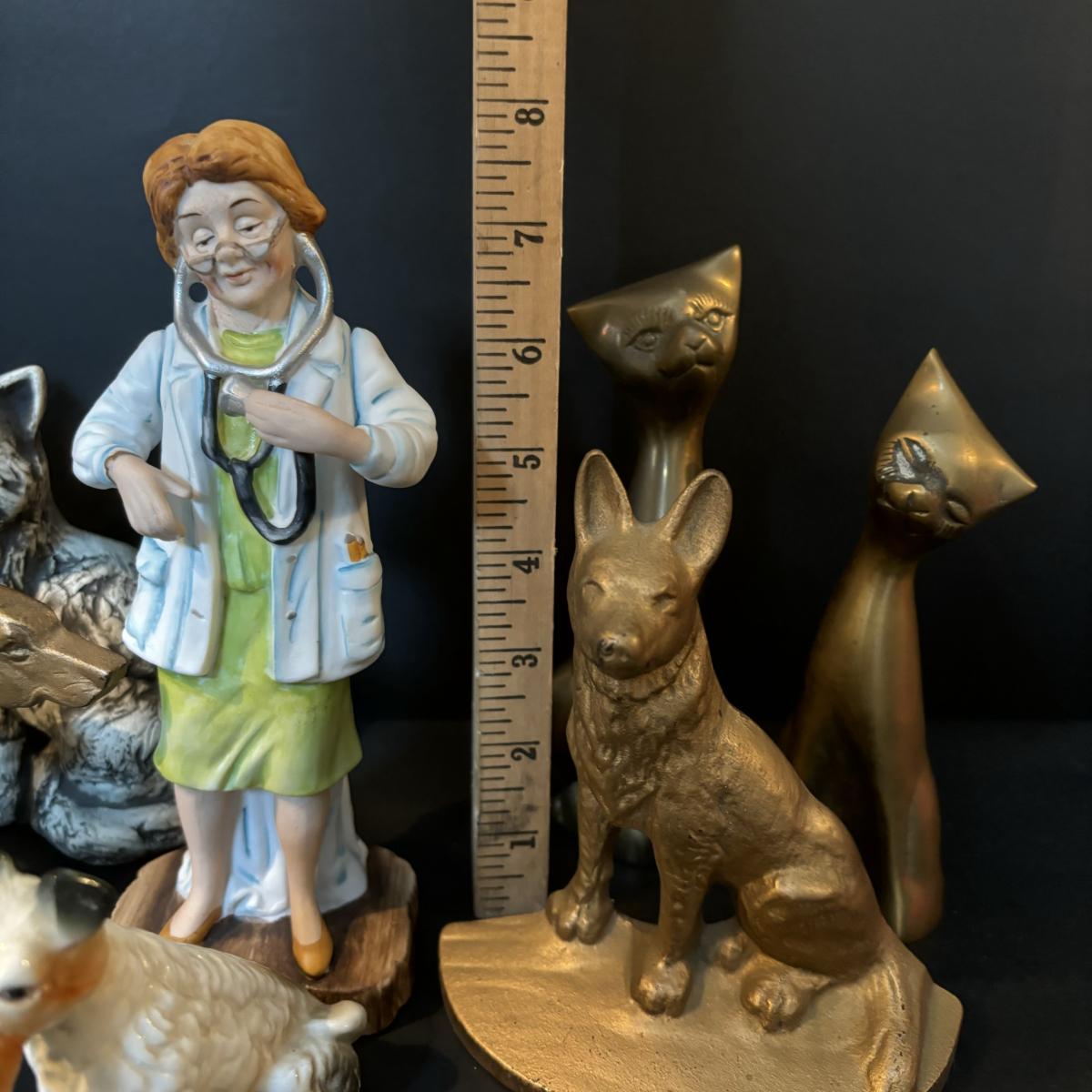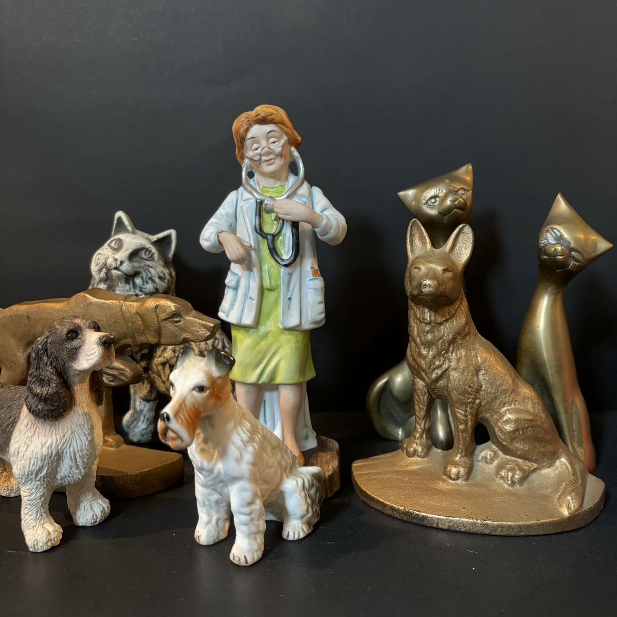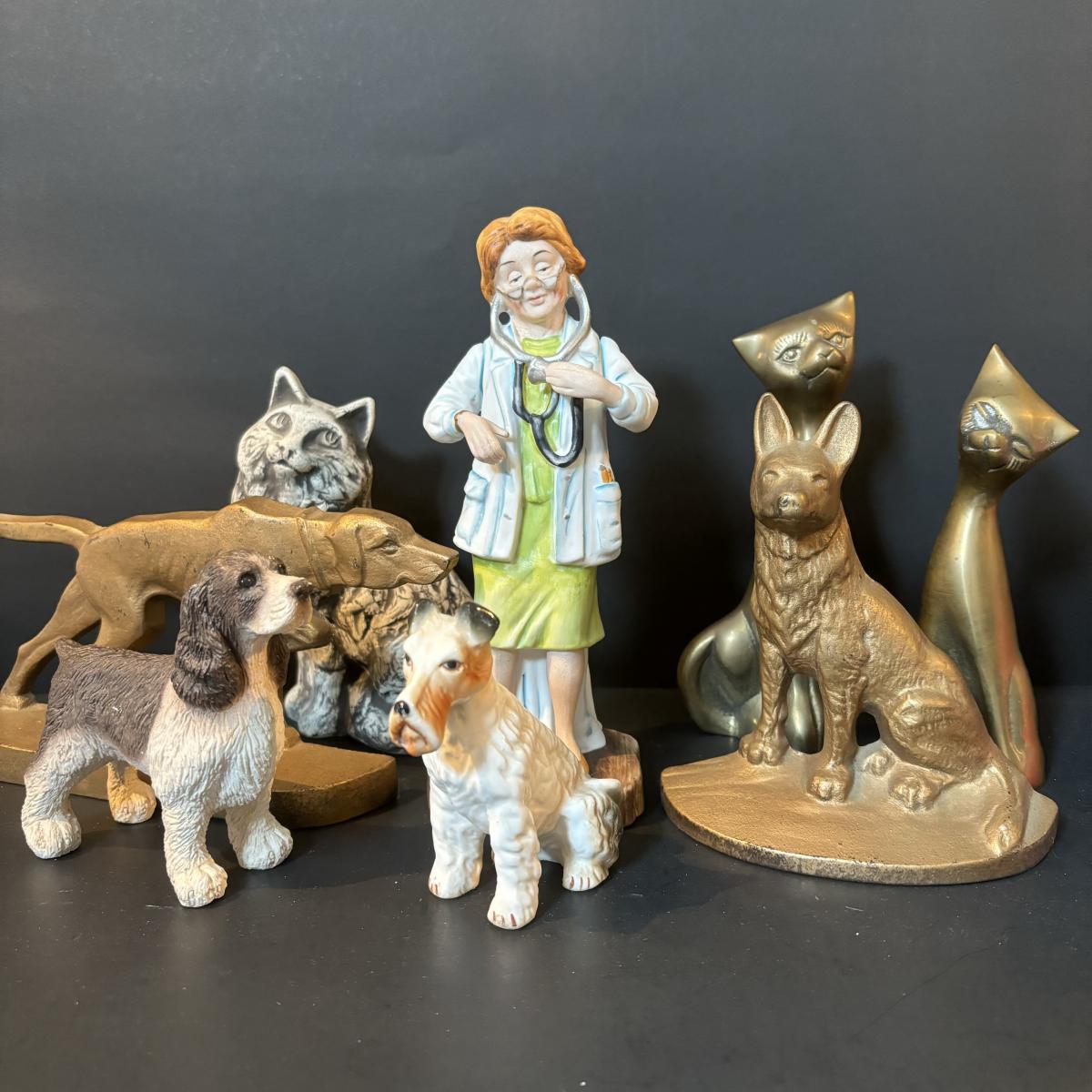 LOT 507: Lefton Veterian Figure, Brass Cats & Dogs, Signed Cat Sculpture