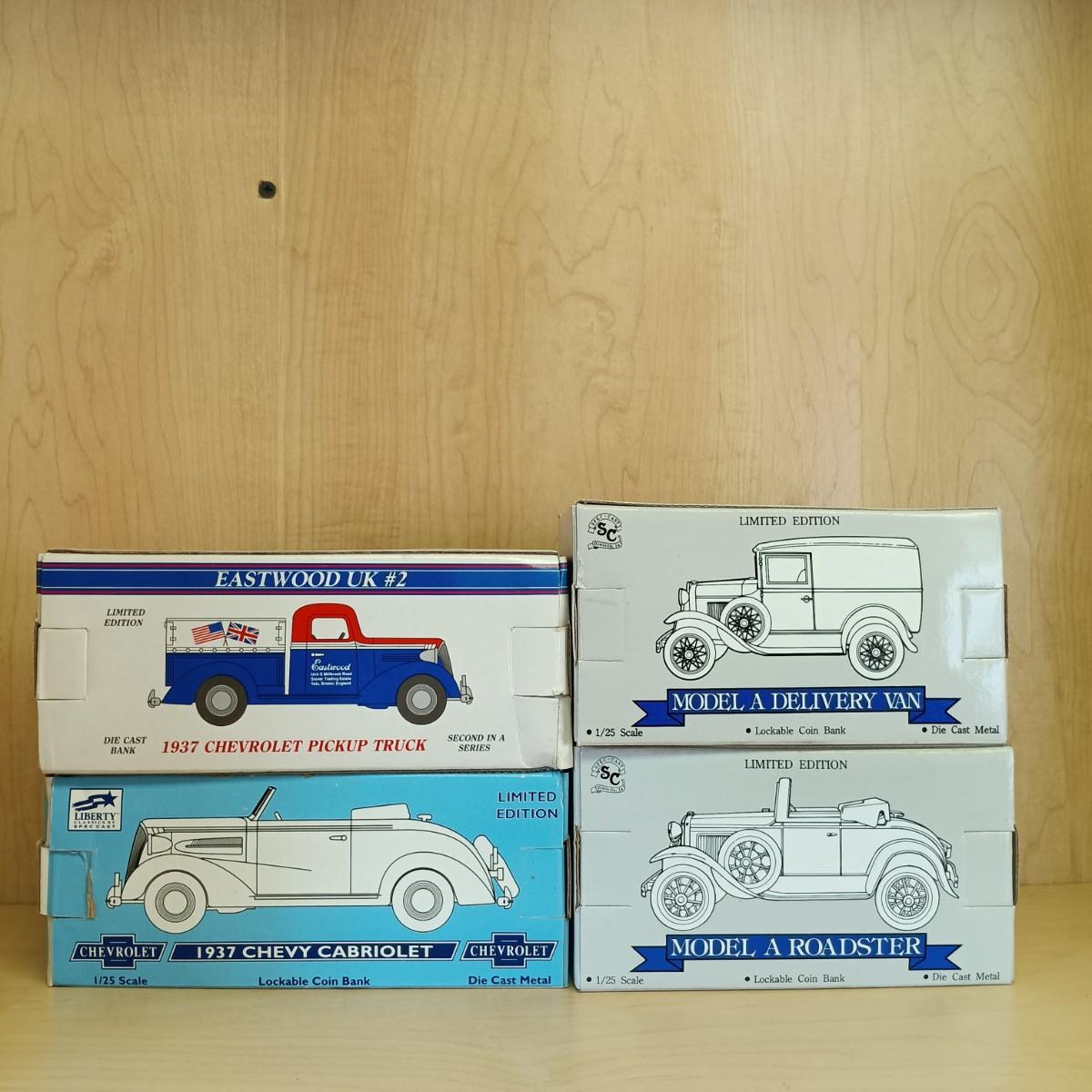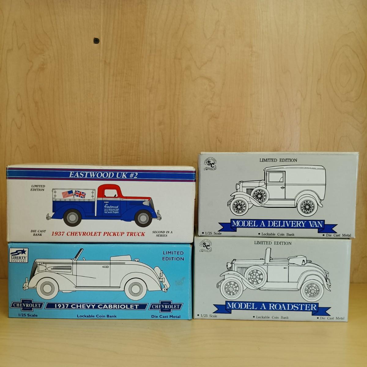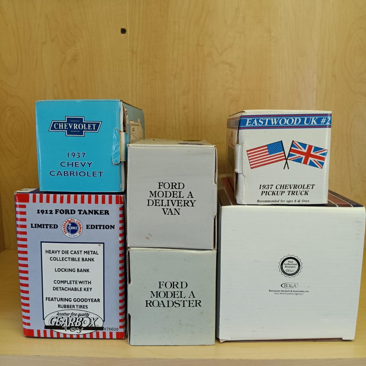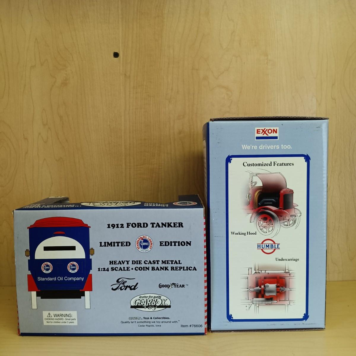LOT 8: Set of 5 Diecast Model Car Coin Banks w/ Exxon 1923 Kenworth Humble Oil Tanker Truck Model