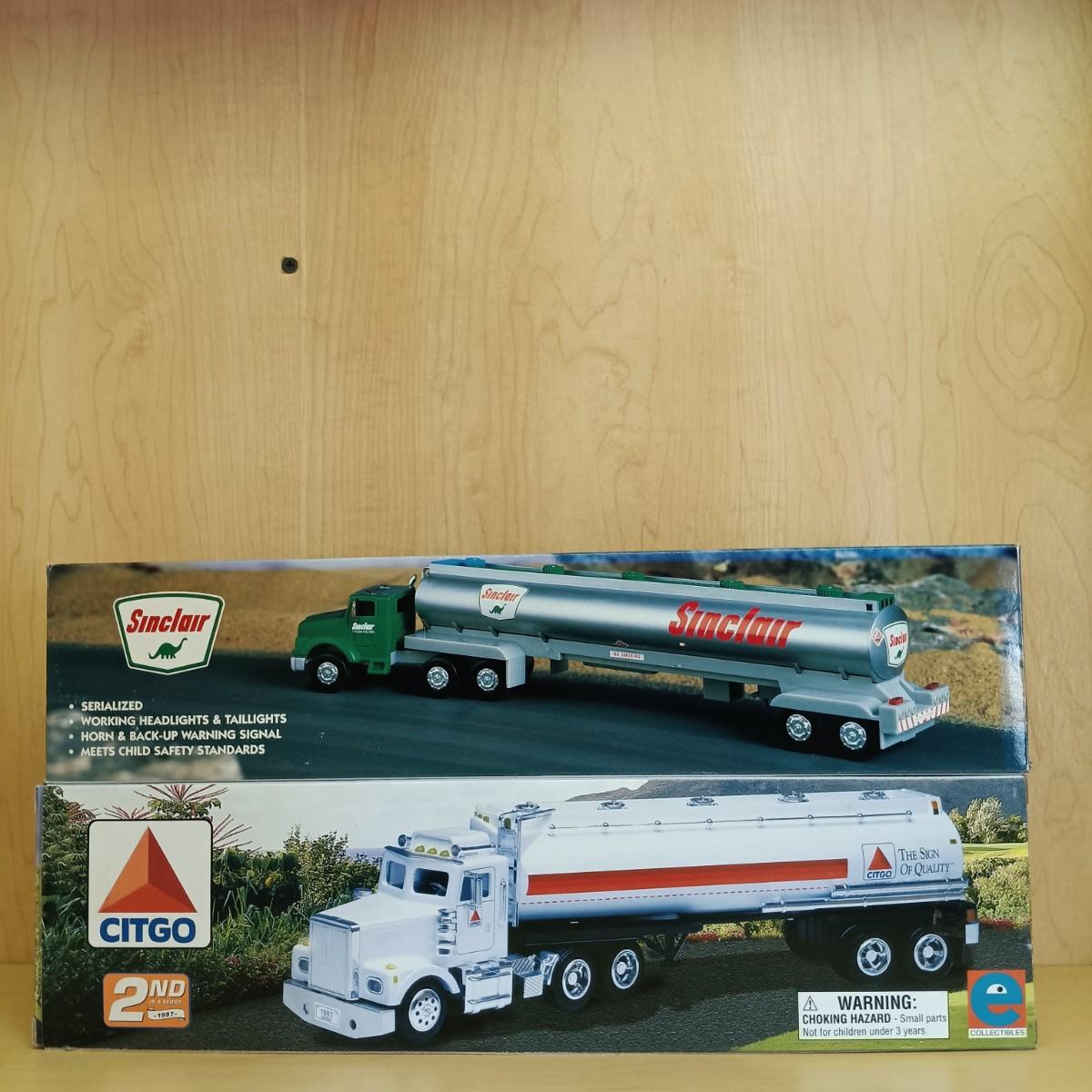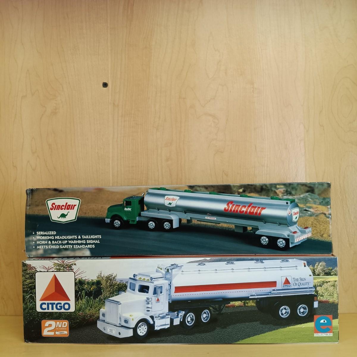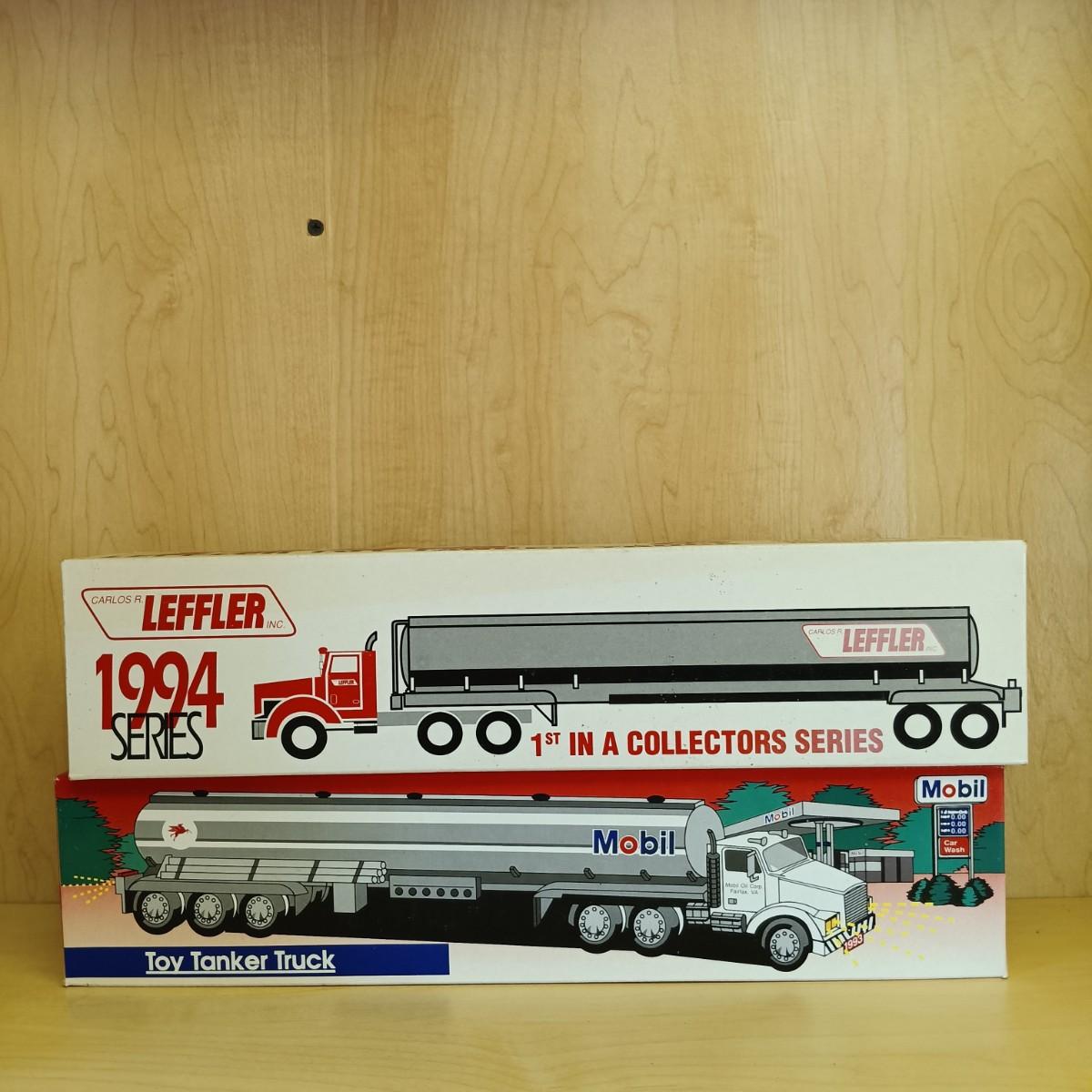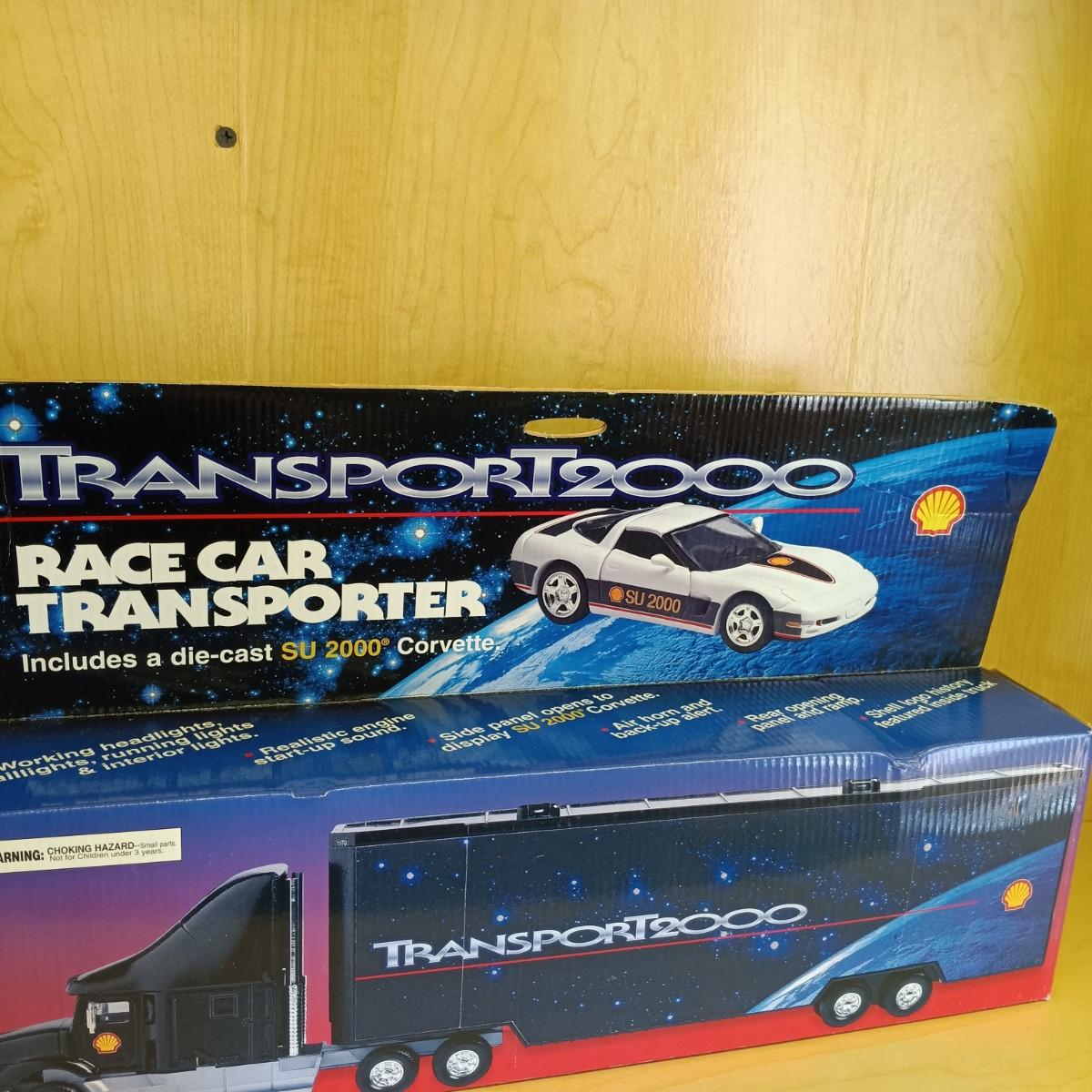 LOT 13: Loeffler 1994 Collector's Series Toy Truck, Transport 2000 Race Car Transporter, Shell Truck Bank & More
